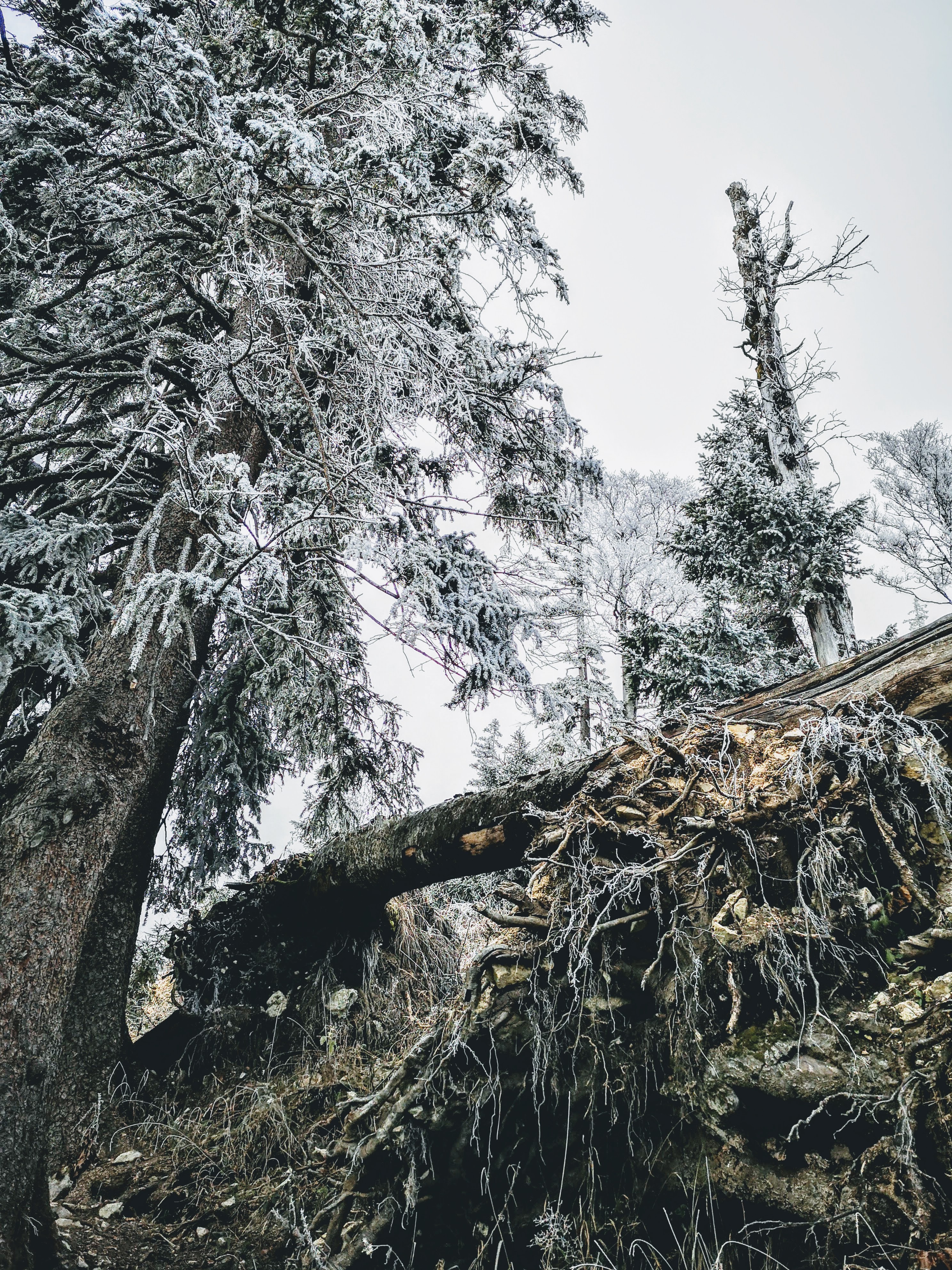 Ca 980hm, 8km – Steig schwarz markiert (schwer) – teilweise starker Windwurf, zerstörte Aufstiegsspur und kaum Markierungen.