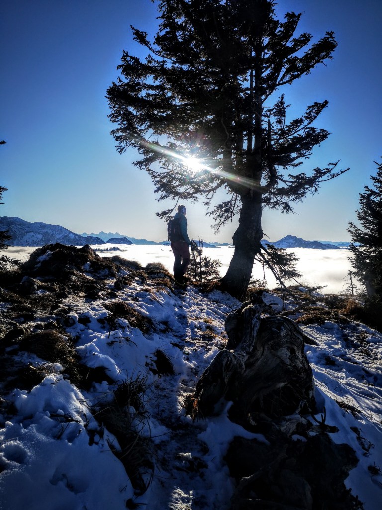 Wenn kaum Schnee liegt, wird eben so lange auf den Berg gegangen, bis es nicht mehr geht. Somit kann ich noch einige Gipfel im Dezember einschieben, für die ich sowieso keine Zeit hatte oder die mir im Sommer einfach zu überlaufen sind. Einer davon ist der Eibenberg 1598m, vom Offenseetal aus. Eine sehr gute Idee – Nebelflucht, Raureif Winterwunderwald, Sonne satt am Grat und ein Gipfelkreuz, dass Armor gerne hätte…