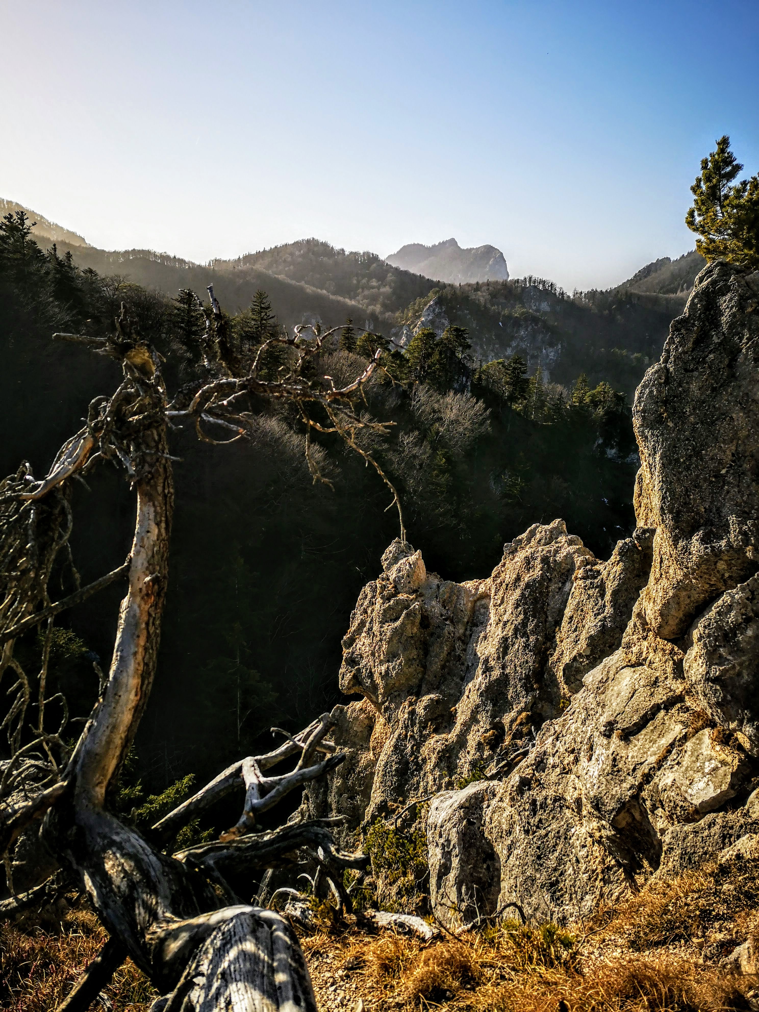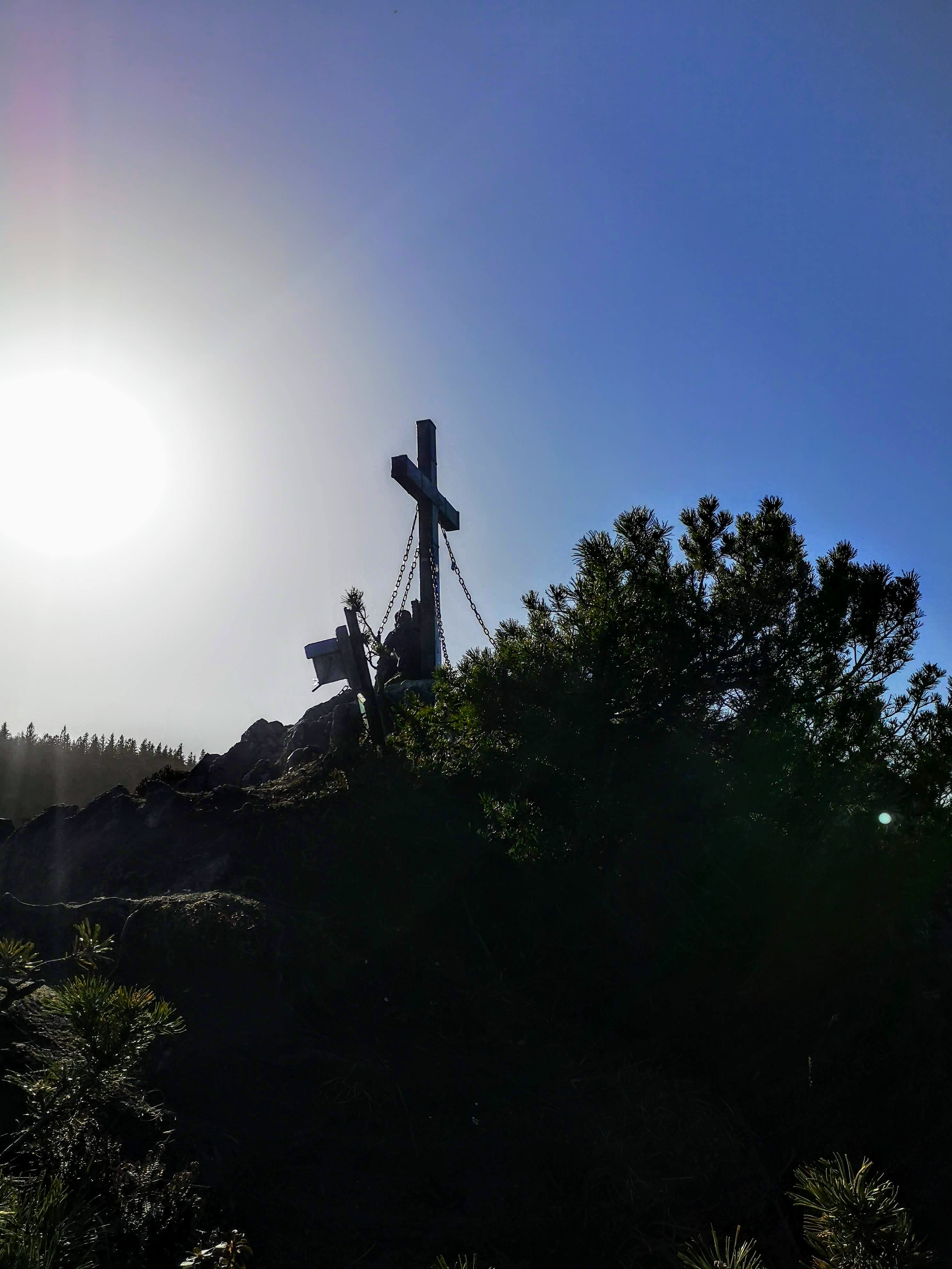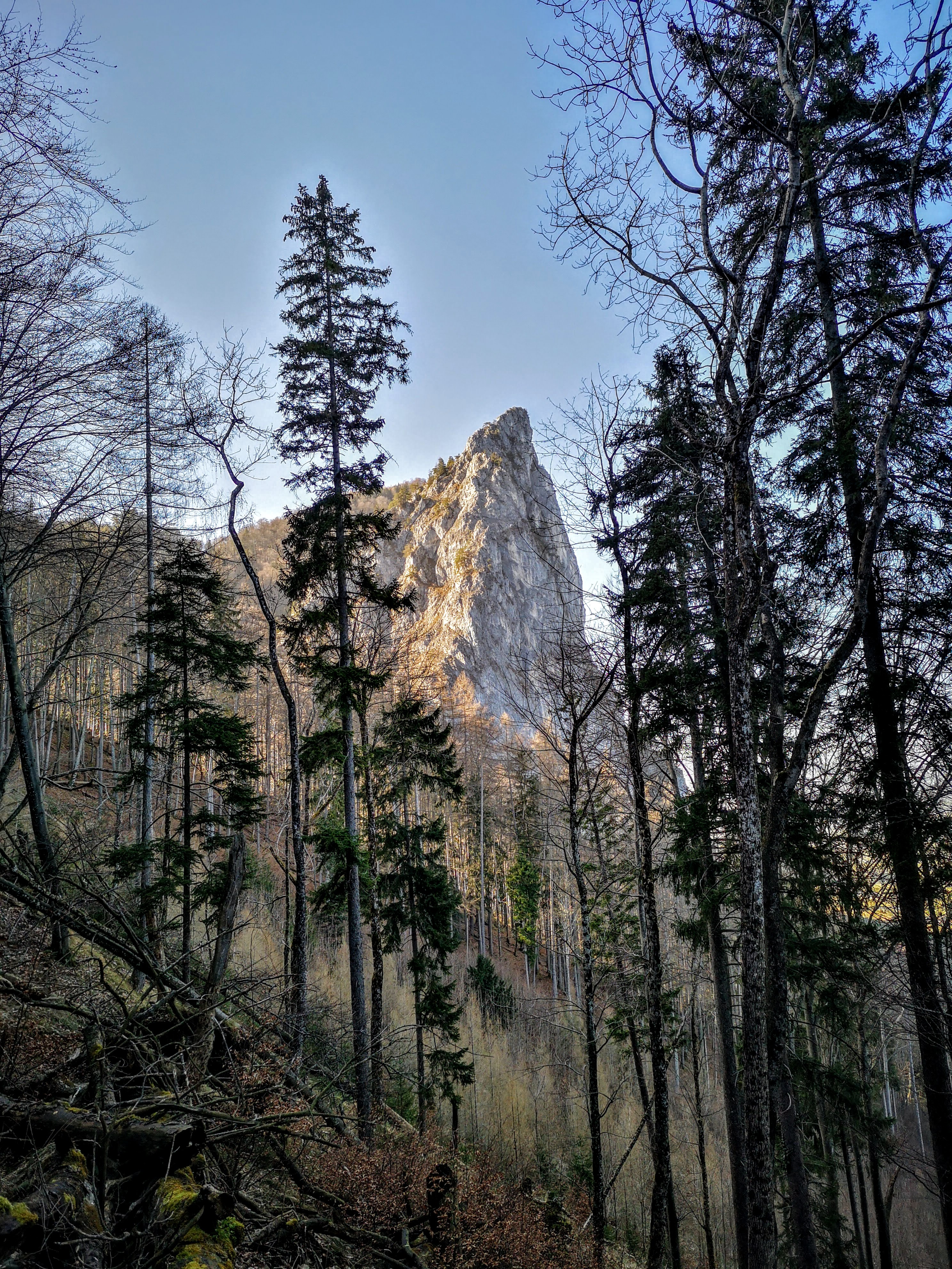 Durch ein Meer aus Schneerosen gehts im Wald serpentinenartig und kaum ausgesetzt nach oben. So extrem viele dieser wunderbaren Frühlingsboten habe ich selten gesehen. Wunderschön! Der Weg ist schmal, wurzelig und nässebedingt ziemlich gatschig stellenweise. Eine kurze Schrofenstufe, ein paar querliegende Bäume (nicht nur aus diesem Winter). Ab und zu mal umdrehen lohnt sich – die Drachenwand ragt steil empor! Rechts von einem (aktuell trockenen) Bachgraben geht es nach einer kurzen Querung in steilen Serpentinen bis zu einem Sattel hinauf. Spitze Felsformationen ziehen meinen Blick wie magisch an und auch der Gipfel lässt sich ausmachen. Links vor dem Gipfelaufschwung wartet eine gestufte Rinne, danach flach über Schrofen zum schönen Kreuz. Sogar da Sendl (Erika) blüht hier heroben schon im schönsten Pink!