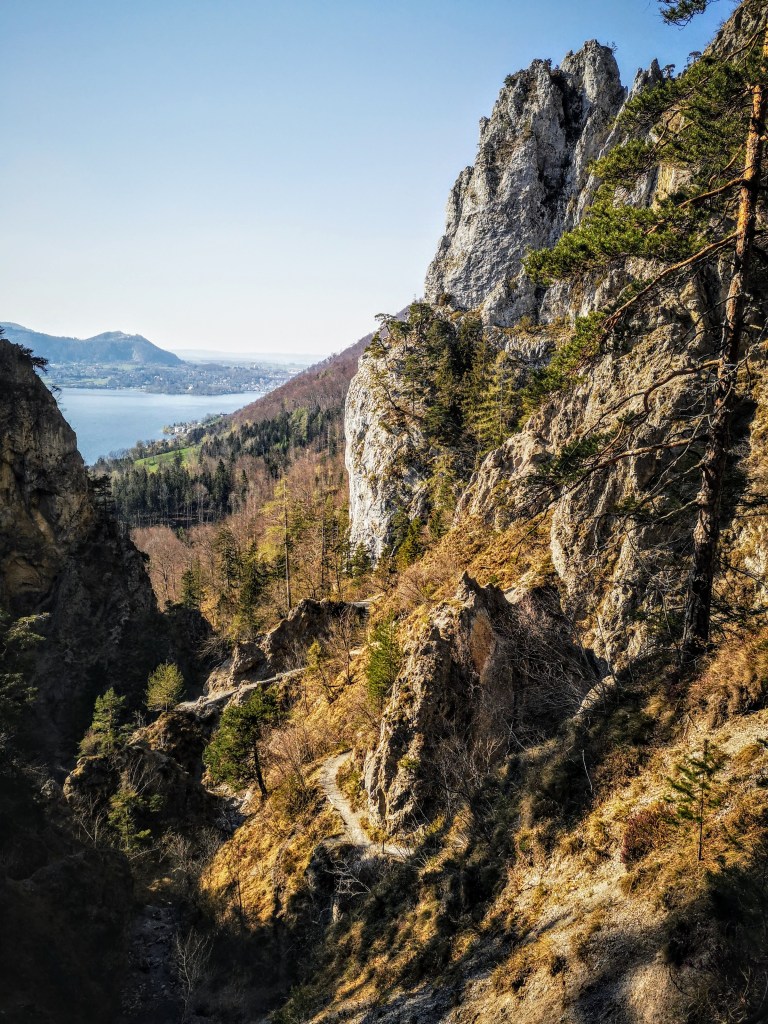 Spitze Felsnadeln, schmale Steige, unerwartete Tief- & Ausblicke, a Wasserfall und immer wieder der Blick auf den Traunsee. Eine Runde durch das Naturschutzgebiet am Ostufer – für trittsichere und schwindelfreie wartet der ein oder andere unmarkierte Steig. Ca 3km & 230hm, meine Variante hatte etwas mehr…