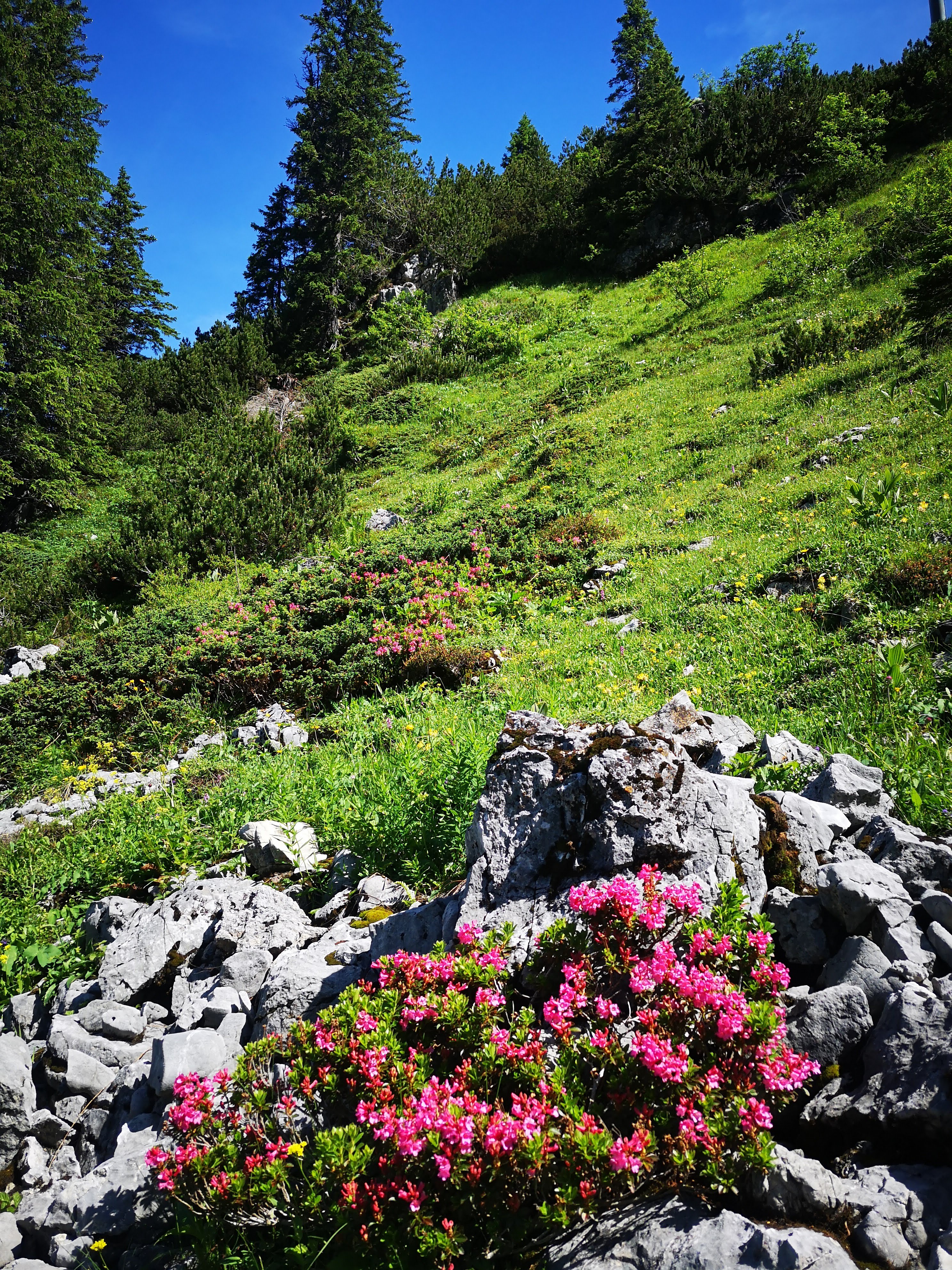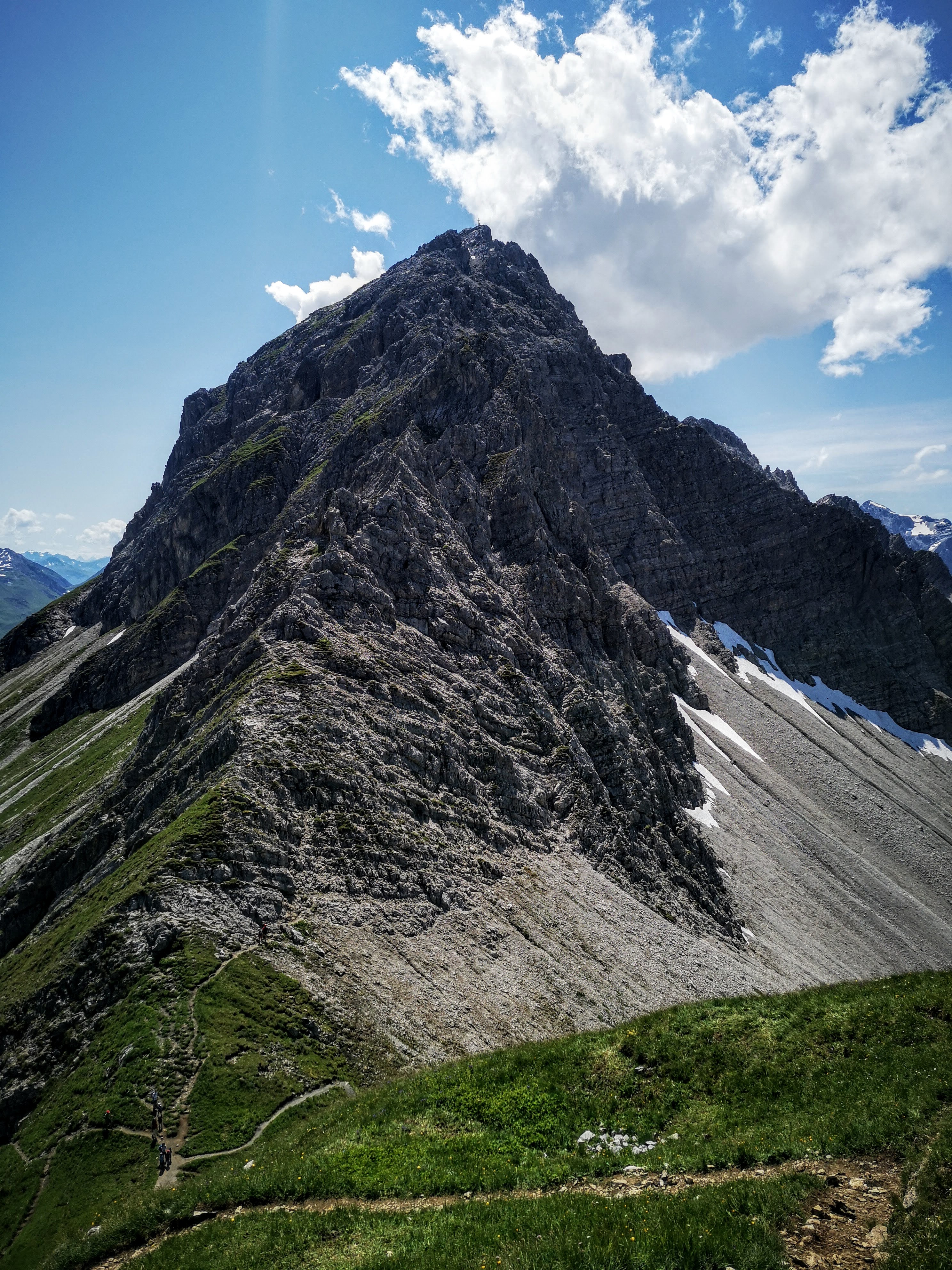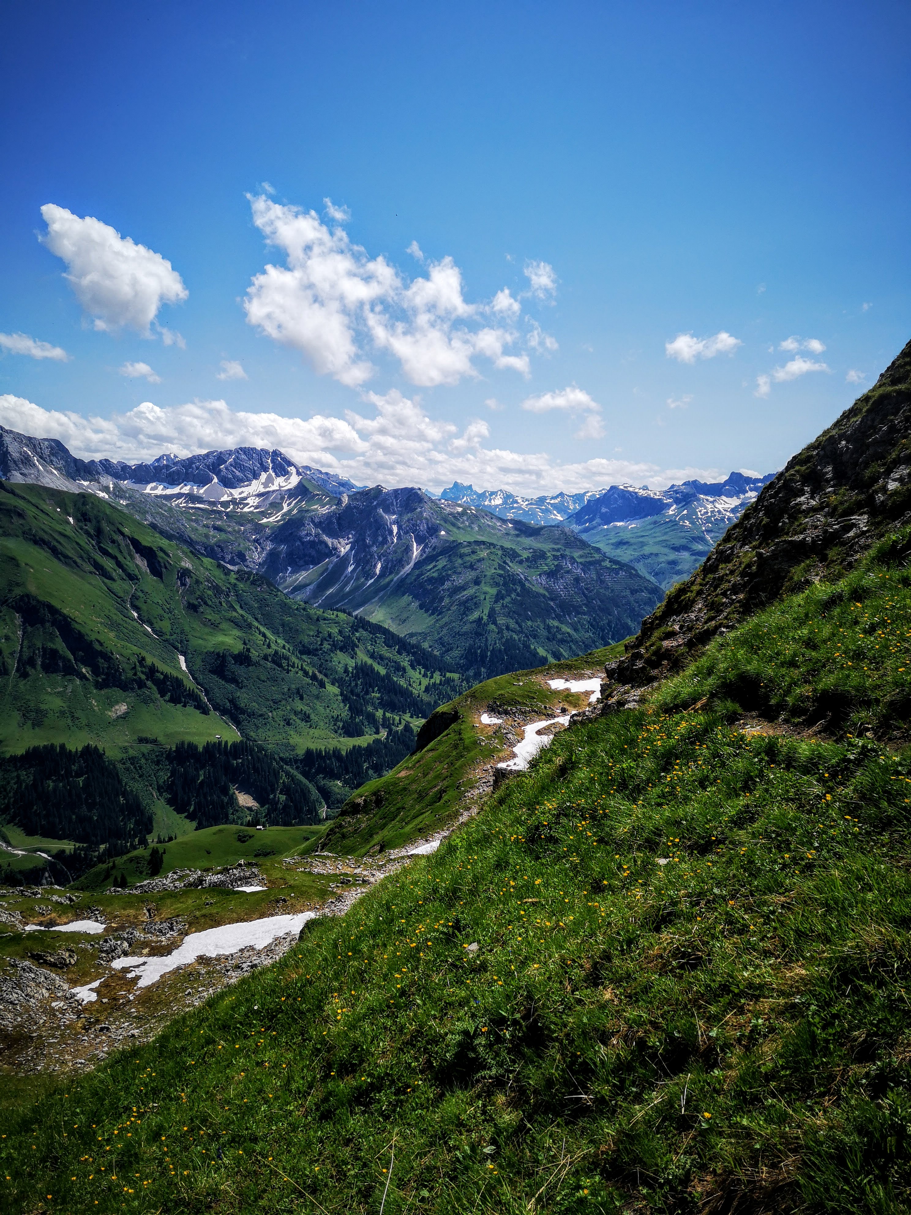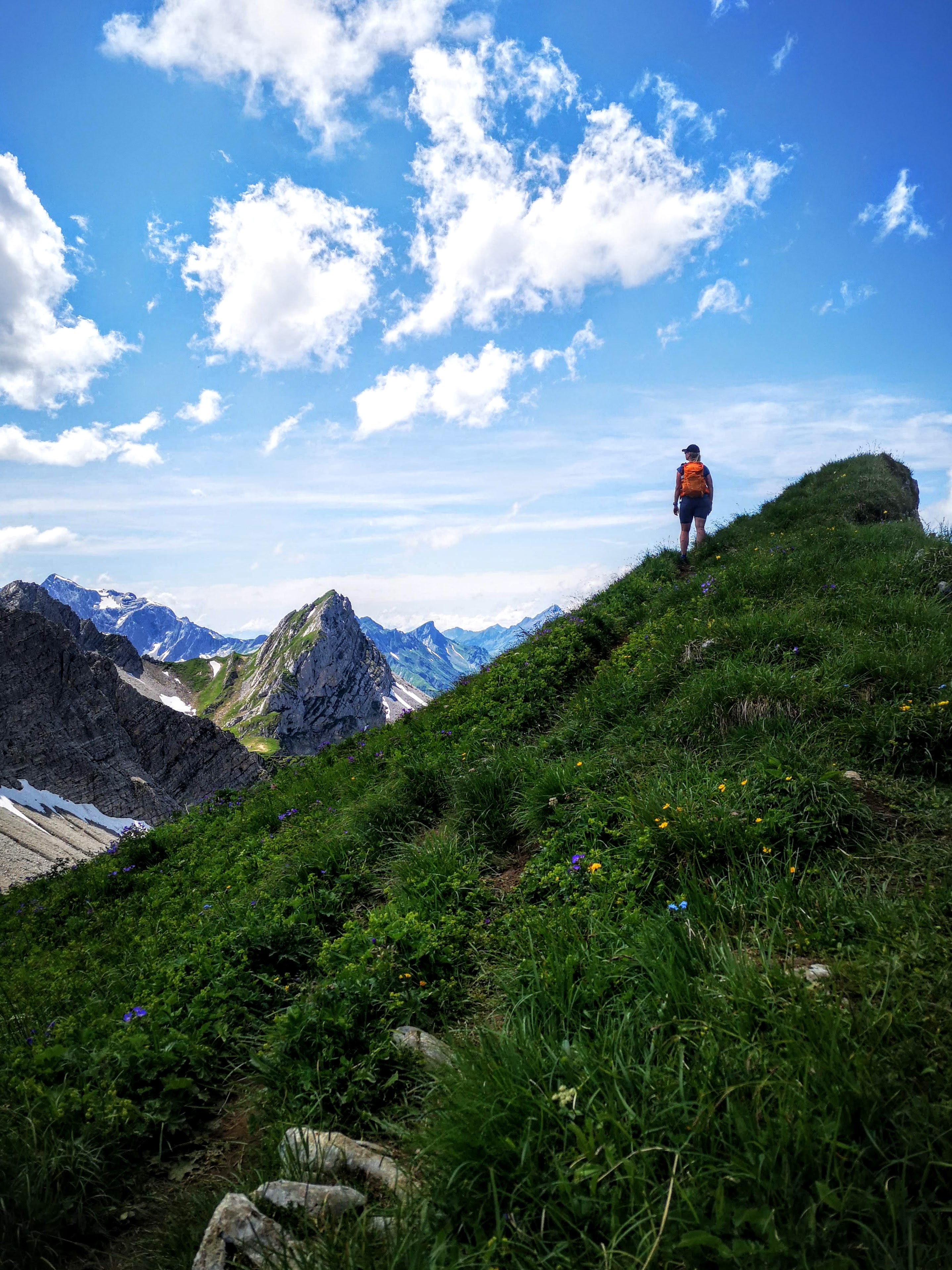 Gestartet wird am Hochtannbergpass 1676, am Kalbelesee vorbei zum Körbersee und nach Walser Kasfladen auf der Terrasse des Berghotels (sehr zu empfehlen) via Salobersattel 1794m, Saloberkopf 2034m zum Gipfel. Über satte Wiesen, zwischen freilaufenden Kühen und neugierigen Murmeltieren, über Schneefelder und durch Bäche… Enzian überall. Wirklich wunderschön hier! Kurz vor dem Gipfel-Endspurt gibt es eine erste kleine Kraxl Passage – seilversichert. Schwindelfrei und trittsicher muss ma trotzdem sein. Oben dann direkter Blick auf den Biberkopf 2599m und a gewaltiges 360 Grad Panorama. Feine Tour mit 750hm & 10,8k – zur Belohnung besonders knieschonend die letzten 300hm retour ins Tal, die Fahrt mit der Seilbahn (Steffisalpexpress) ist in der Warth-Karte inkludiert! Das ist auch der Grund, warum der Warther Hausberg so begehrt ist – der Fakt, dass die Bergstation auf 1822m liegt und somit der Gipfelanstieg verkürzt werden kann.