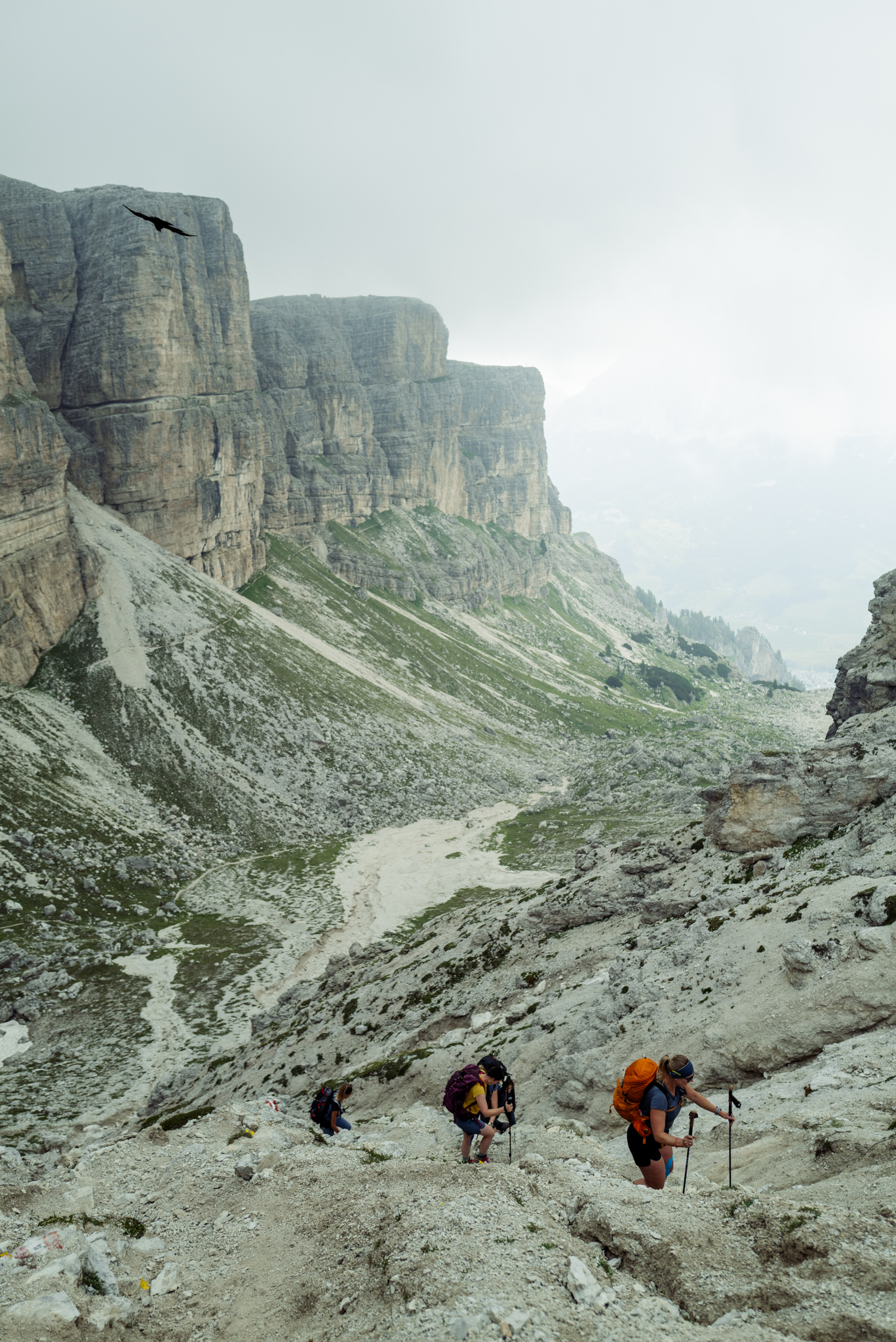 Vom Langental zur Puez Hütte 2475m, über das Hochplateau zur Gardenacia Hütte 2050m. Sonnenaufgang auf 2497m, Nebel am Sassongher 2665m und Abstieg nach Kolfuschg. Gewaltige Eindrücke, einsame Wege und nicht ganz so einsame Gipfel. Vom Grödner- ins Gader- und weiter ins Edelweisstal…