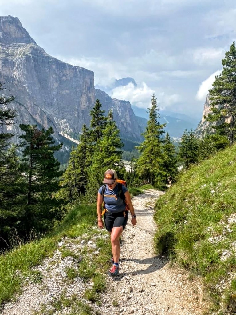 Start: Wolkenstein im Grödnertal 1563m od direkt beim Wanderparkplatz Langental (2 Tagesticket faire 10 Euro, Tagesticket 5 Euro – kein Nachtcamping!) – Weg Nr. 14 – links auf Weg Nr. 16, der später in Weg Nr. 2 (Alta Via delle Dolomiti) übergeht – Puez Hütte 2475m (Gipfeloption: Puezspitze 2913m, ca. 1h) – via Weg Nr 2 & 15 zur Gardenaccia Hochfläche – Forcella de Gherdenacia 2538m – Abstieg via Weg Nr. 11 zur Gardenacia Hütte 2050m auf der Sterner Alm am südöstlichen Rand des Puez Geisler NP, zum Gadertal aka Val Badia gehörend (Übernachtung). 12,8km & 980hm