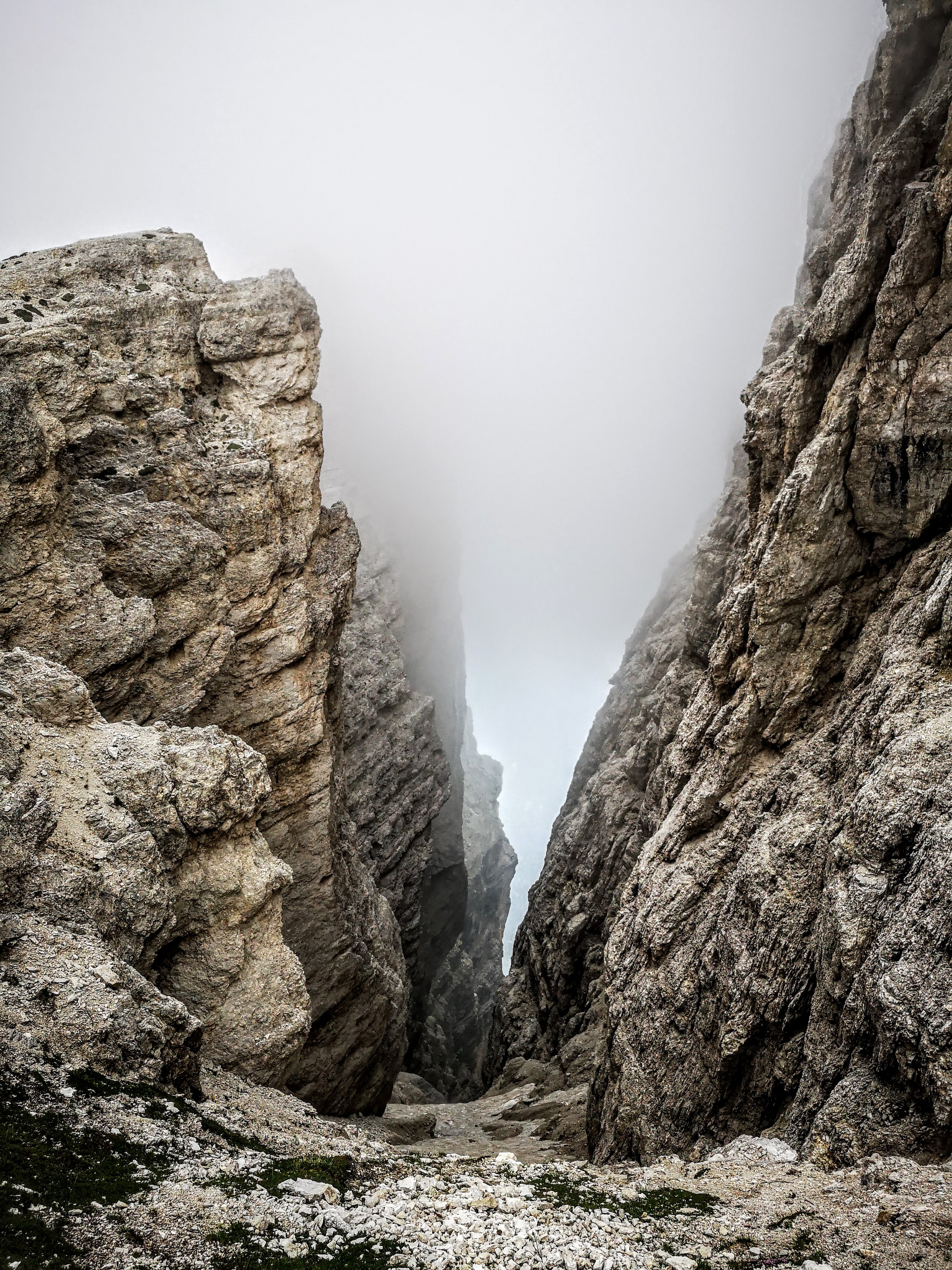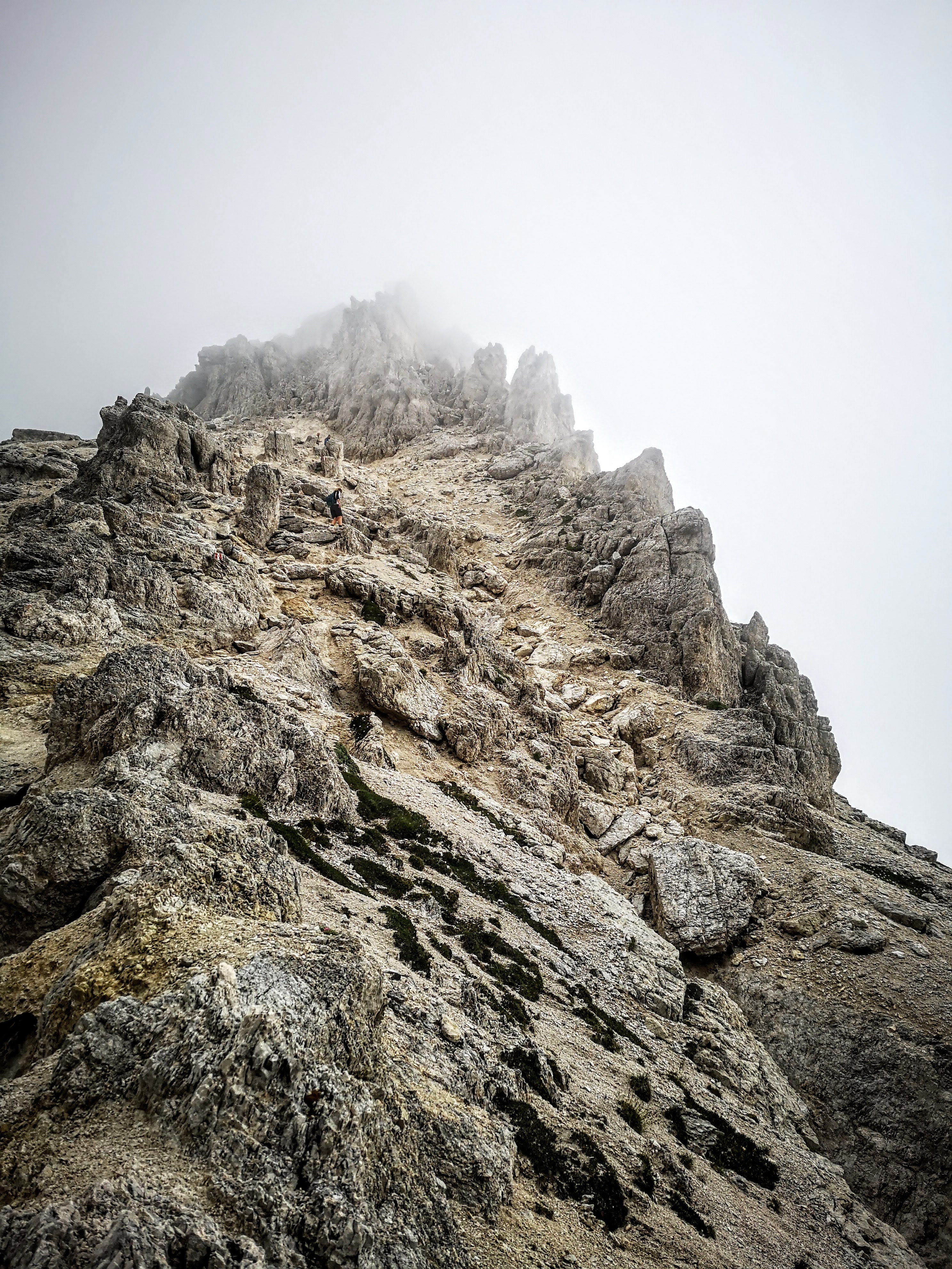 Dass das Grödnertal zu meinem ausgesprochenen Südtirol-Lieblingsplätzen zählt, habe ich schon mehrmals erwähnt. Diese zwei Tages Tour führt mich in einen Teil des Puez-Geisler-Naturparks, das ich noch nicht kenne. Quasi in sein letztes Eck. Der erste Tag ist technisch unschwierig (mittelschwere Tour). Am zweiten Tag wartet der Gipfel des Sassongher 2670m, der etwas anspruchsvoller ist (schwere Tour, schwarzer alpiner Steig) – trotzdem an schönen Tagen heillos überlaufen. Da hatten wir wohl Nebel-Glück…