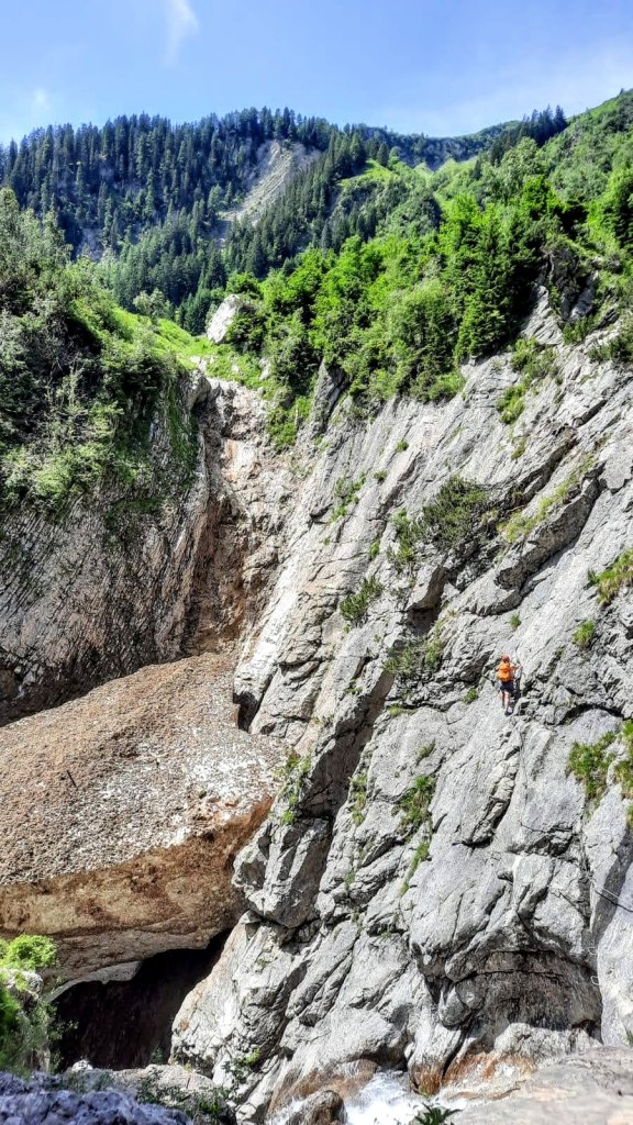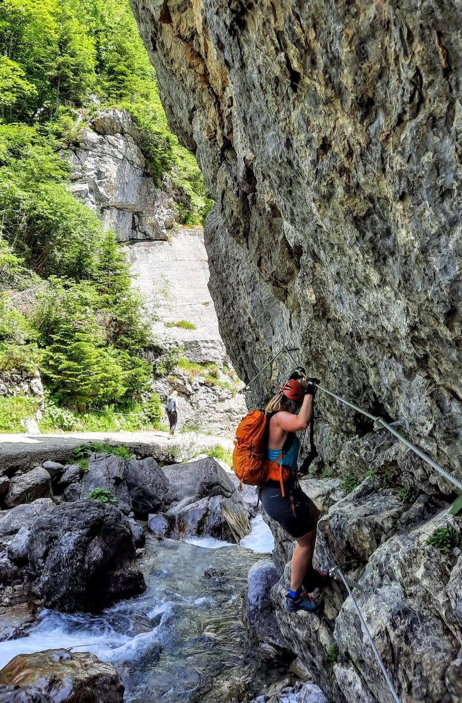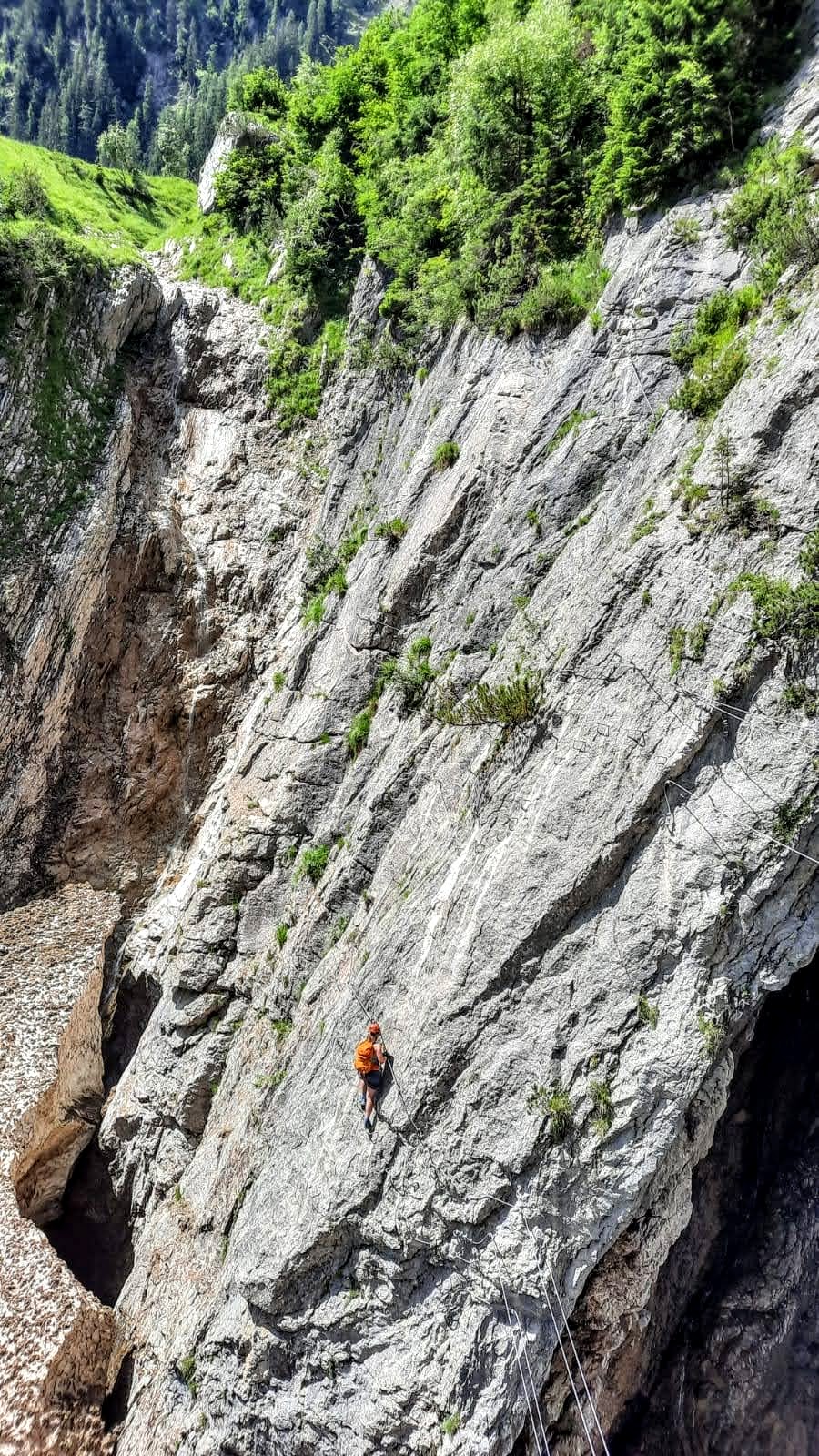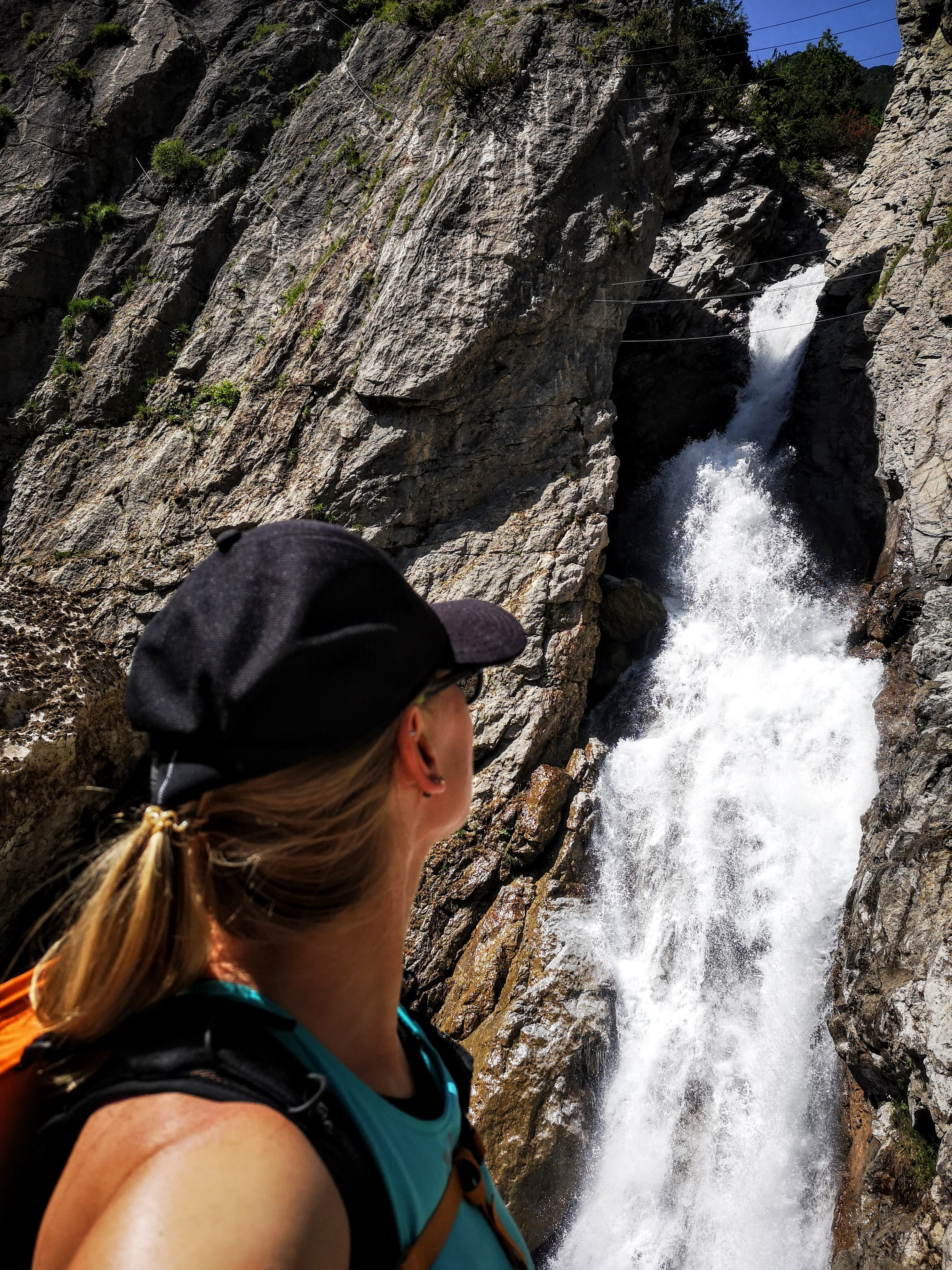 An einem heissen Sommertag am Klettersteig neben dem Simmswasserfall abhängen – wenn auch noch verschiedene Varianten in den Kategorien B/C bis D/E warten, ein unerwarteter Glücksgriff! Alles zu meinem Doppeldate mit kurzem Zustieg & Panorama-Bonus auf der berühmten Höhenbach-Hängebrücke