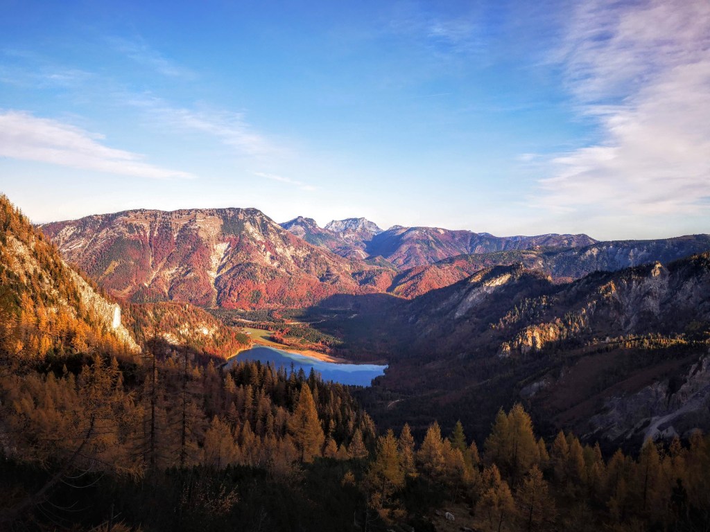 3 Seen, 2 Bundesländer – gewaltige Überquerung im Salzkammergut! Ein fast 25km langer Klassiker mit steilem Aufstieg und gewaltigen Panorama-Blicken im Naturschutzgebiet, der Wildensee 1535m als grüne Grenze. Im Sommer warten die Rinnerhütte 1473m und das steirische Appelhaus 1660m als Einkehr- oder Übernachtungsmöglichkeiten. Jetzt im späten Herbst geniesse ich nur mehr die Ruhe auf dieser Tour…