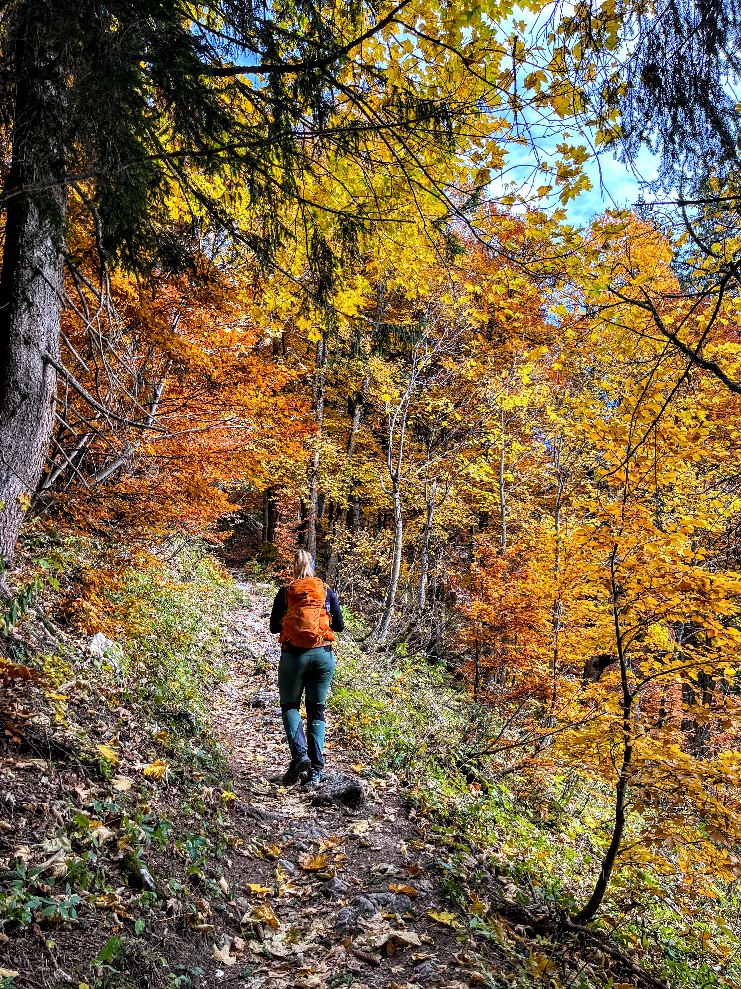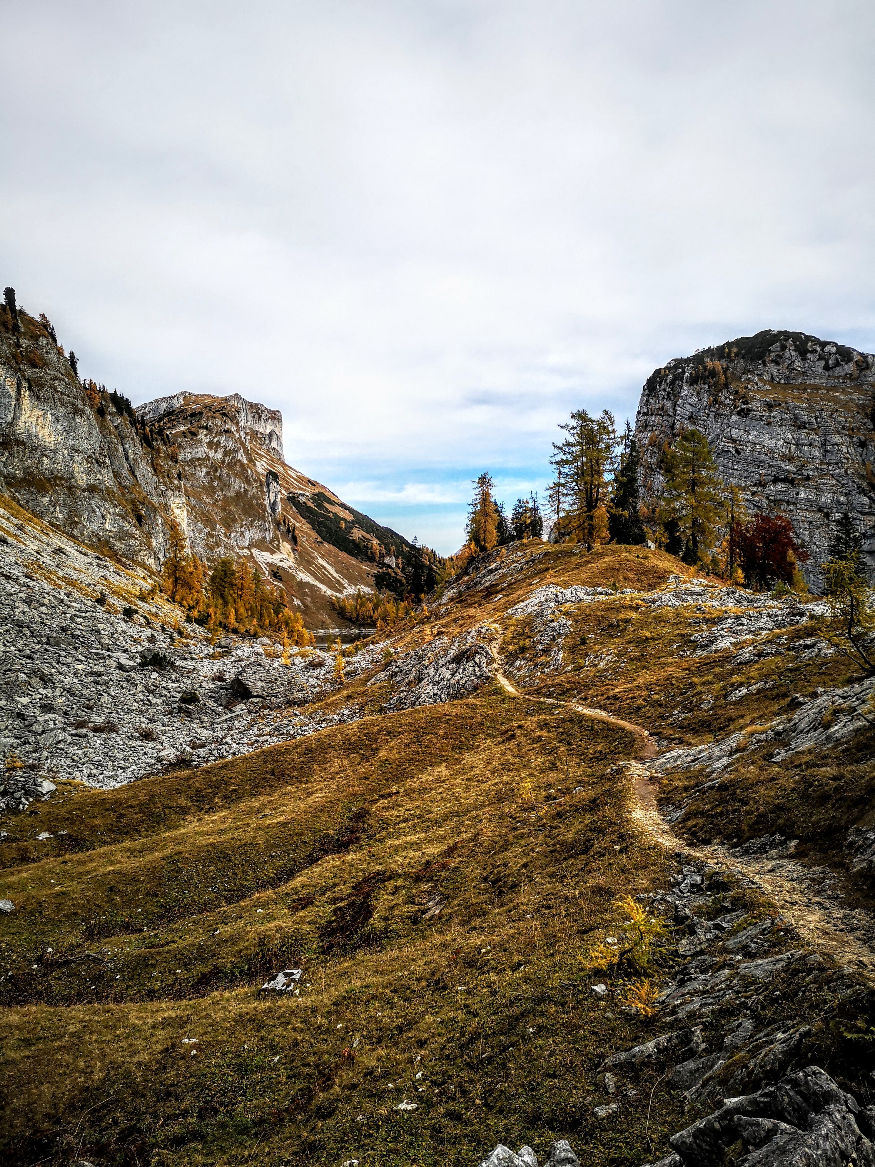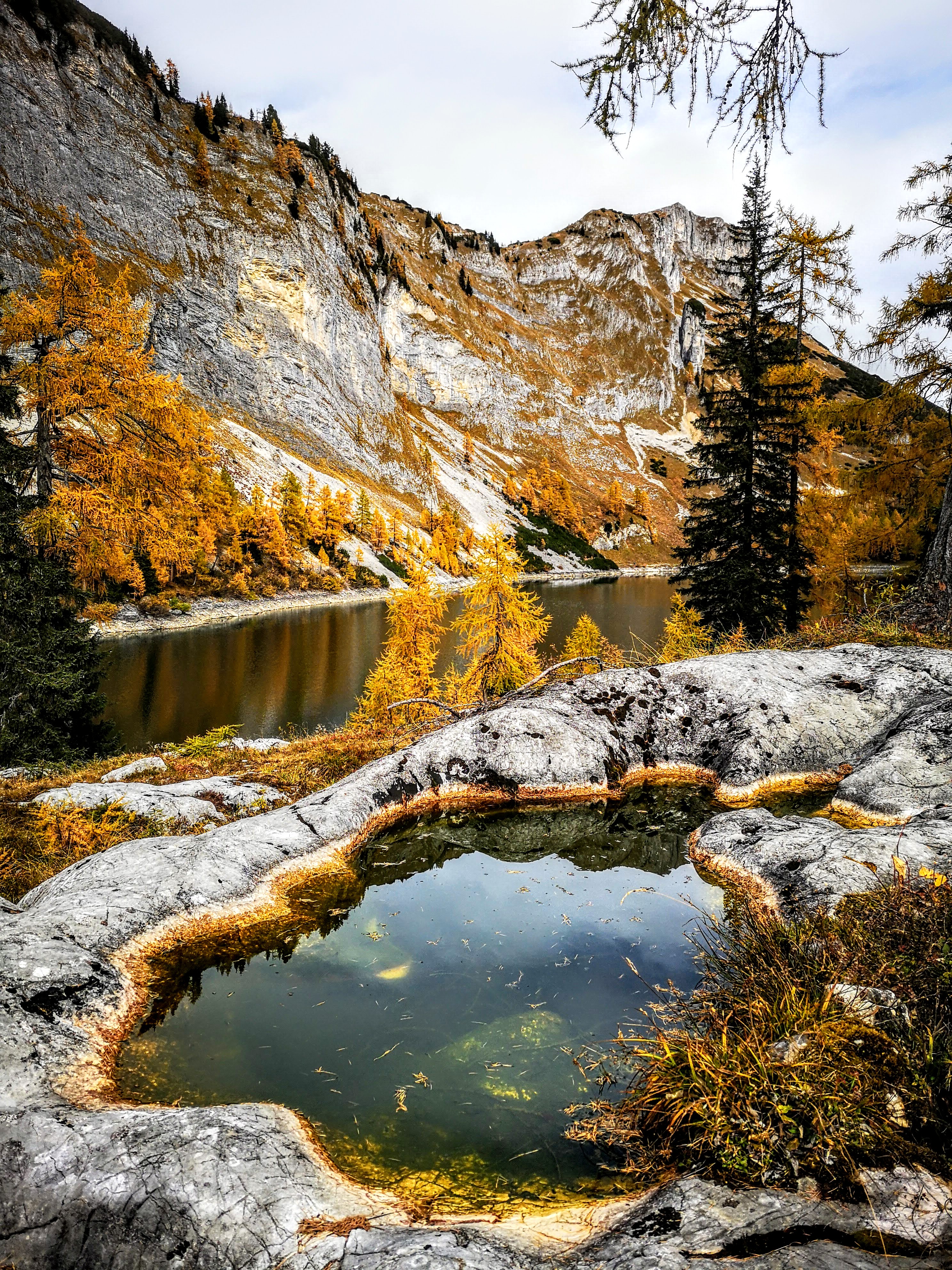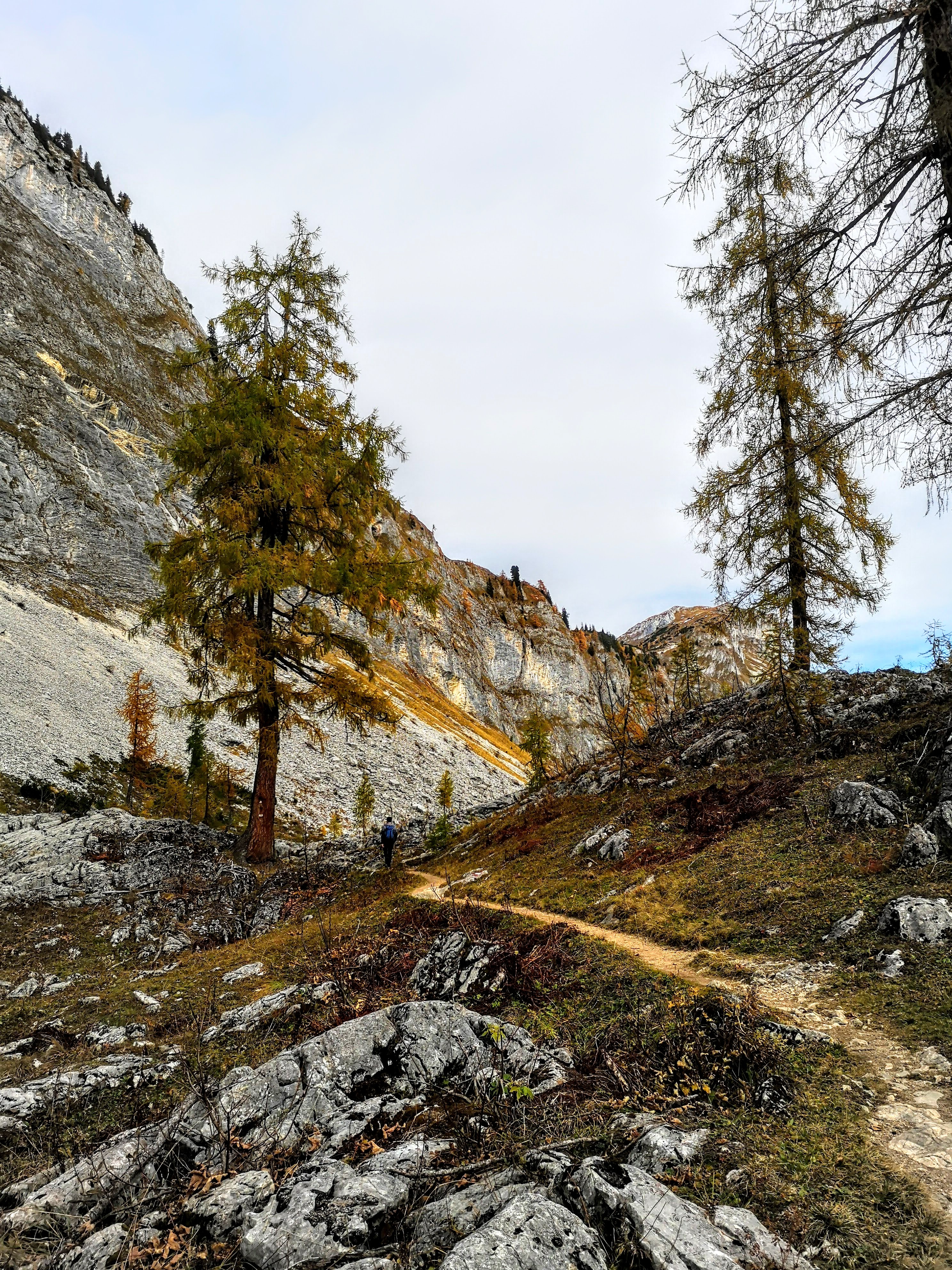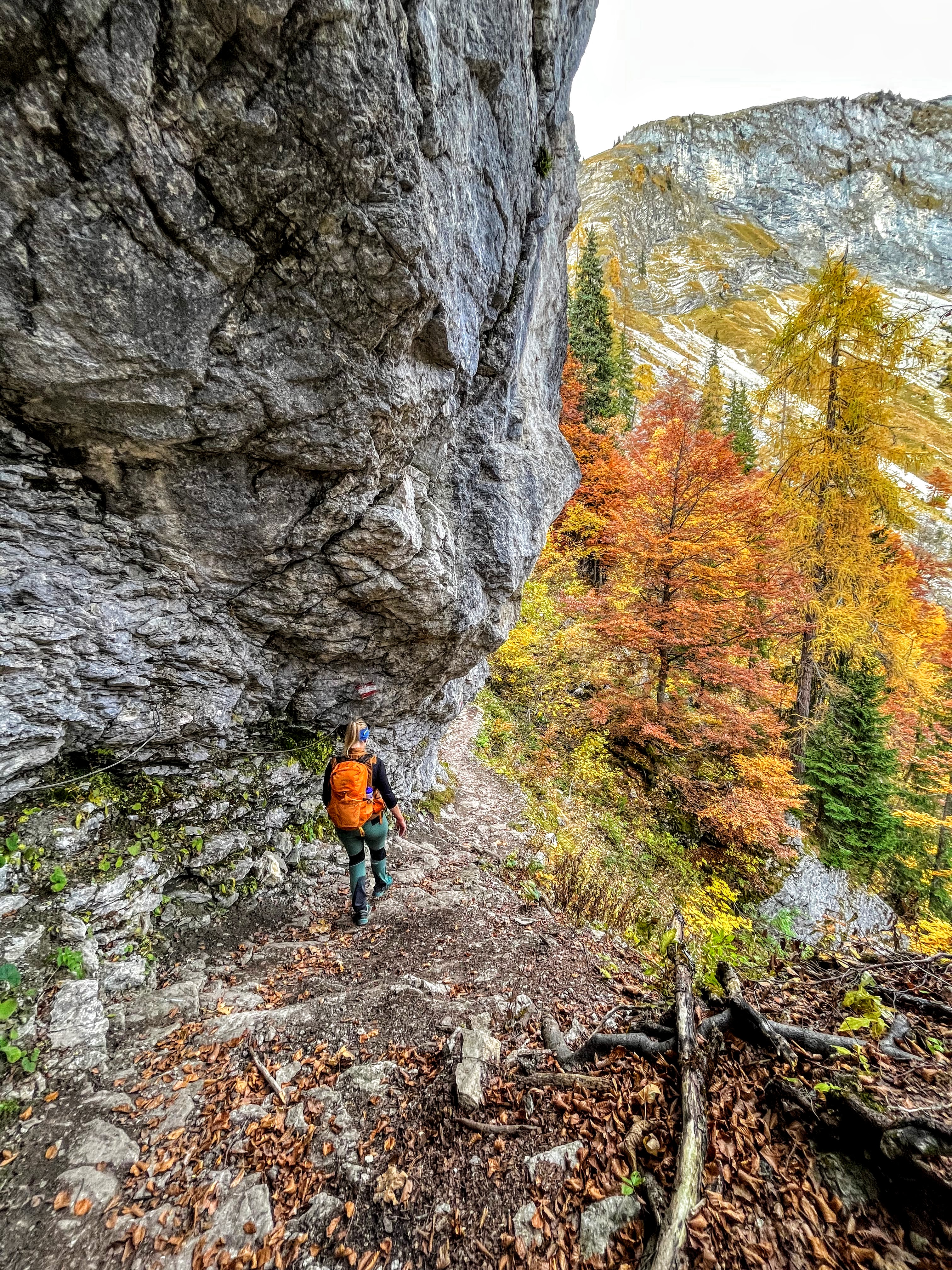 Versteckt zwischen Graswand und Neustein wartet dieser Kraftplatz im Natura 2000 Schutzgebiet. Wunderschöne Herbsttour auf schmalen Steigen zwischen leuchtenden Lärchen und gewaltigen Felswänden, von Grundlsee Schachen aus über den Ausseerweg (834hm & 11.4k)