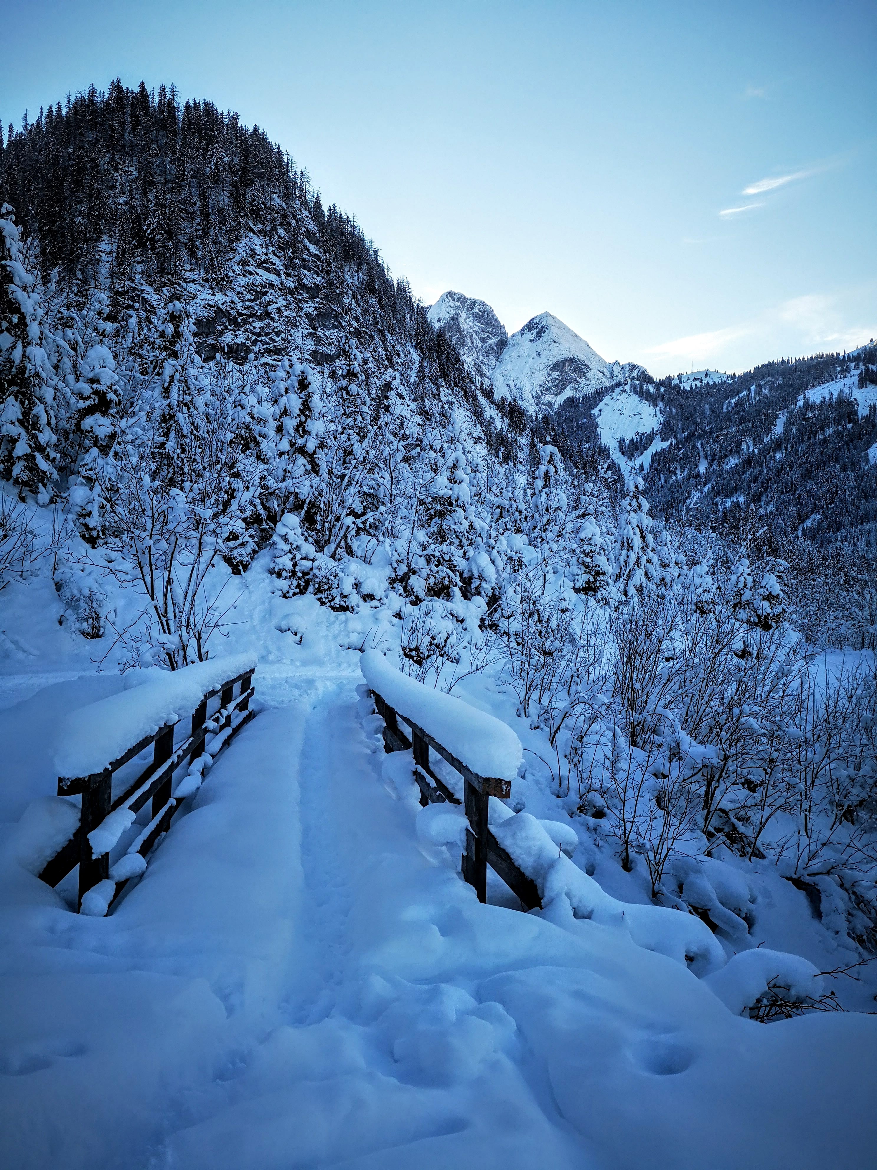 Tipp: auch der Gosaubachweg vom Vorder- ins Hintertal ist zum Spazieren im Winter immer geräumt (PS: im Vordertal scheint die Sonne länger…)