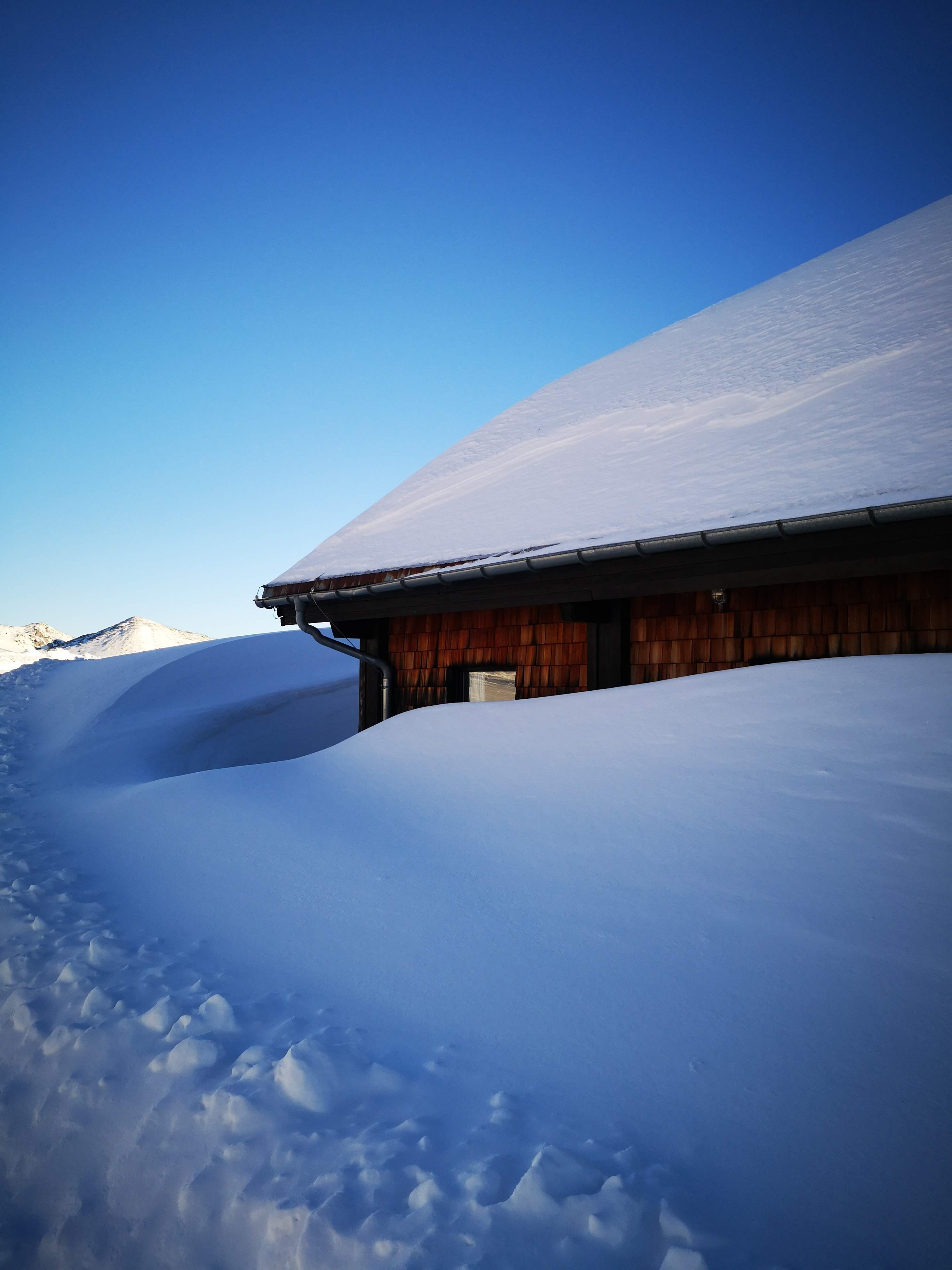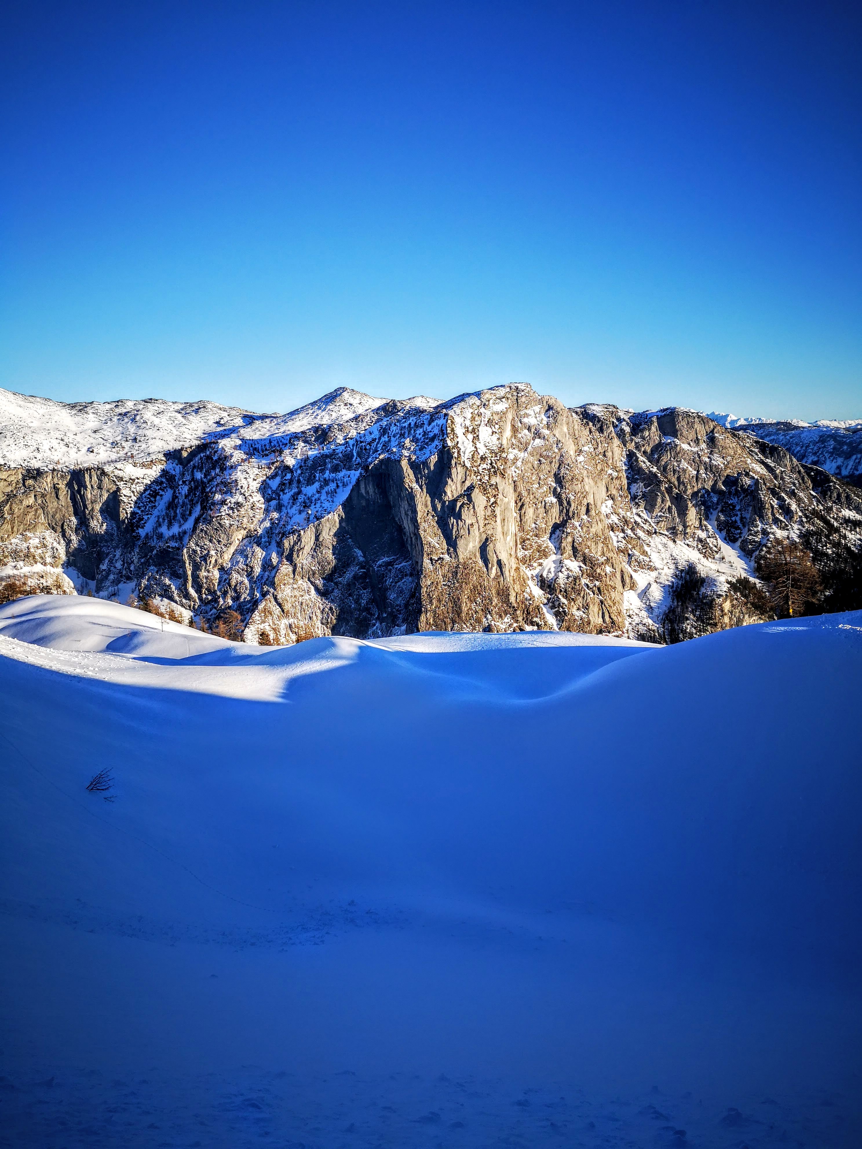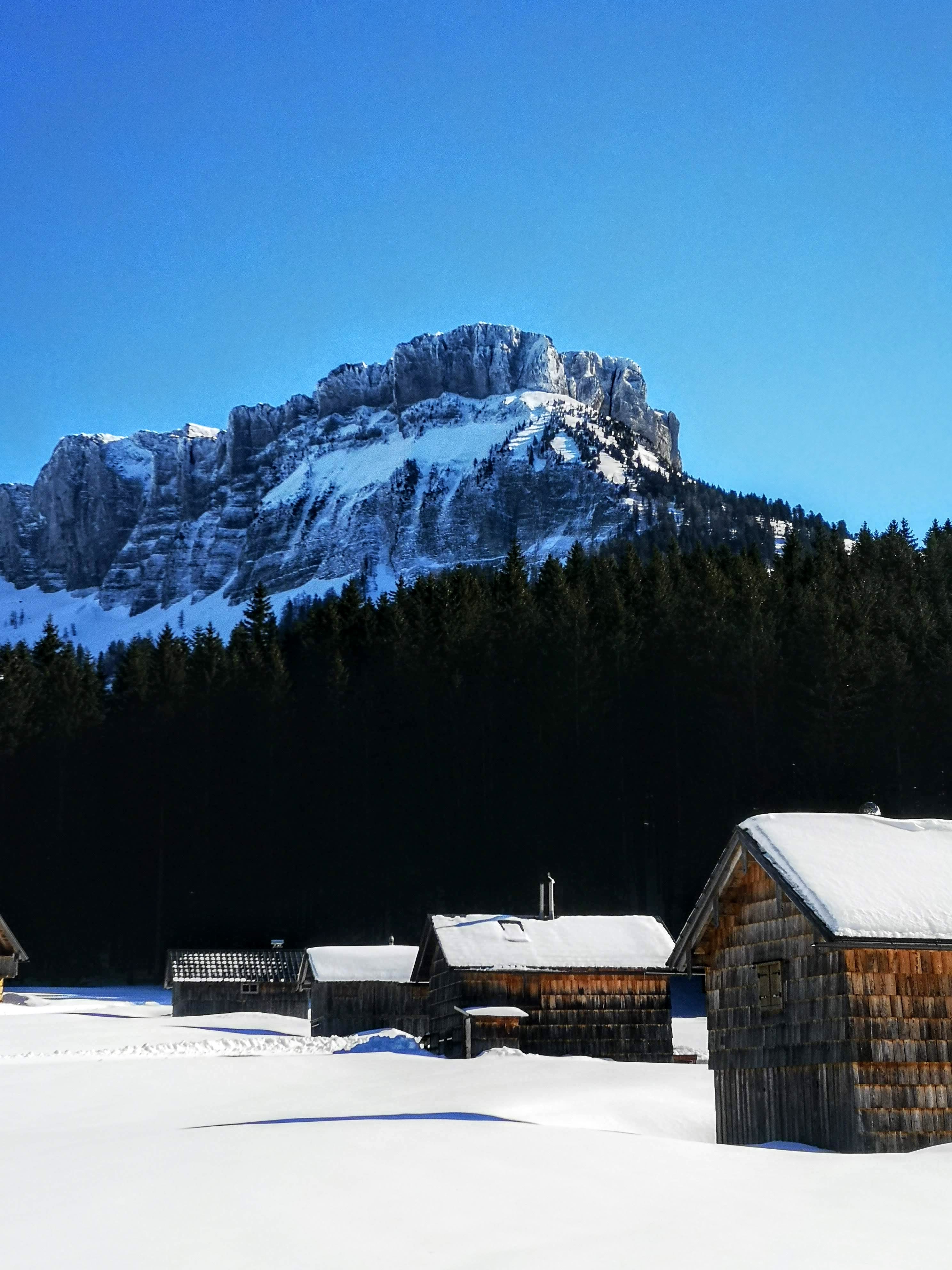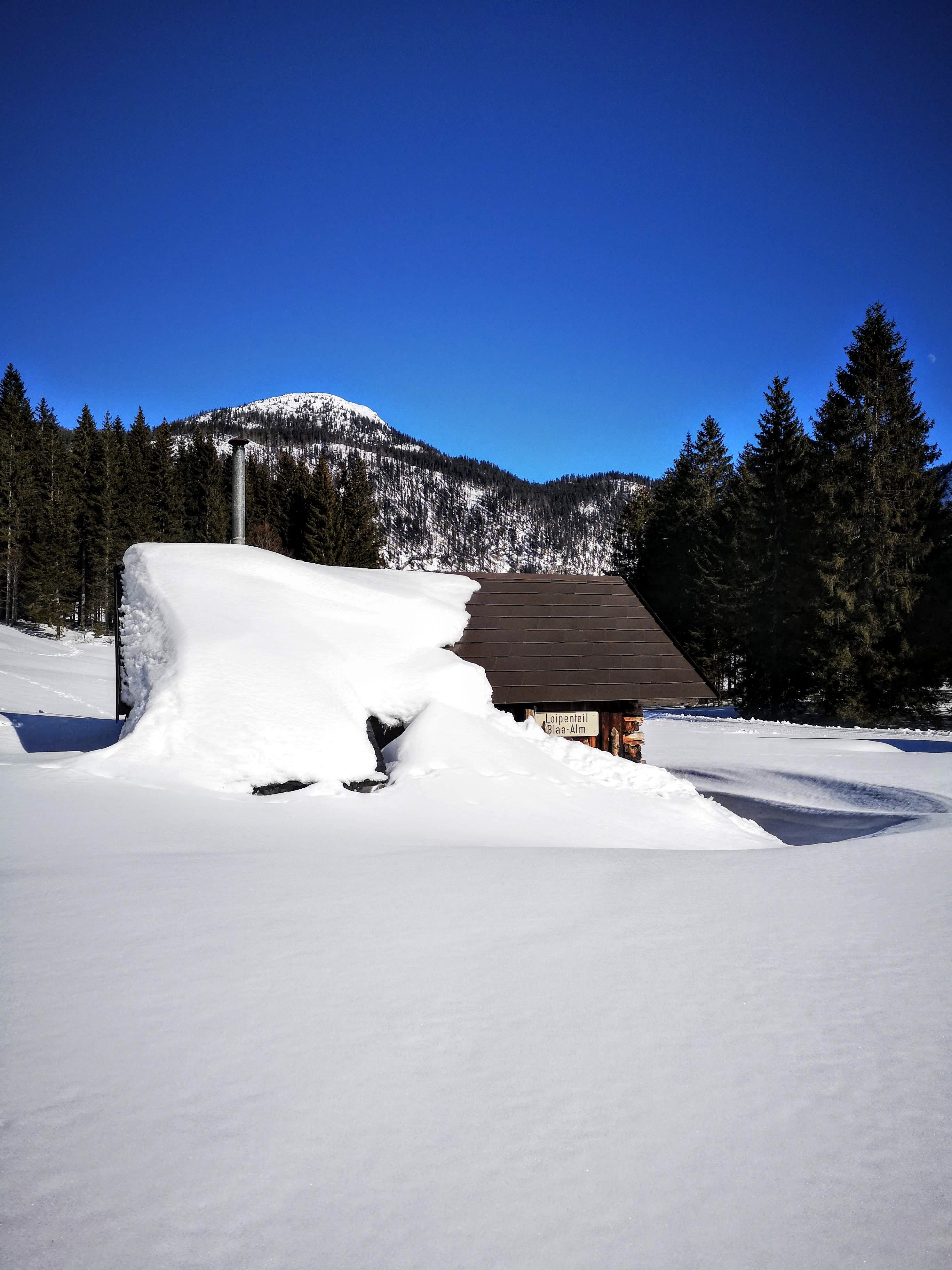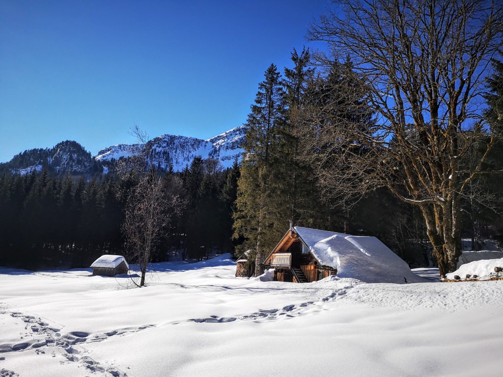 Immer im Blick und von jeder Seite mächtig – der Loser. Er begleitet uns fast die ganze Strecke bis zur Blaa Alm. Start ist beim Kinderland / Skischule Haim, der Weg führt über das Klauseck bis zur Blaa Wiese. Vorbei an dick eingeschneiten Hütten. Ruhe. Bis auf ein kurzes Waldstück die Sonne immer im Gesicht. Am Ende der Blaa Wiese ist Endstation – hier beginnt ein gesperrter Wildfütterungsbereich. Bitte wirklich beherzigen und auch nicht „nur mal kurz a bissi in Wald eini spazieren! Eine Schleife führt retour zur Blaa Alm (Einkehrtipp – nicht nur wegen der Cremeschnitte… aber ohne kann i a nit vorbei gehn). Immer wieder der Blick auf den mächtigen Loserstock mit seiner schroffen Hinterseite. Der Winterwanderweg ist durchgängig markiert, bitte nicht über die Loipen gehen! Und jetzt sag i nur mehr – schauen und geniessen!