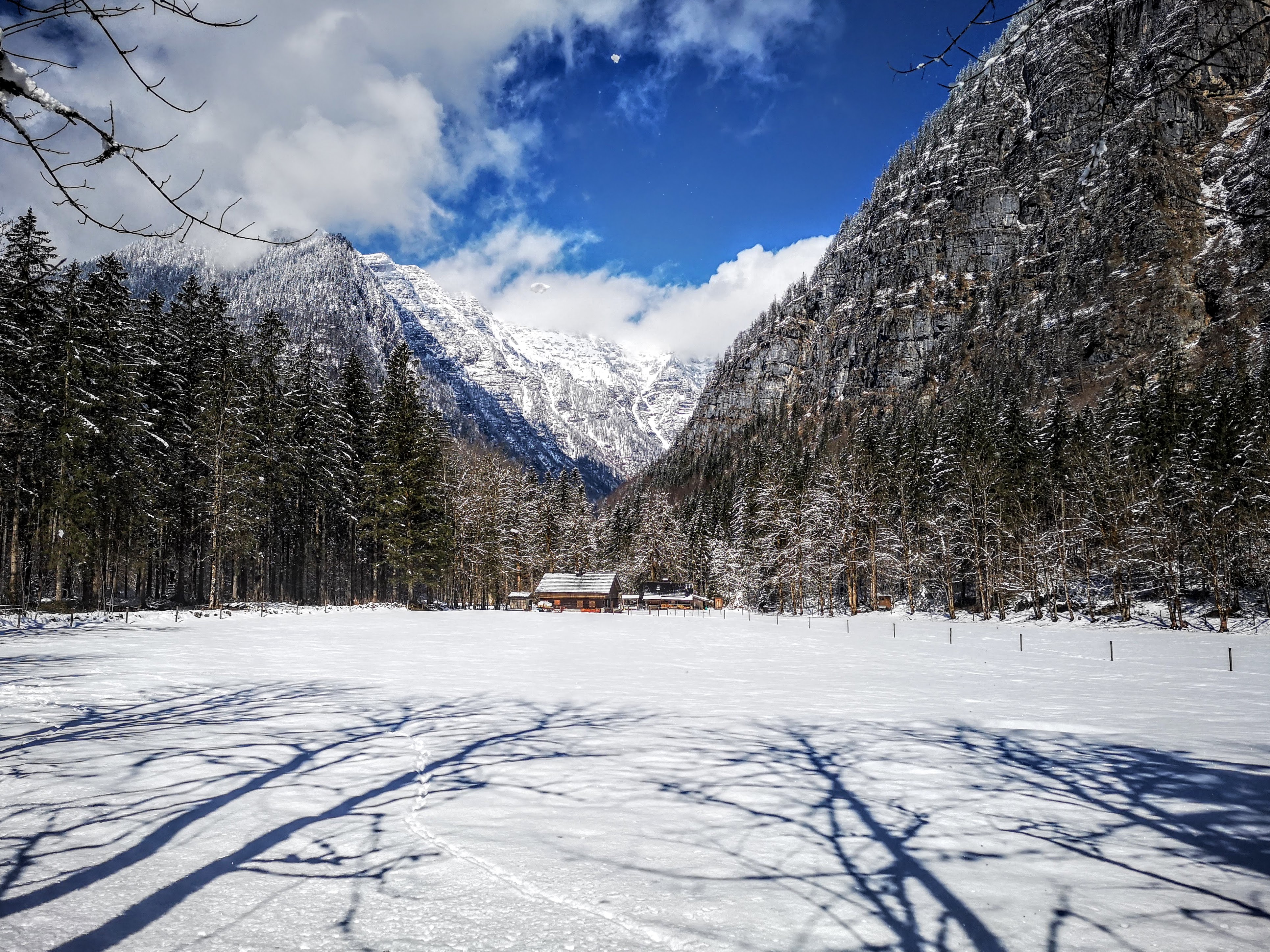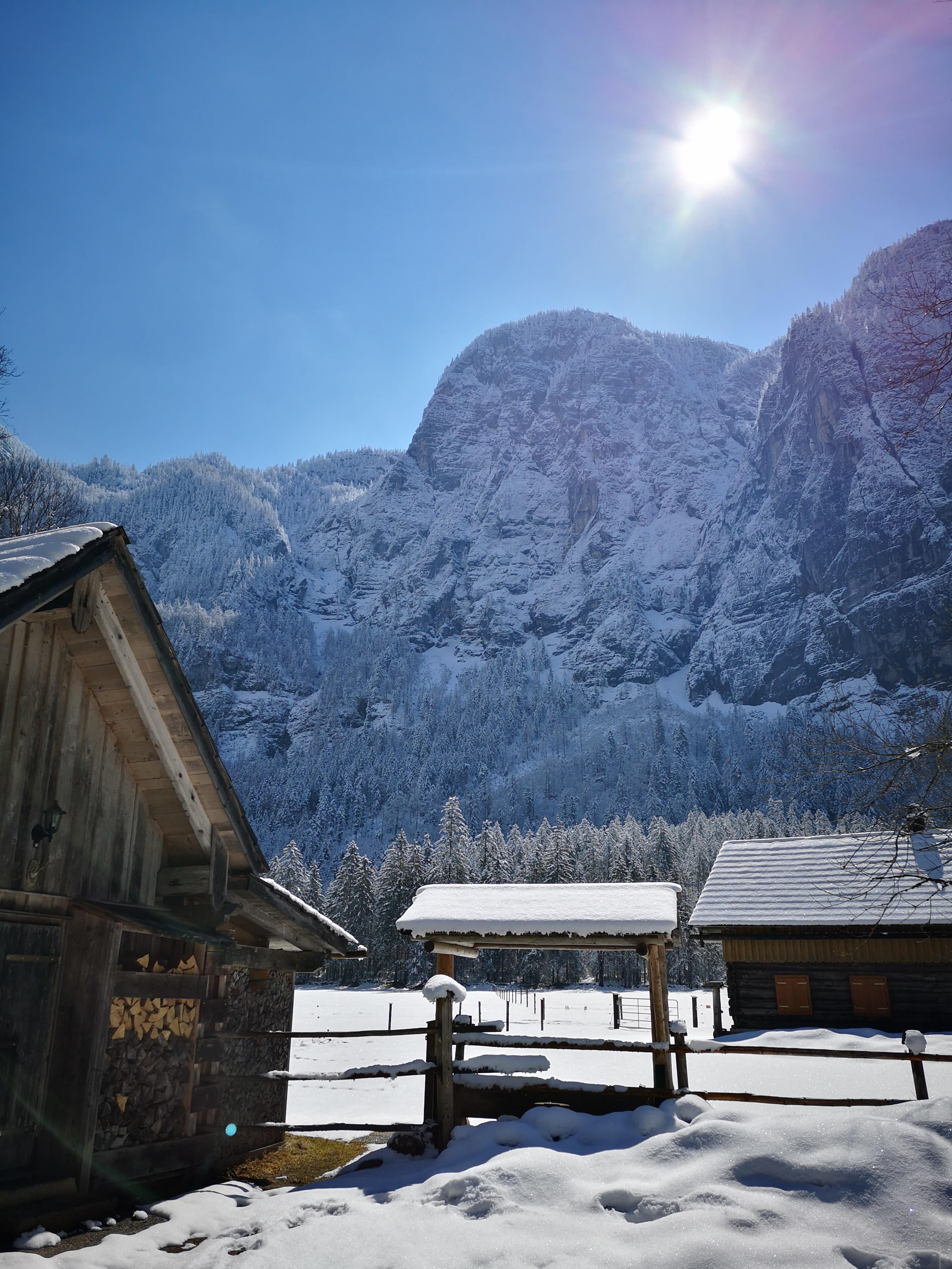 Anfang April, nach kurzem Frühlingsintermezzo nochmals 2 Tage Schnee – am dritten Tag kämpfen sich die Sonnenstrahlen zurück. Ein Spaziergang bei 3 Grad. Almhütten im tiefsten Winter, die Koppenwinkllacke lässt aber erste Spiegelungen zu. Der raue Koppn macht seinem Namen Ehre. Der Krippenstein tief winterlich. Die Lacke? Von voll noch weit entfernt, aber der Frühling wird bald mehr Wasser vom Dachsteinplateau schicken… zum Vergleich, beim Besuch Ende April 2021 war noch gar kein Wasser drin.