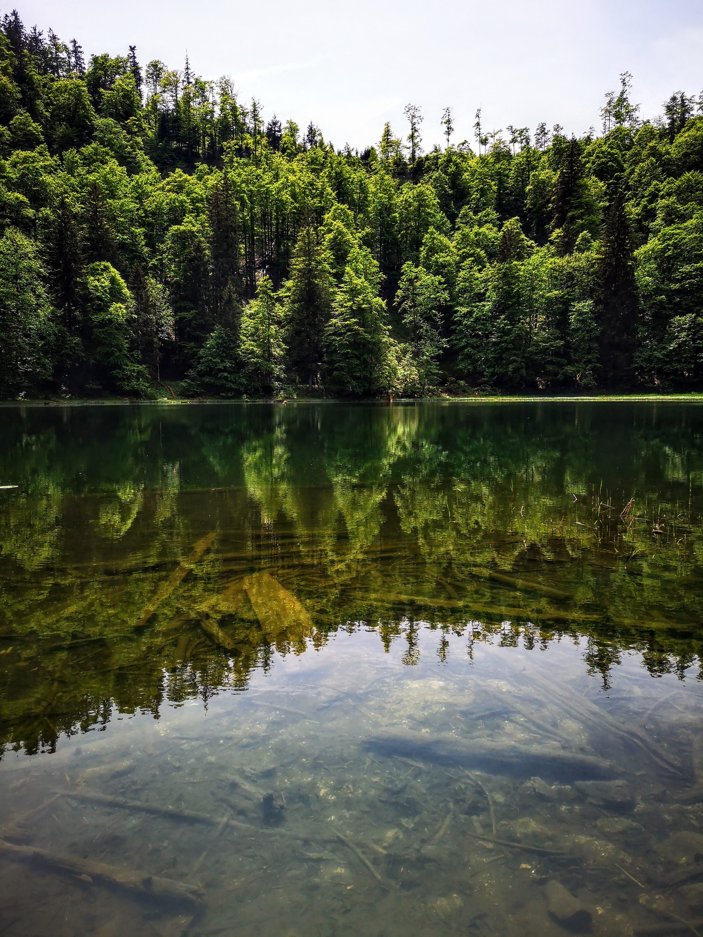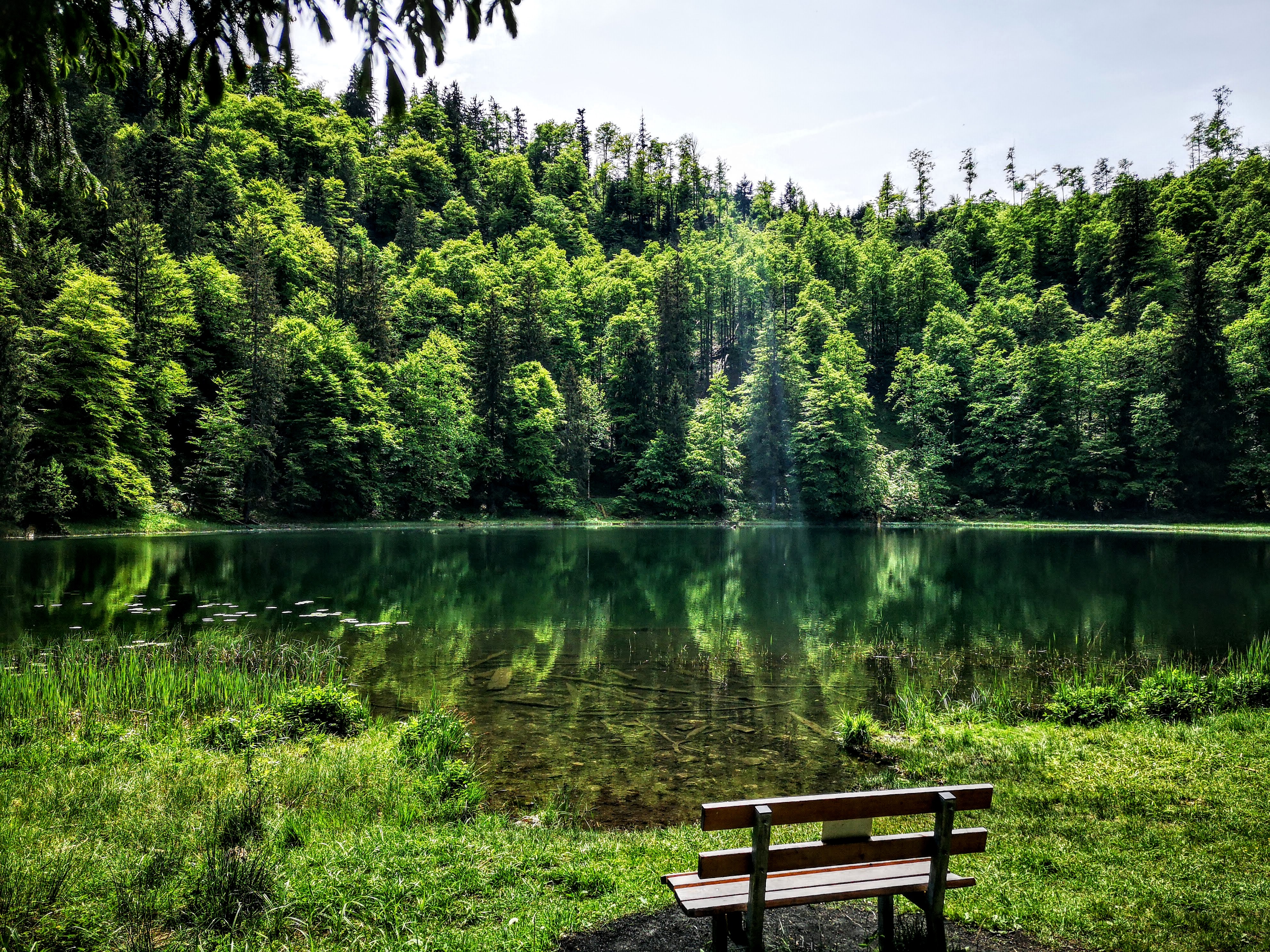 Geflucht hab ich ja doch ein oder zweimal am Weg zum Filblingsee – steile Forststrassen nicht mein Lieblingsaufstieg. Aber: zumindest schnell und mit 2 schönen Ausblicken (Bankerl vorhanden) schnell am ersten Ziel: dem kleinen Filblingsee auf 1100m, der mitten im Landschaftsschutzgebiet liegt. Keiner dort ausser mir. Und tausend Mücken. Und a paar Froschal… schee!