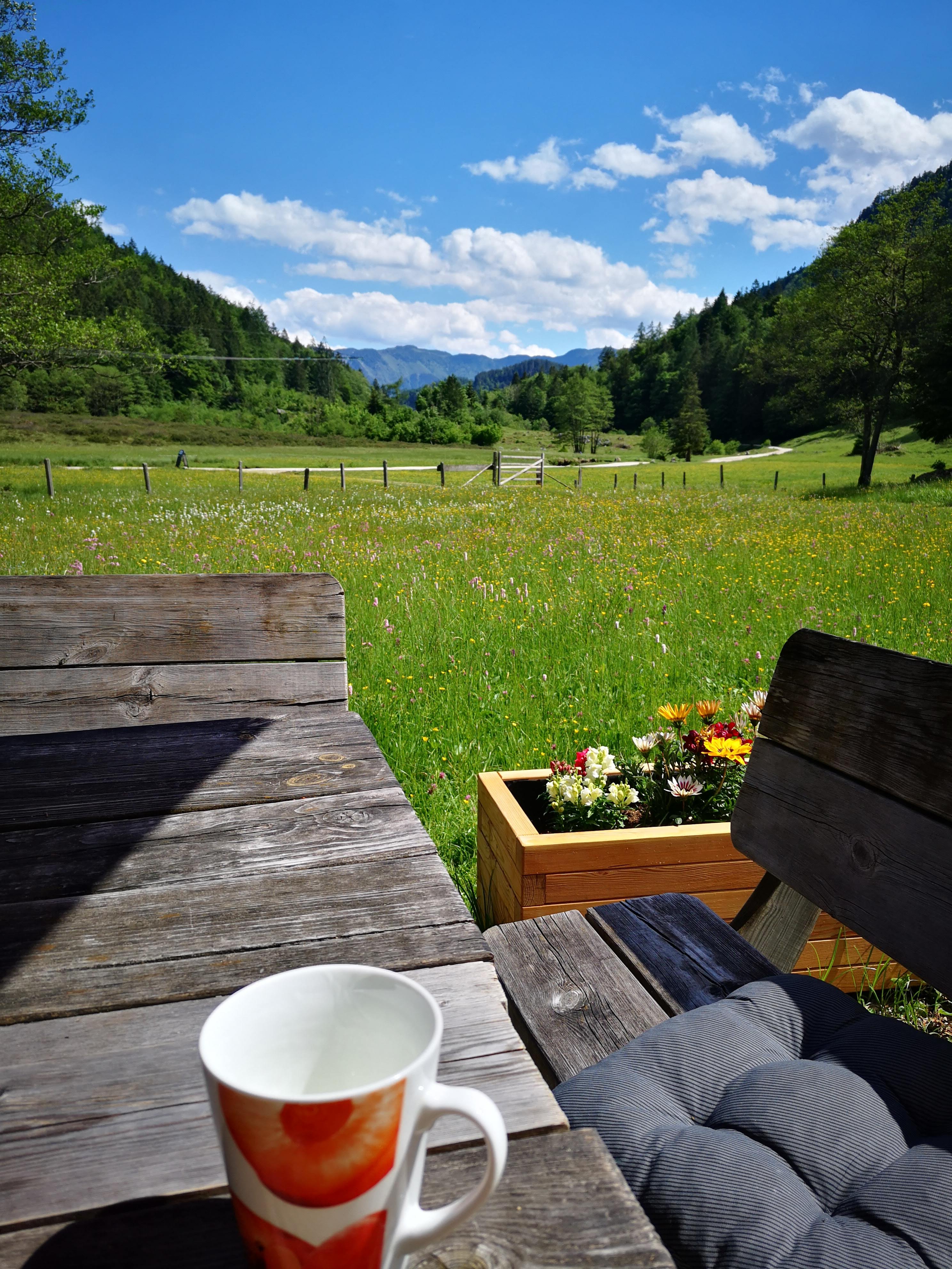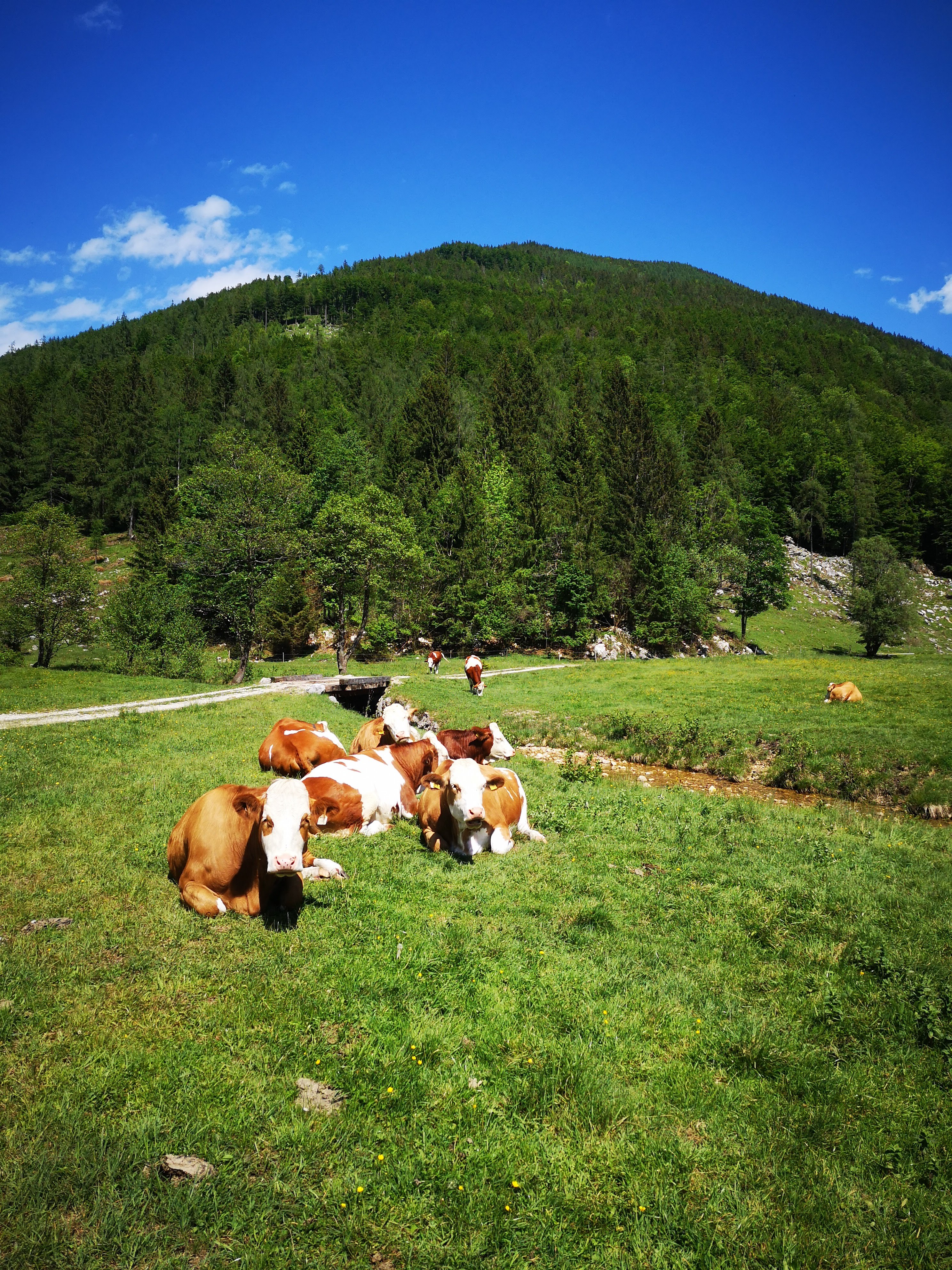 Tipp: unbedingt eine Einkehr beim Gschwandtnerbauern auf der Moosalm einplanen. Einfache Almspezialitäten wie Kasbrot, diverse Kuchen, Würstel, Aufstriche… wahnsinnig guad! A frische Buttermilch mit an Batzl Holler und a guada Marillenbunkl mit gonz vü Liebe gmocht (Portion für 3) – besser geht nit, donkschee liabe Gschwandtnerbäuerin! Würde man dort weitergehen, kommt man an den Attersee… Achtung: auf der Alm ist eine komplett freilaufende Kuh-Herde mit vielen Jungtieren, wo einzelne auch gerne mal mitten am Weg liegen oder a Gaudi beim anstupsen haben!