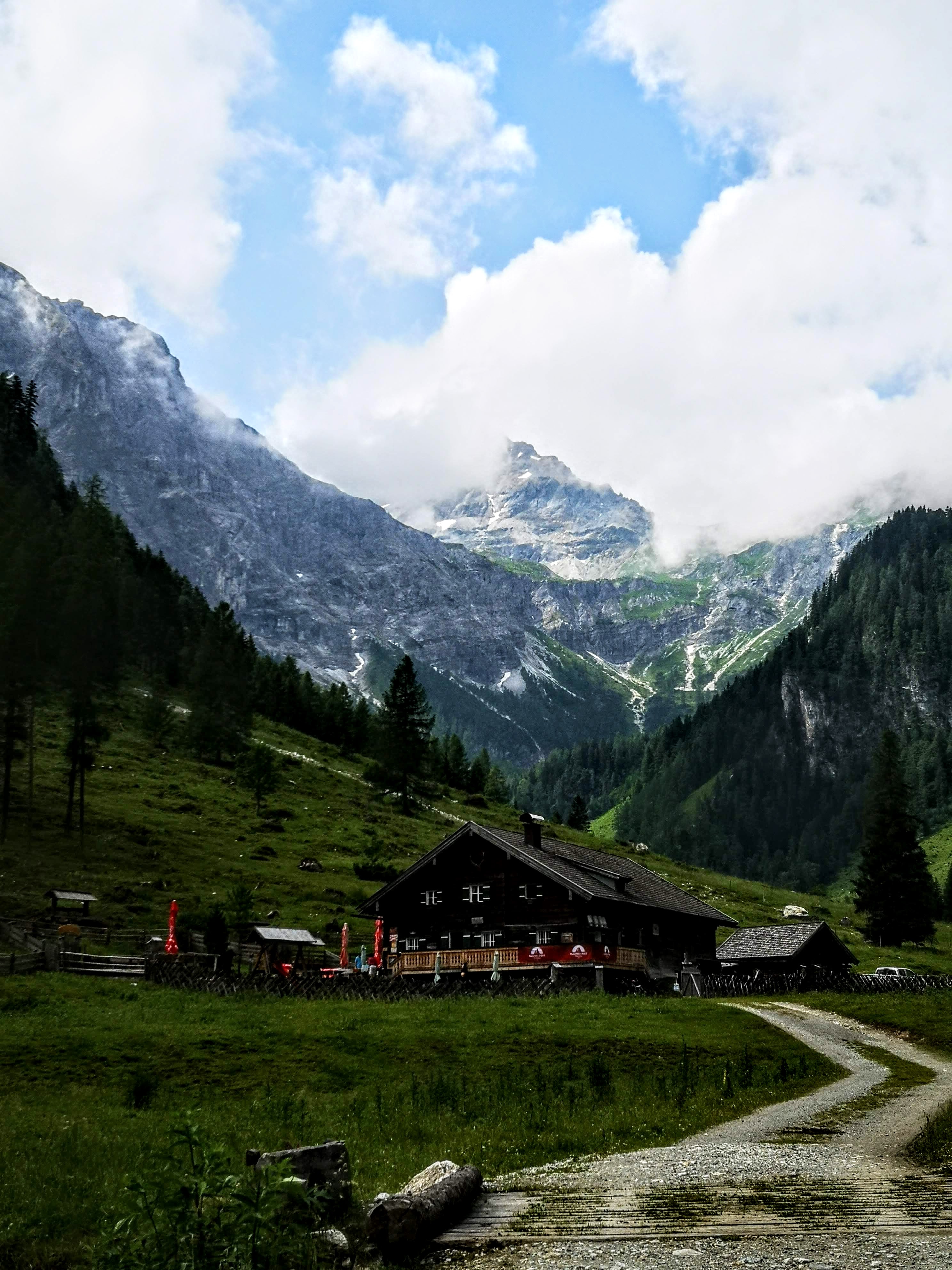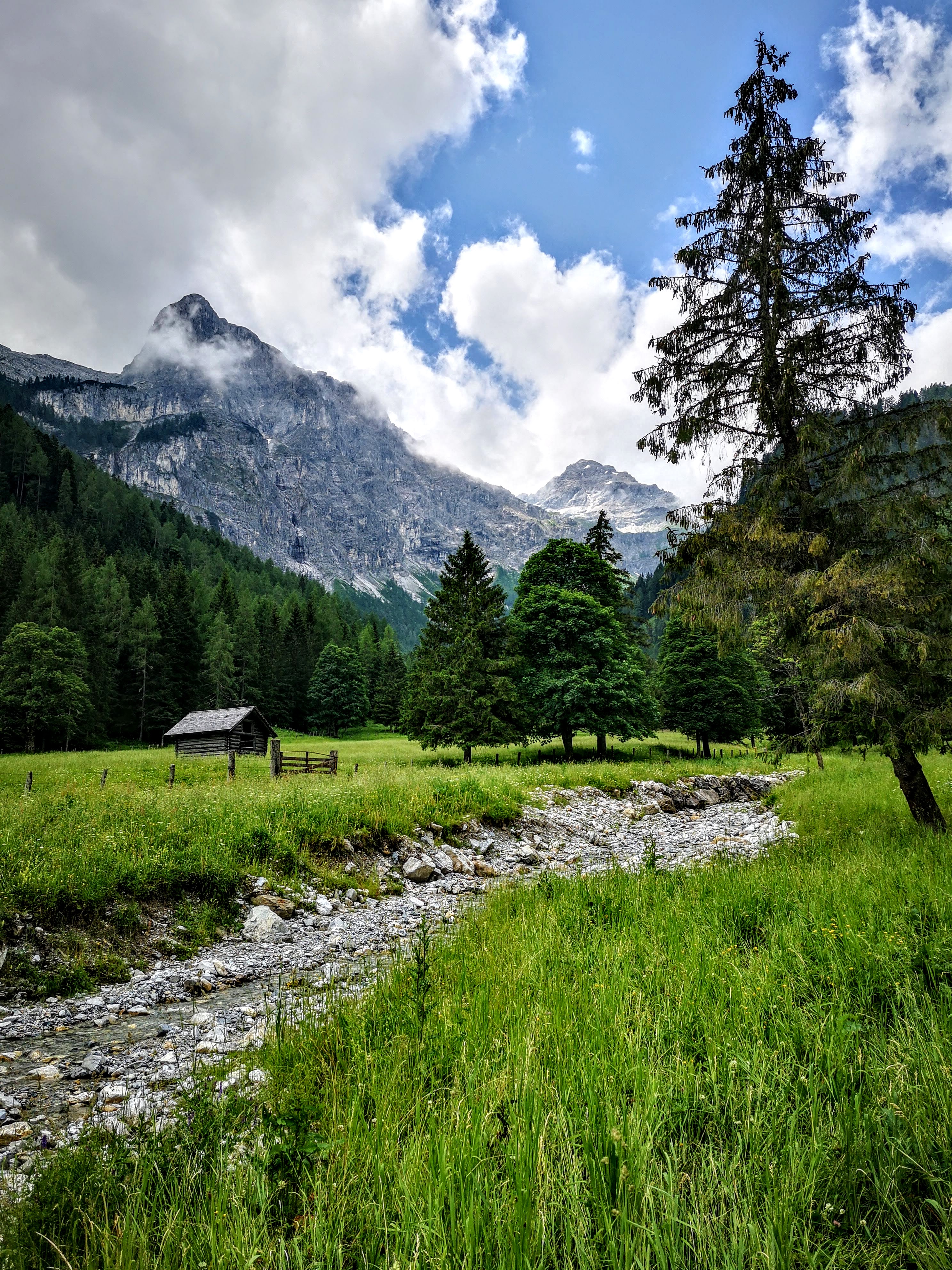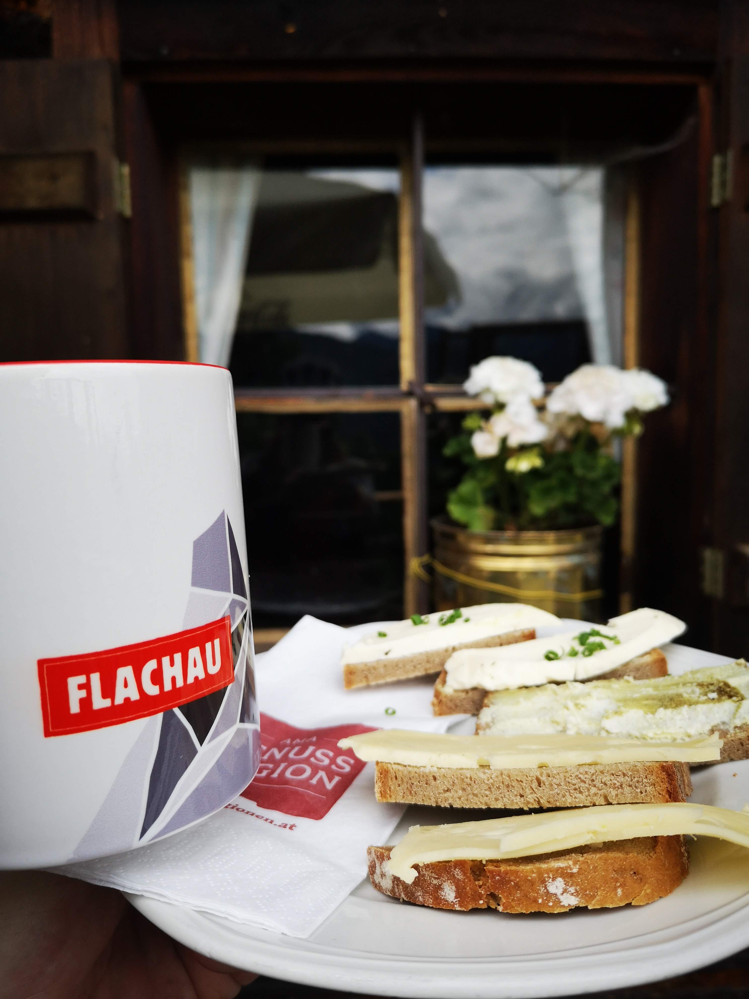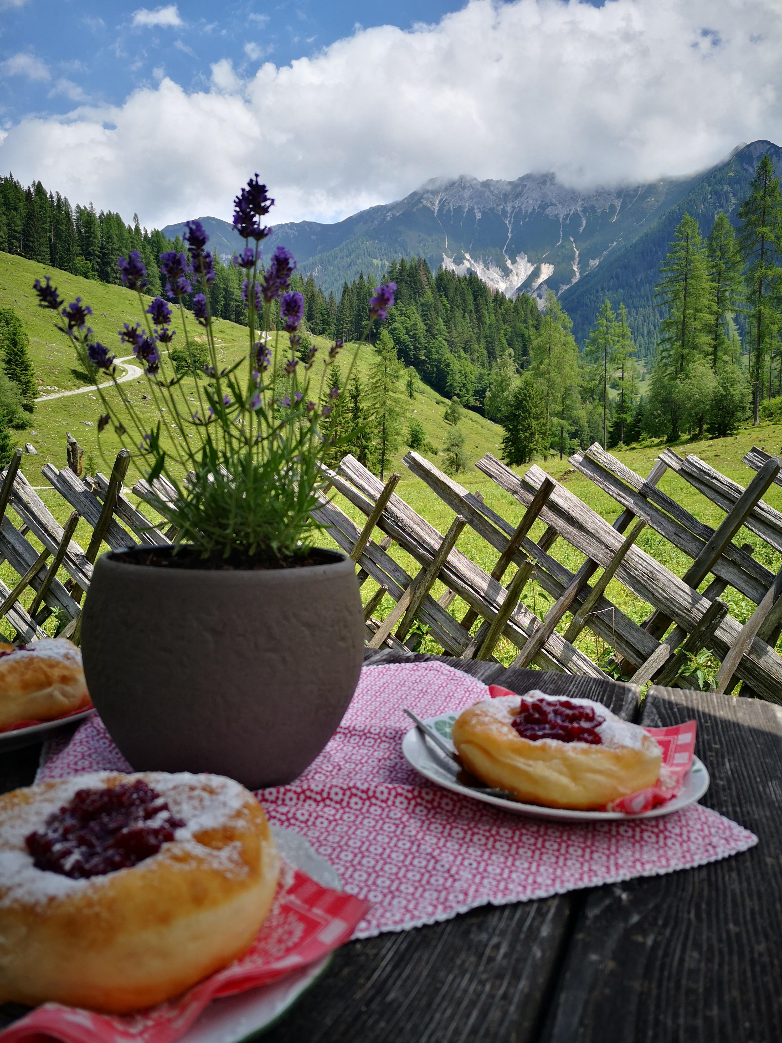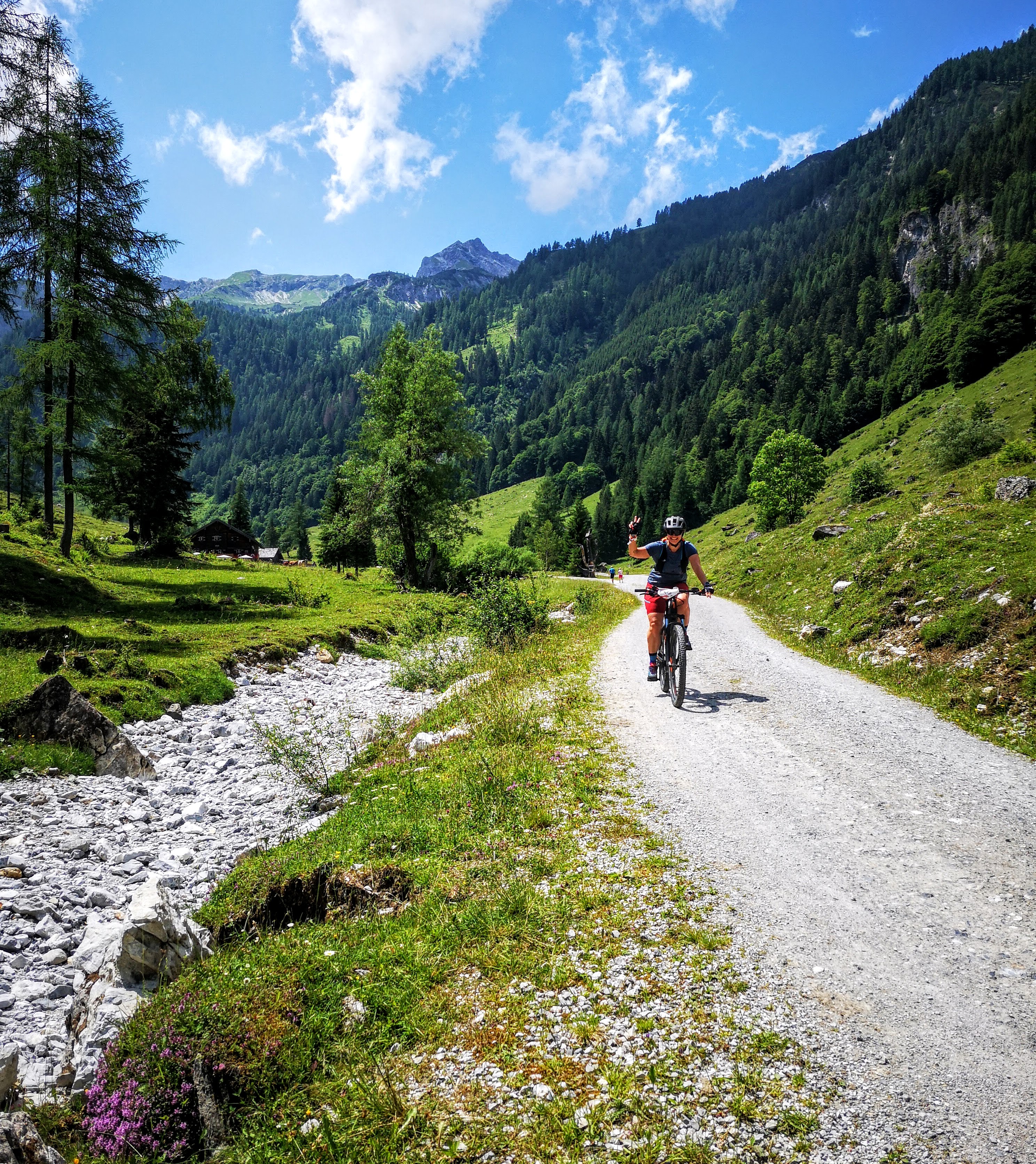 Eine einfache, wunderschöne Tour – quasi zum einfahren: von Flachau aus radelt man ohne große Höhenmeter entlang der Enns (Ennsradweg) über Wiesen und Wälder, vorbei am Badesee und durch den Flachauwinkel bis zum PP Marbachtal. In den Talschluss führt ein geschotterter Forstweg entlang des Marbachs und durch den Marbachgraben – stetig bergauf. Am Almboden angelangt, schiebt sich sofort ein markanter VIB (very important Berg) ins Blickfeld: das Flachauer Matterhorn aka Faulkogel 2654m. Er zählt zu den höchsten in den niederen Tauern! Bis zur hinteren Ennslehenalm gelangt man, danach ist das Ende der Bikestrecke erreicht. Entweder man kehrt dort ein oder unterhalb bei der Prechtlhütte. Dort gibt’s übrigens hervorragende, frische Bauernkrapfn mit Granten (Preiselbeer) – es muss nicht immer Kaiserschmarrn sein. Aber i kann enk beruhigen, am Tisch wurde auch da Schmarrn gekostet, am Nebentisch riesigen Kasbrot serviert. Am Retourweg unbedingt in der klaren, kalten Marbachquelle abkühlen (26.8km & 450hm)! Als Bike & Hike würde sich jetzt für mich noch eine Bergtour aufs Benzegg 2076m anbieten (vorgemerkt für den nächsten Besuch)! Diese leichte Tour ist natürlich am Bio-Bike genauso zu fahren, aber meine Knie haben die eBike Gönnung sehr genossen. Gefahren bin ich trotzdem nur auf der Eco Stufe und ja – selber treten muss man auch da…