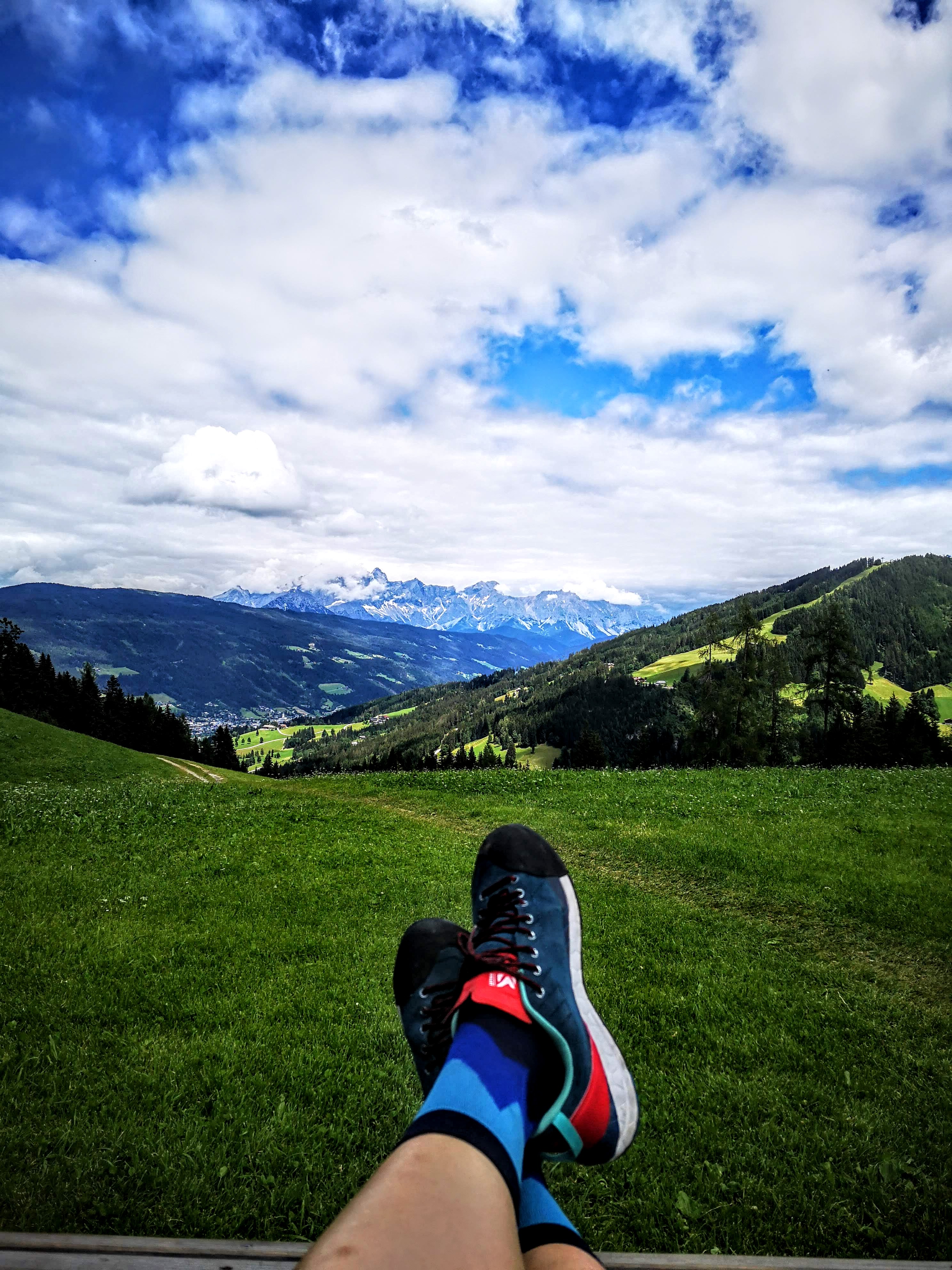 Beim eBike Festival der Renner und normal als Biketour markiert: diese Runde führt quasi fast einmal rund um Flachau und seine schönsten Logenplätze (Schloßalm 1500m – Schloss Höch – Winterbauer – Sattelbauer). Den Einkehrstopp beim Berggasthof Sattelbauer lege ich jeden ans Herzen – nicht nur eine Panorama-Holzhutsche zum Wadl entspannen mit Blick aufs Dachstein-Massiv, die riesen Buchtln sind legendär (und für einen alleine fast nicht essbar)! PS: Bienengarten anschauen & des super Honig-Schnapserl kosten (25,4km & 795hm)