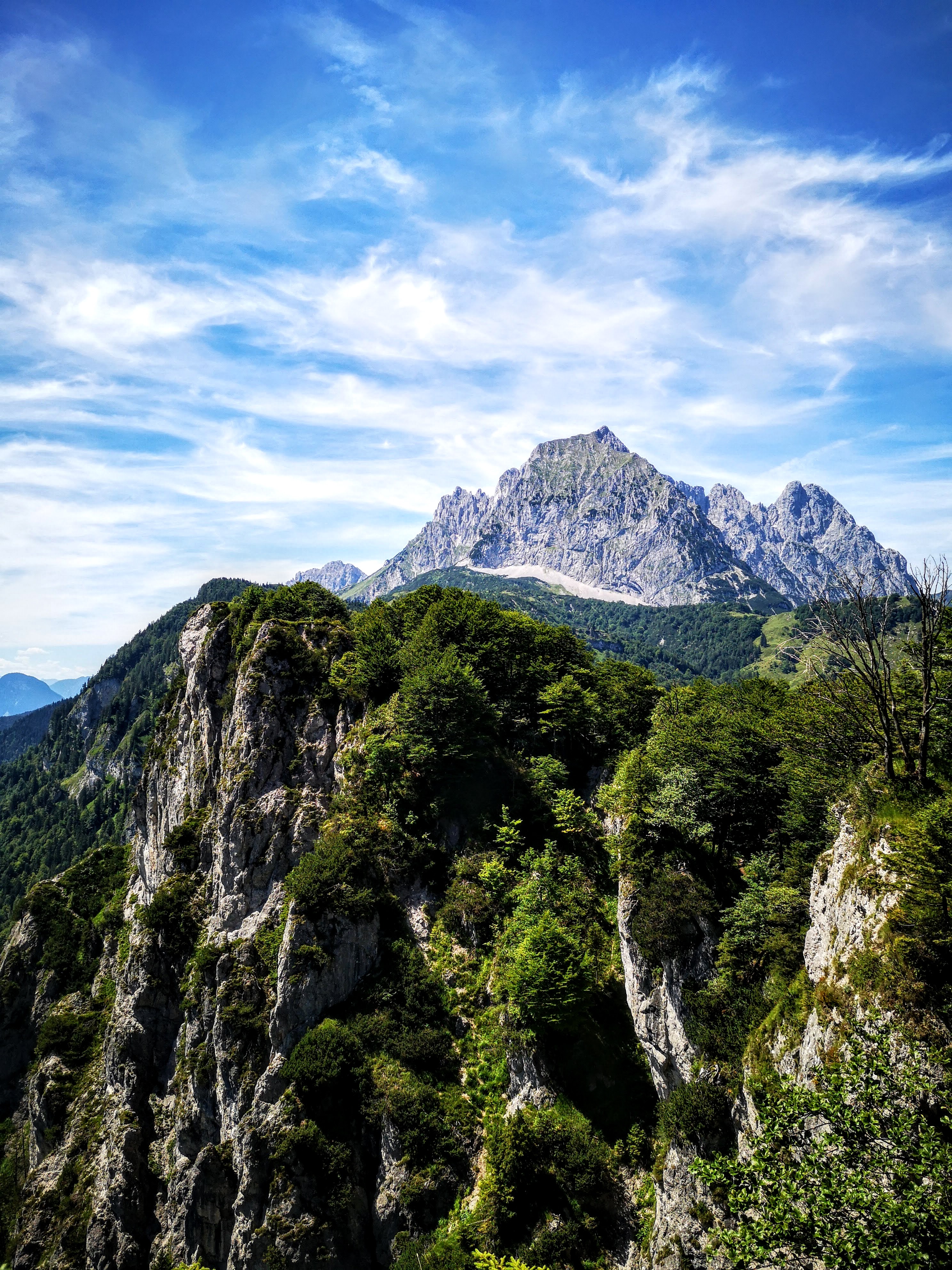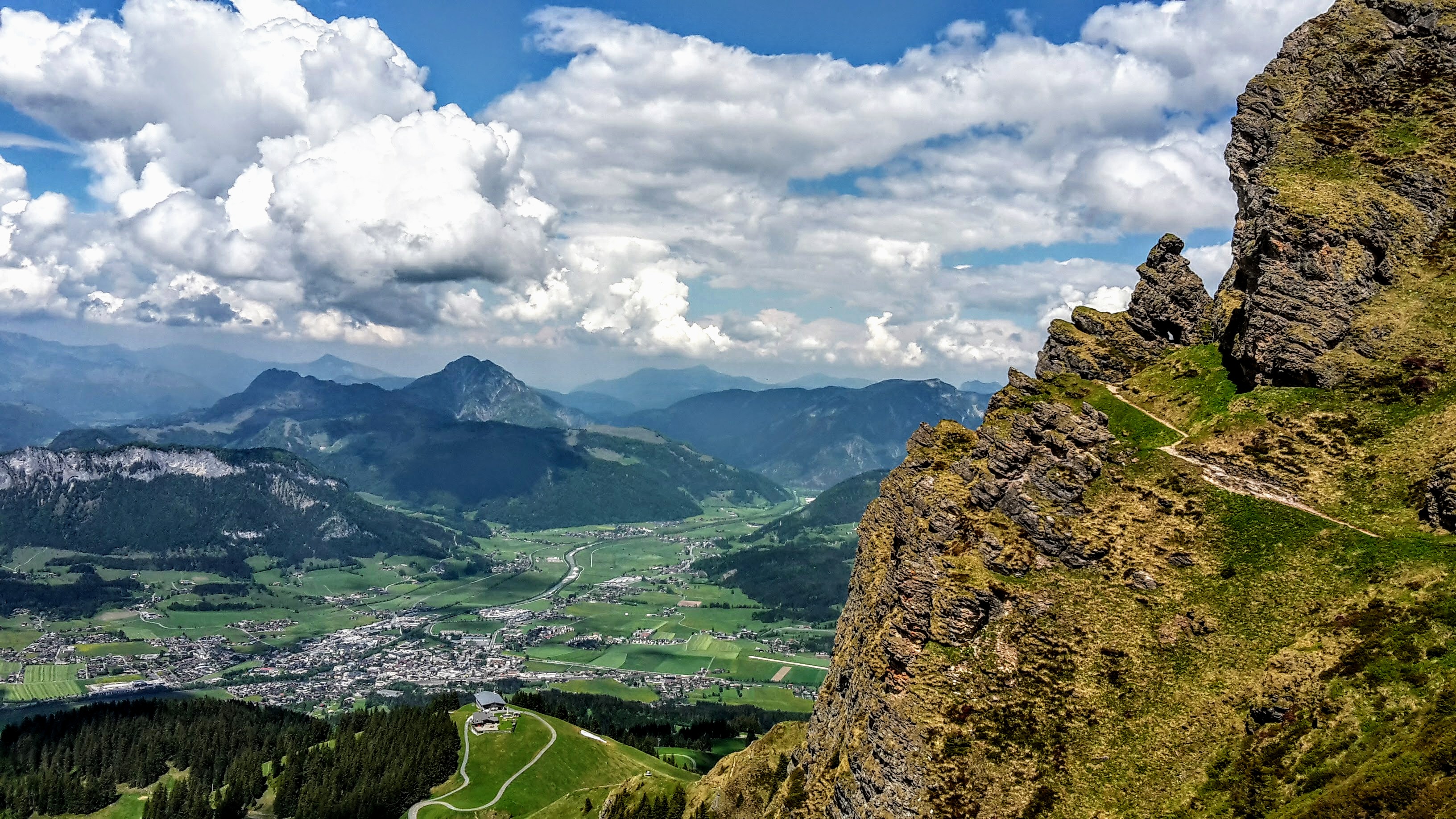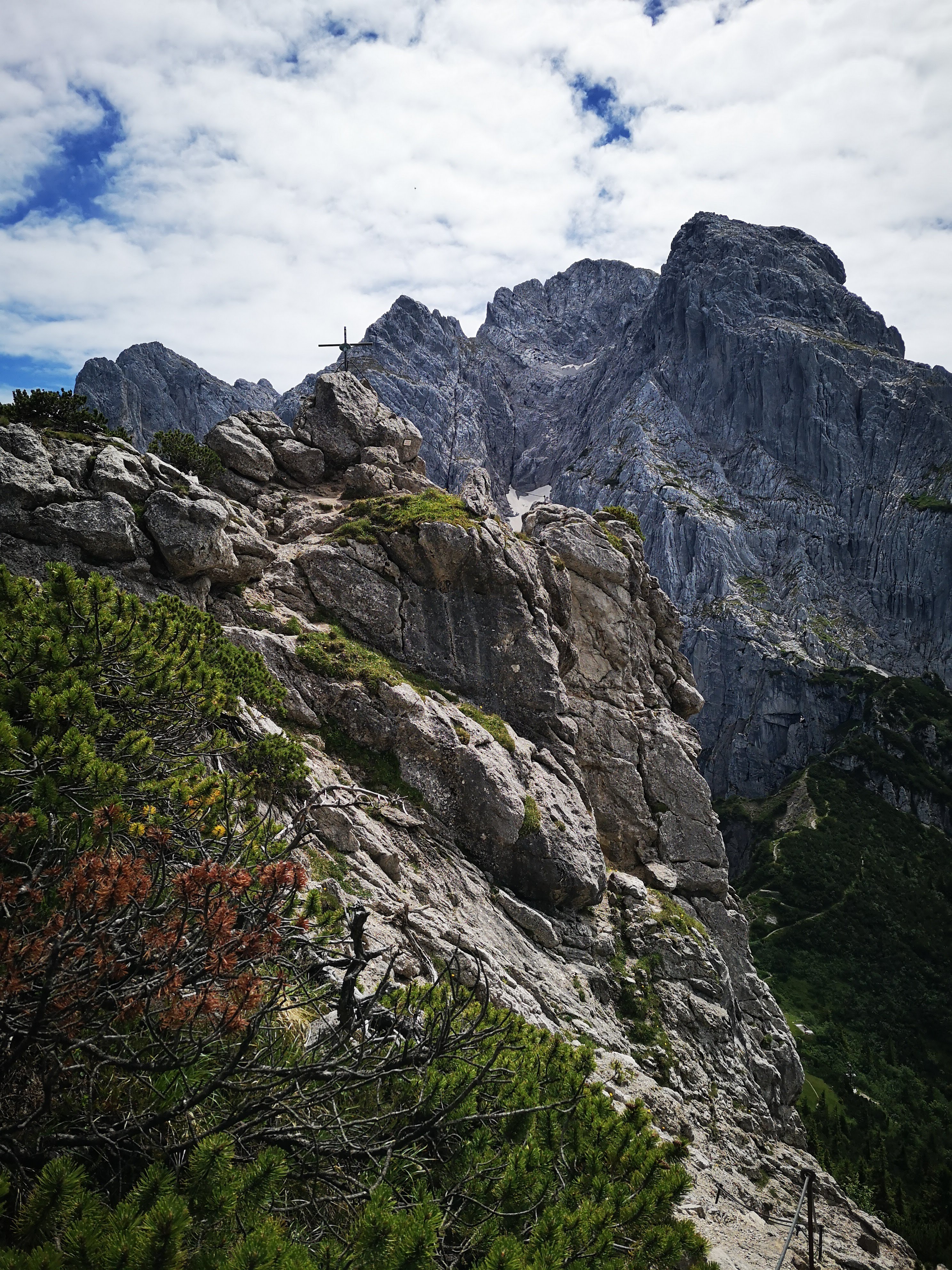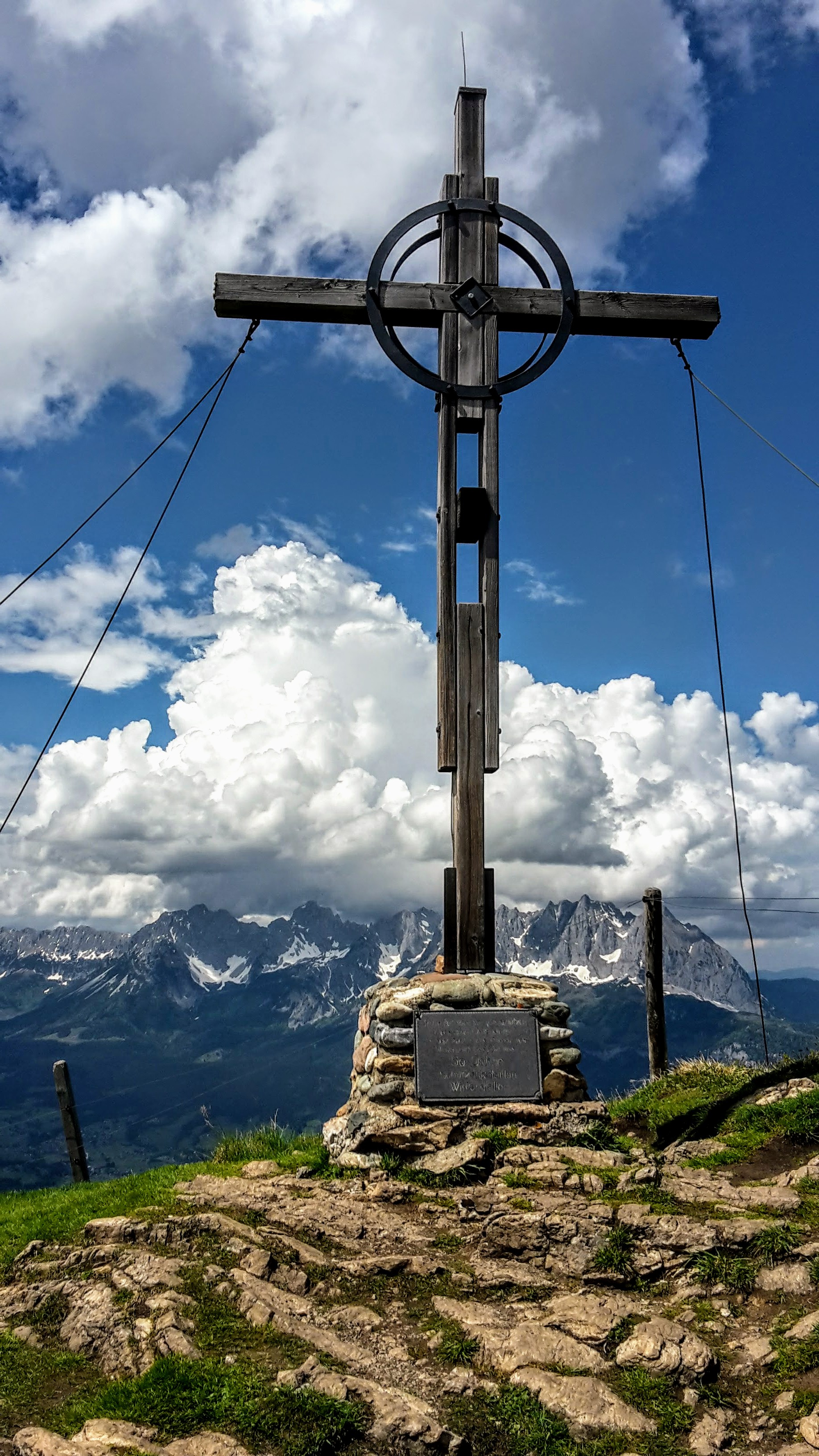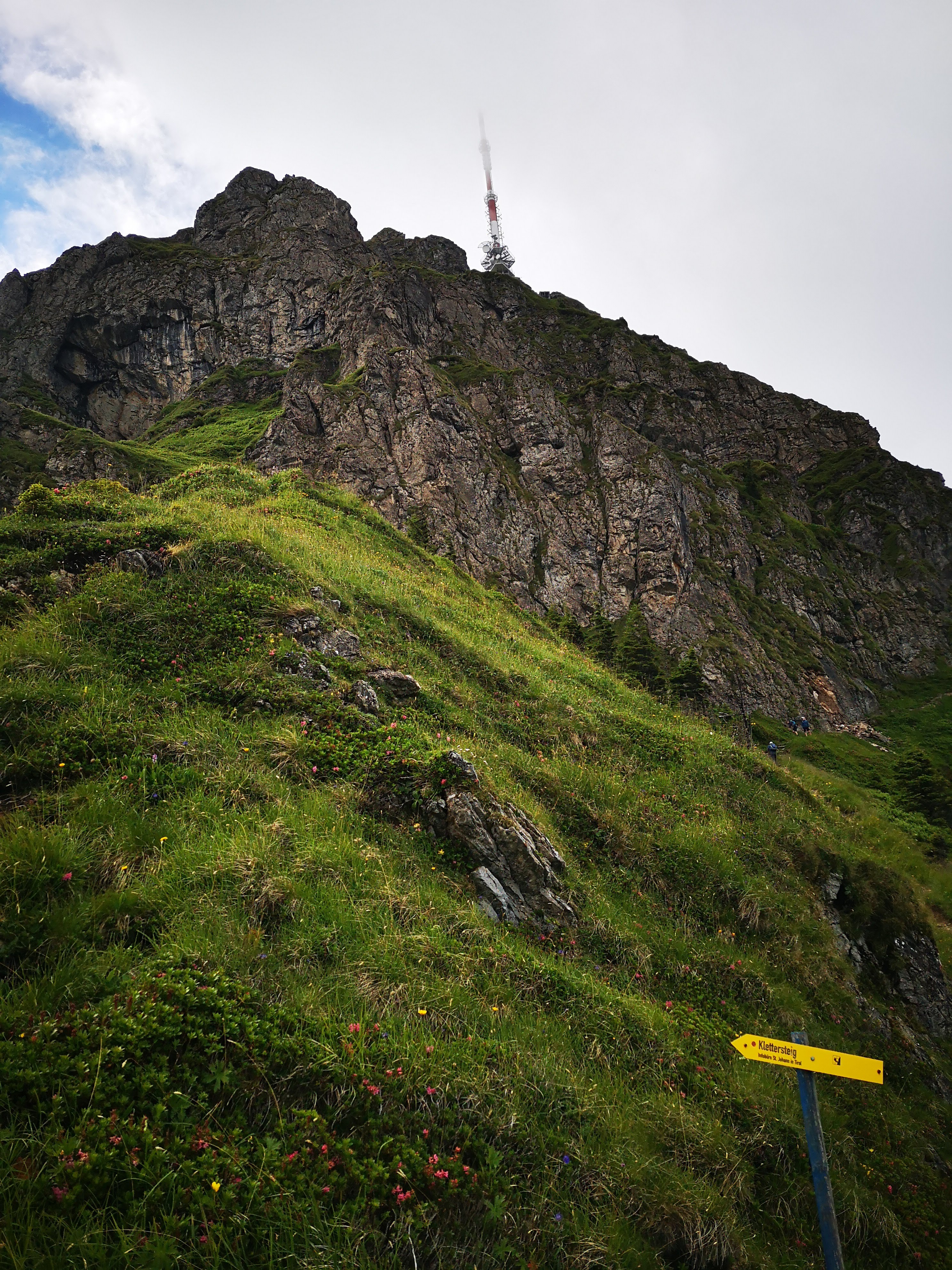 Knackig steiler & im oberen Teil seilversicherter Aufstieg (bis zum Einstieg 300hm auf 0,9km) zu einem besonderen Platzal über St. Johann, dem Ursulablick auf 1245m (bei Trittsicherheit & Schwindelfreiheit kein Klettersteigset nötig). Hitzeschlacht aber trotzdem super, weil die Überschreitung großteils im Schatten (Wald, bewaldeter Kamm) zu gehen ist. Details seilversicherter Aufstieg: es geht nur kurz steil bergauf, mit Trittklammern & 3 Leitern überwindet man die letzten Meter auf den Niederkaiserkamm schnell. Würde man oben nach links überschreiten, kommt man zum Schleierwasserfall. Nach rechts gehts zum Ursulablick. Nach dem Gipfelkreuz geht es im auf & ab weiter über den Schatterberg 1274m und zT steil bergab zur Gmailkapelle, diese wurde 1782 halb in den Fels gebaut – der Name stammt von dem Wort Gemälde und hat nix mit mailen zu tun. Ein Ort der Stille, im Sturm der Zeit – genau das ist sie. Über die alte Einsiedlerei Maria Blut geht es dann unterhalb des Niederkaisers über Almwiesen retour.