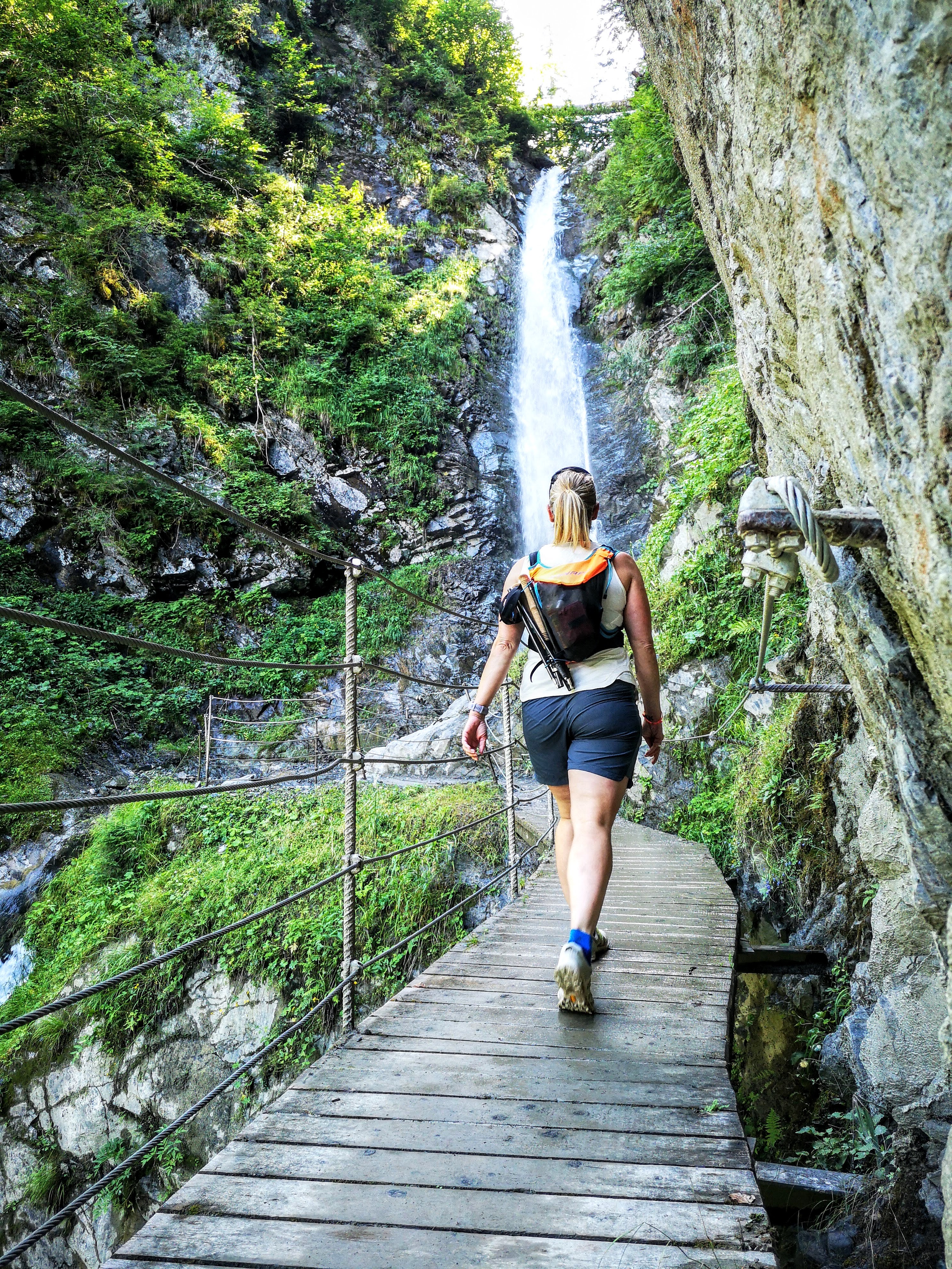 Perfekt für heisse Tage – bei dieser schönen, einfachen kleinen Runde zum eindrucksvollen Wasserfall auf gut 900m, der 25m in die Tiefe stürzt, verläuft der Anstieg großteils schattig im Wald, tlws neben dem Eifersbach. Im weiteren Verlauf warten 96 steile Holzstufen, bevor es weiter ri See geht. Vom Hornblicksee, der auf ca. 950m liegt (Nomen est Omen, leider Baden verboten weil Speicherteich), gehts dann sonnig auf einer Schotterstrasse via Granderschupf retour zum Ausgangspunkt. Die Runde kann verlängert werden (Dechantalm, Pointenhof), allerdings kommt man dann direkt im OT Almdorf retour.