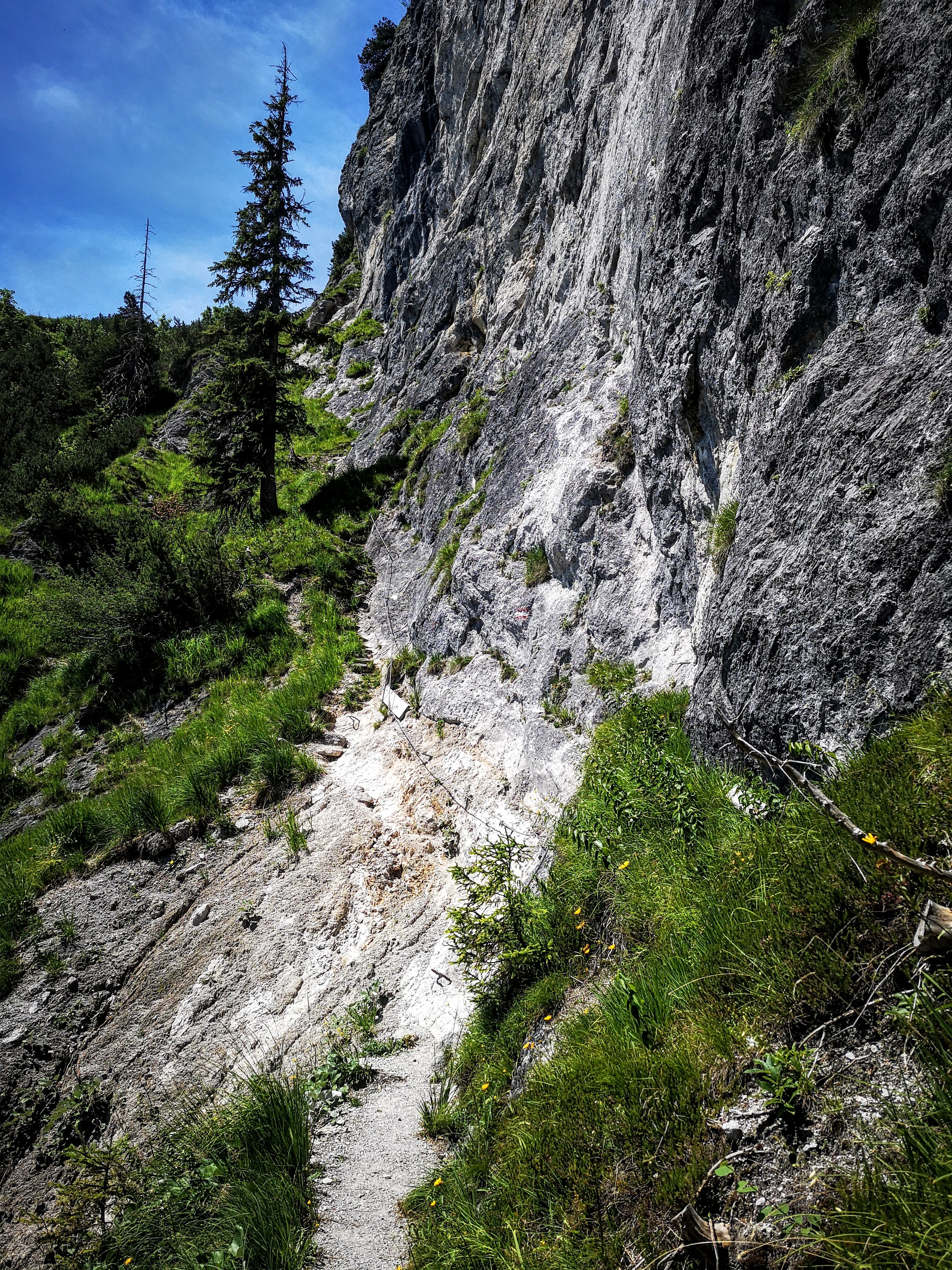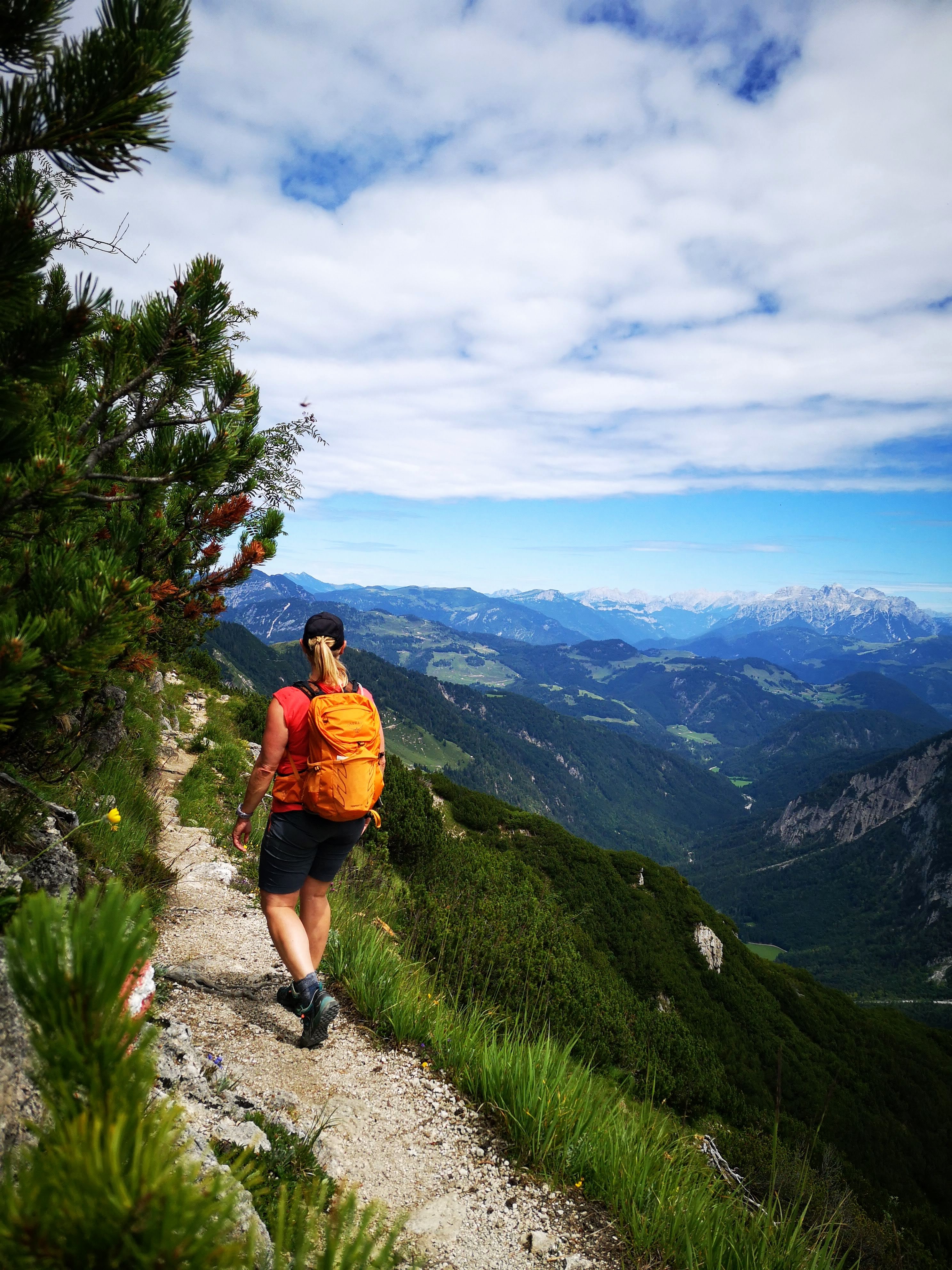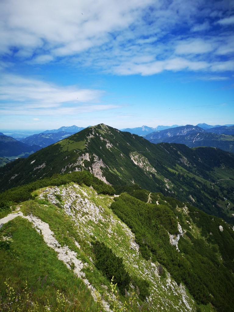 Mittig im Bild sieht ma übrigens den steilen Steig, der direkt zur hint. Ranggenalm führt. Nie mehr wieder im Abstieg, des hab i mir geschworen. Des 1/4 oben koa Gaudi weil wild steil, ausgesetzt, viel loses Gestein und keine Versicherung. Kann man aber umgehen, indem man vom Gipfelkreuz am Grat entlang zur vorderen Ranggenalm absteigt – is nur a bissi weiter. Generell würde ich die Runde nur mehr gegen den Uhrzeigersinn gehen und vom Stripsenjoch zur Griesneralm absteigen.