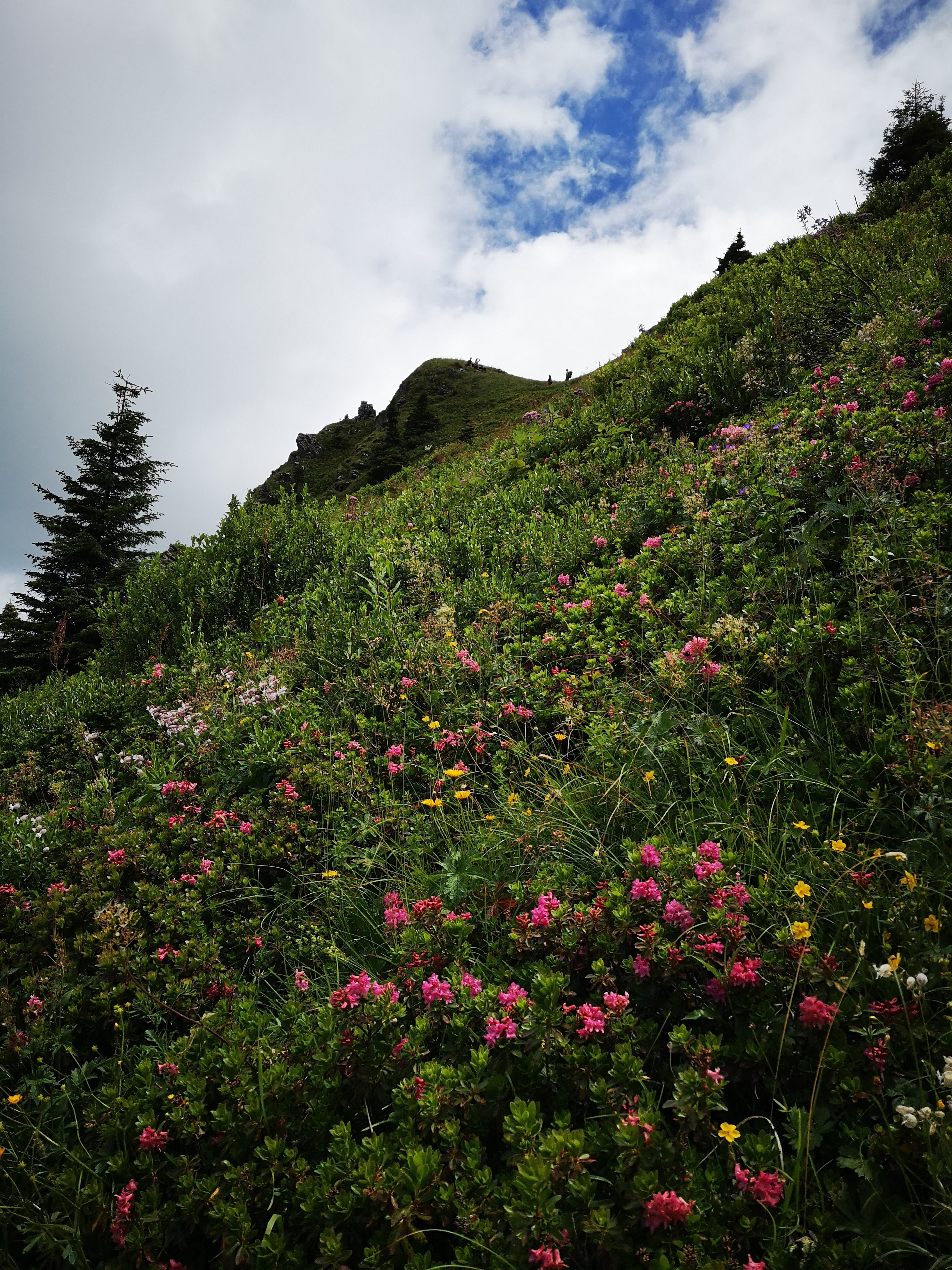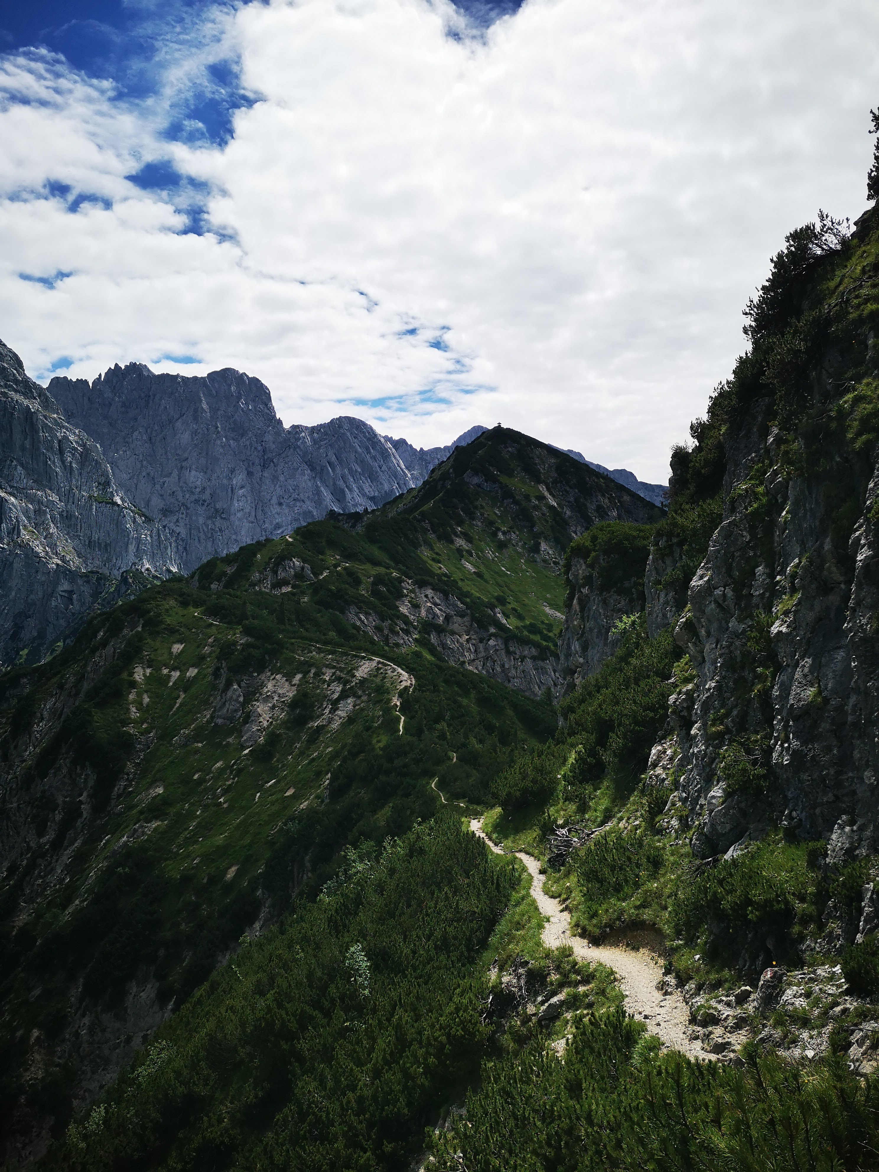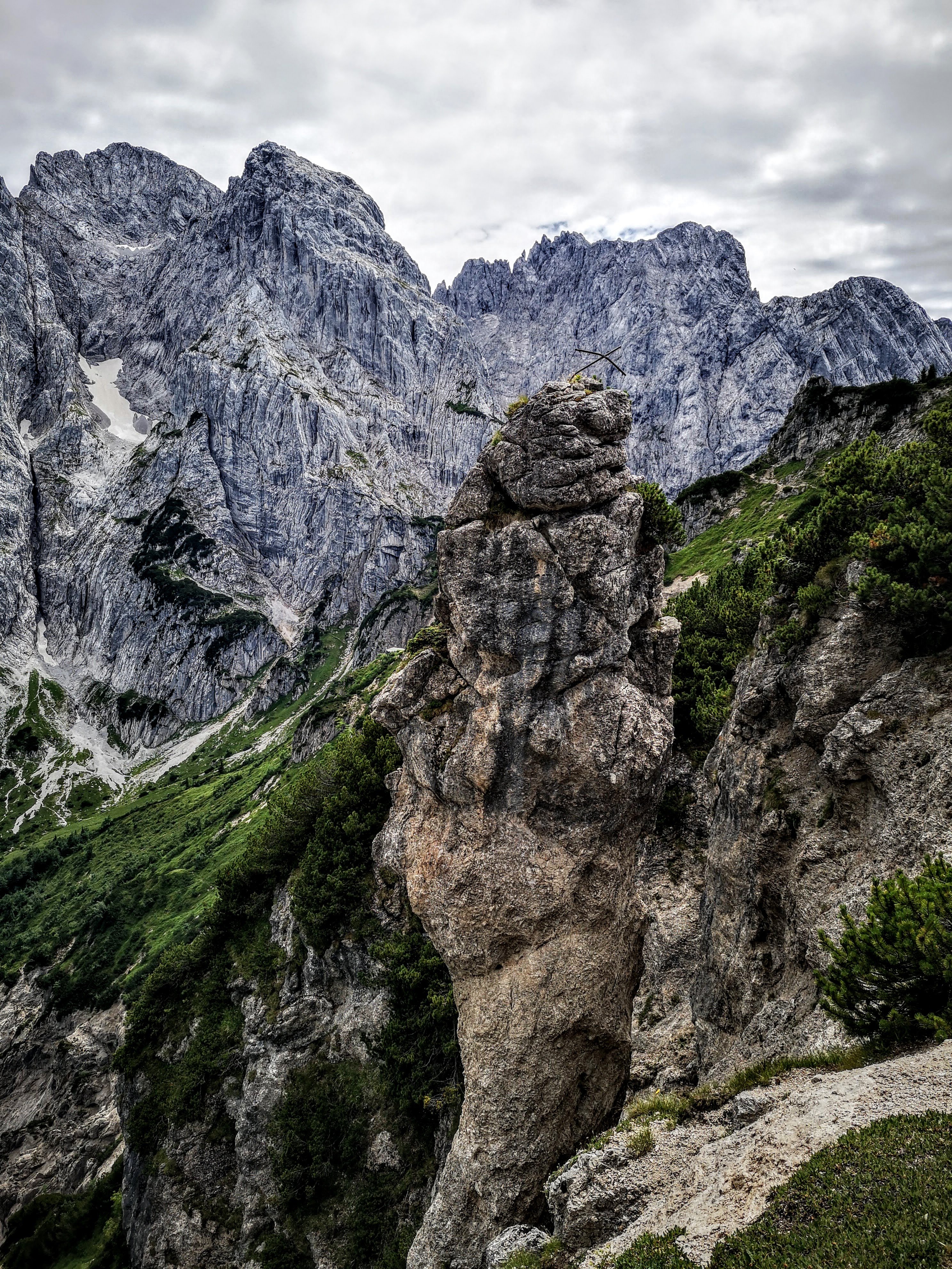 Mittig im Bild sieht ma übrigens den steilen Steig, der direkt zur hint. Ranggenalm führt. Nie mehr wieder im Abstieg, des hab i mir geschworen. Des 1/4 oben koa Gaudi weil wild steil, ausgesetzt, viel loses Gestein und keine Versicherung. Kann man aber umgehen, indem man vom Gipfelkreuz am Grat entlang zur vorderen Ranggenalm absteigt – is nur a bissi weiter. Generell würde ich die Runde nur mehr gegen den Uhrzeigersinn gehen und vom Stripsenjoch zur Griesneralm absteigen.