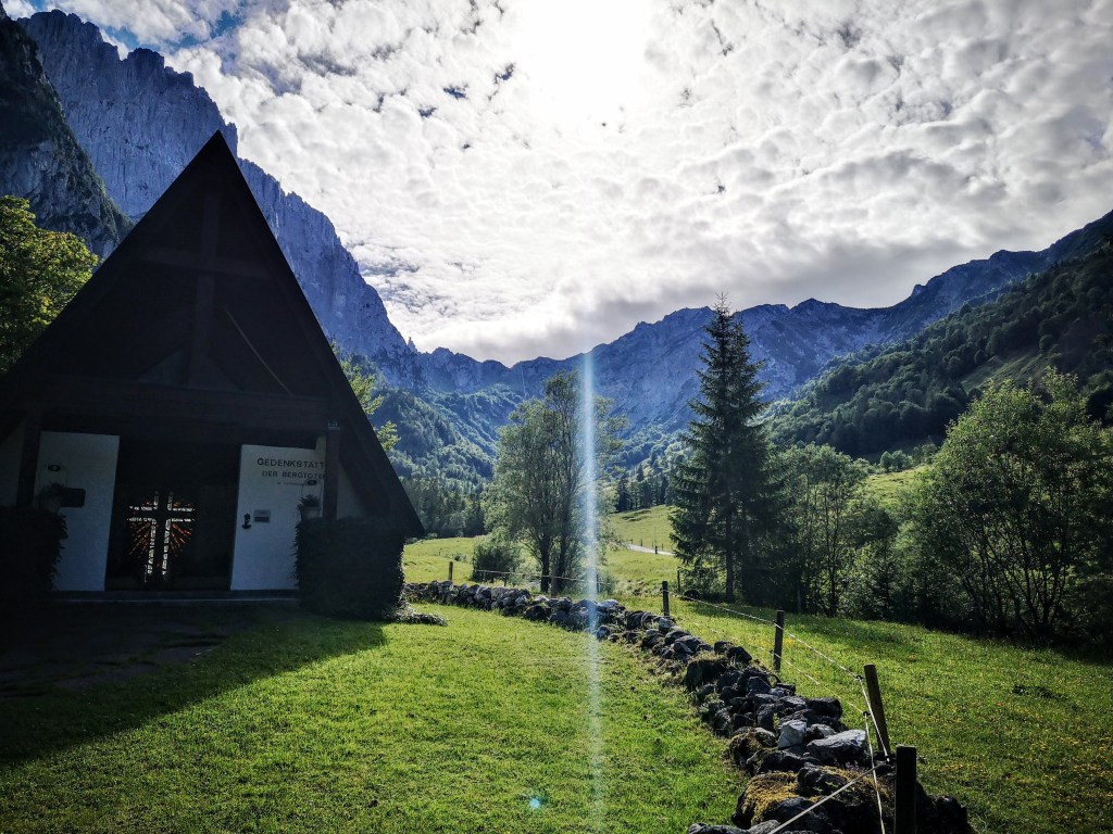Bei der Gedenkkapelle der Bergtoten im Kaiserbachtal nähe Fischbachalm danach nu Donkschee gsogt, auf dass wir immer wieda guad hoam ins Tal kemman. Leider war die Schau-Latschenbrennerei schon geschlossen, aber eine kleine Flasche Kaiseradler (Tiroler Hochgebirgs-Latschenkiefer-Franzbranntwein) wartet zum Glück im Hotelzimmer auf mich… lieben Dank, Anna-Maria!