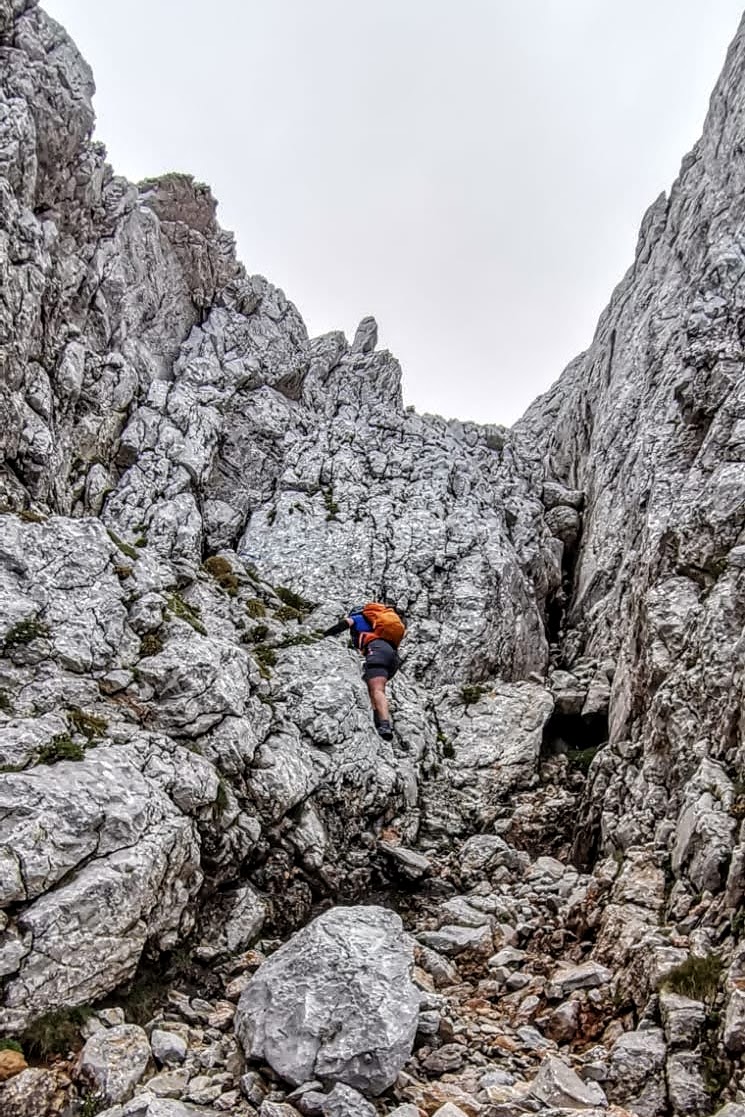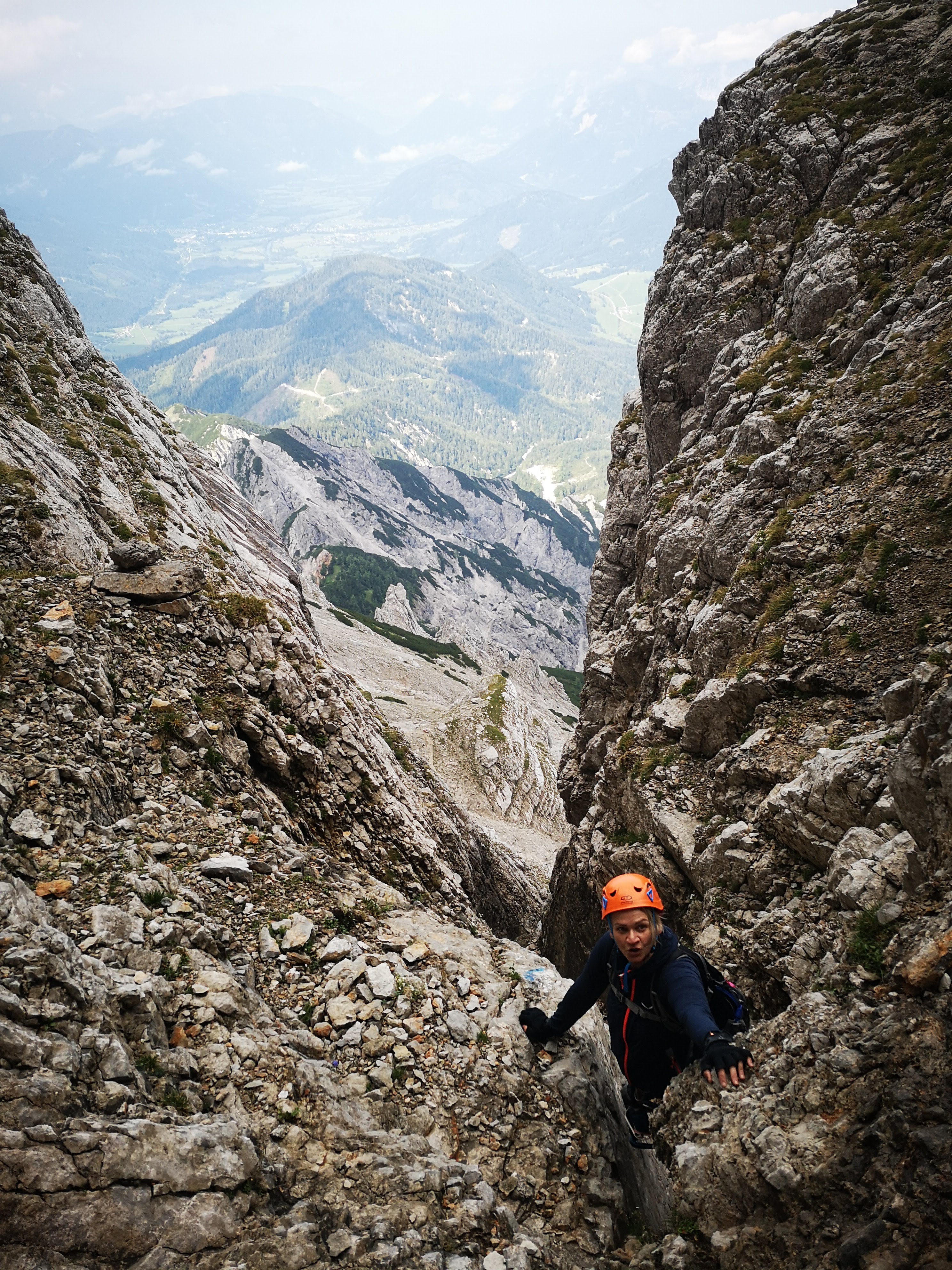 Wg der Nässe vom Vortag gab es im Kamin 2 (für mich) fordernde Stellen – 0 passende Option, sich dort irgendwie zu versichern. Aber: i hab halt oafach 2-3mal angesetzt, in Ruhe probiert und dann a Möglichkeit gefundn. Fia manche wahrscheinlich a Klacks, i bi dafia umso stolzer auf mi.