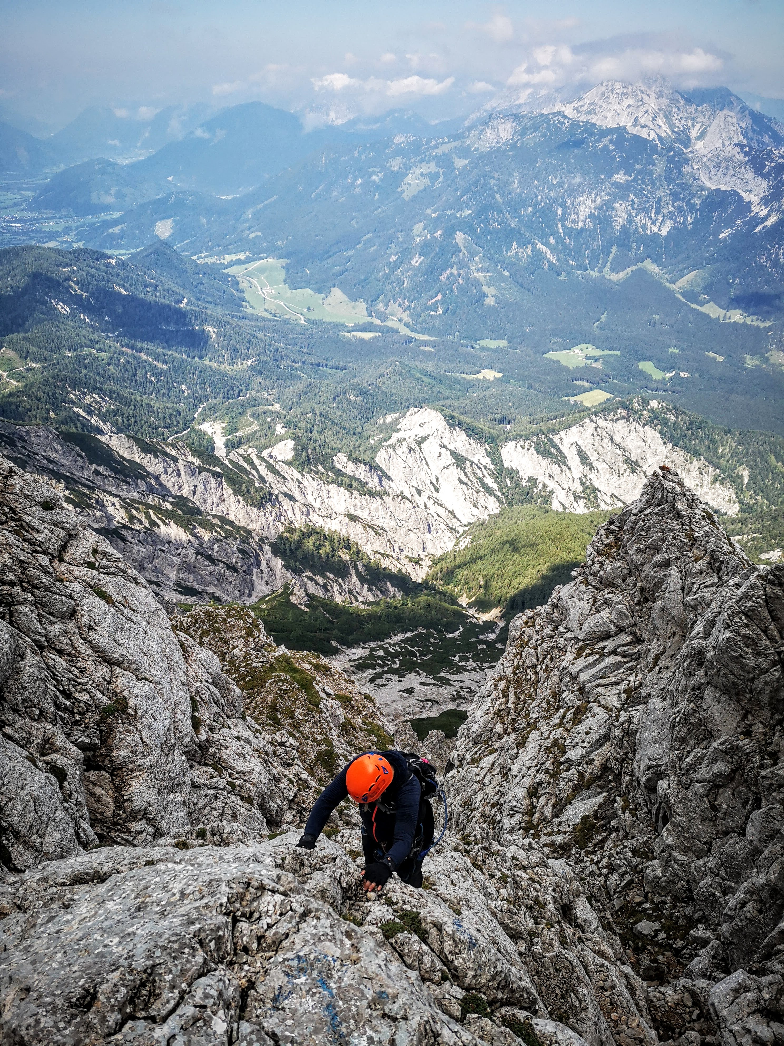 Tag 2: Gr. Buchstein via Wengerweg Kletterroute im II Grad (257hm ungesichert – keine Seile eingezogen, nur a Handvoll alte Trittbügel/Klemmen vorhanden – KEIN NOTAUSSTIEG), Abstieg via Südwandband Klettersteig (Kat. B, 450m lang) statt auf dem Normalweg (schwarz markiert) über die Westschlucht retour zum Buchsteinhaus.