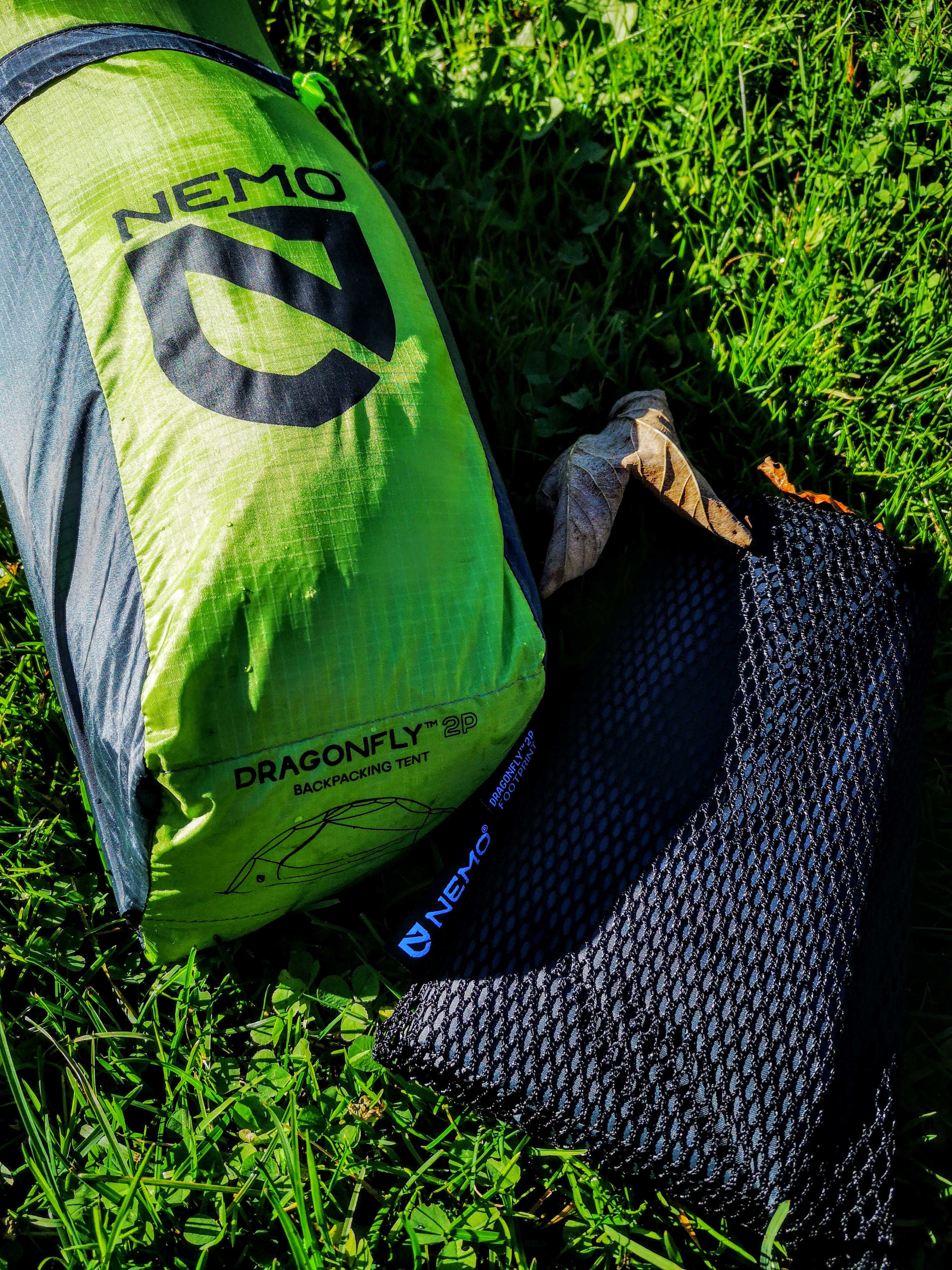 Das Dragonfly 2P Zelt – super leicht & mit kleinem Packmass (1.2kg / 50x20cm), würde auch in den Rucksack passen und bietet genug Platz für 2! Der Aufbau funktioniert dank farbcodierten Stangen & Schlaufen wirklich einfach und schnell.