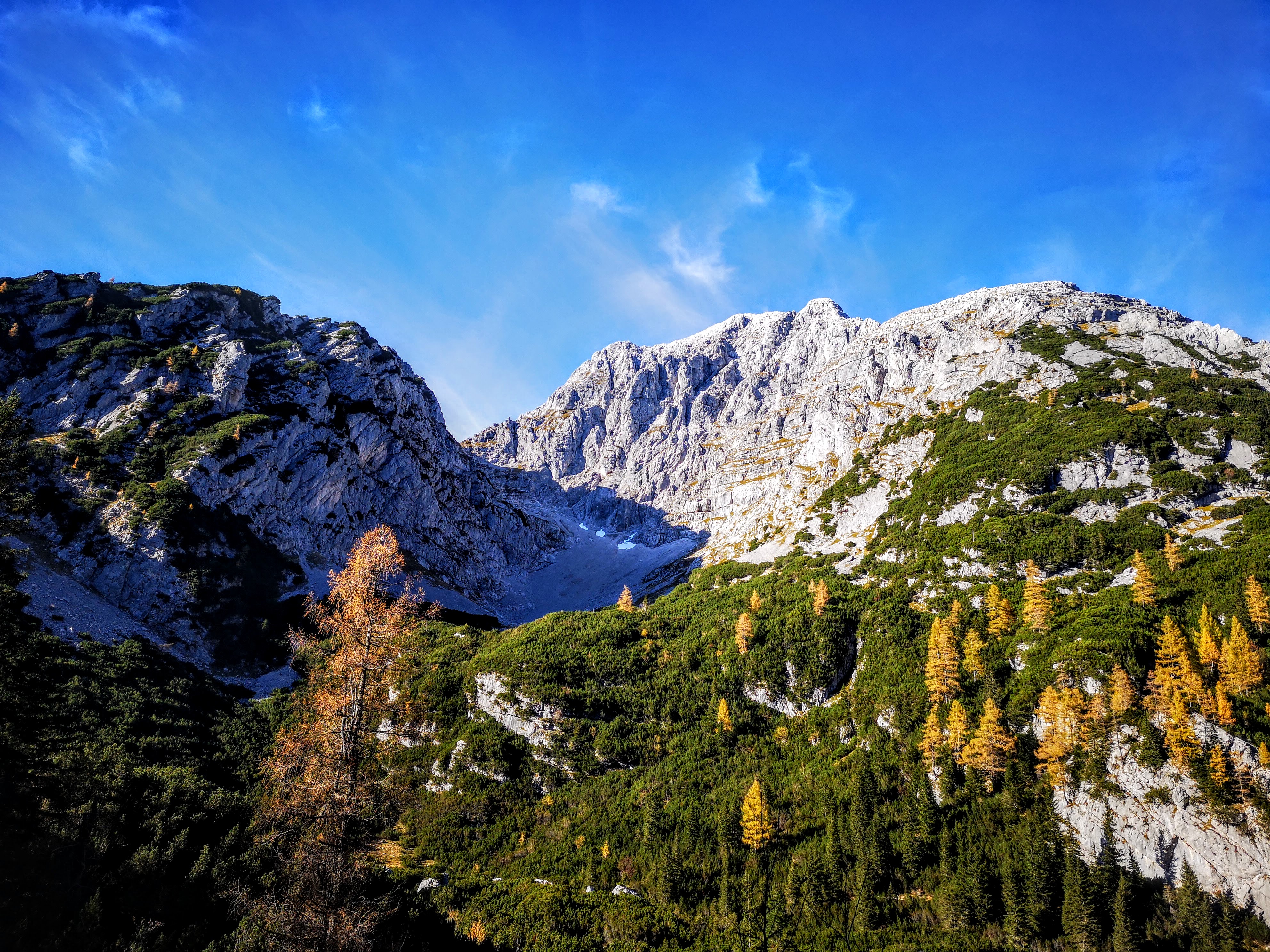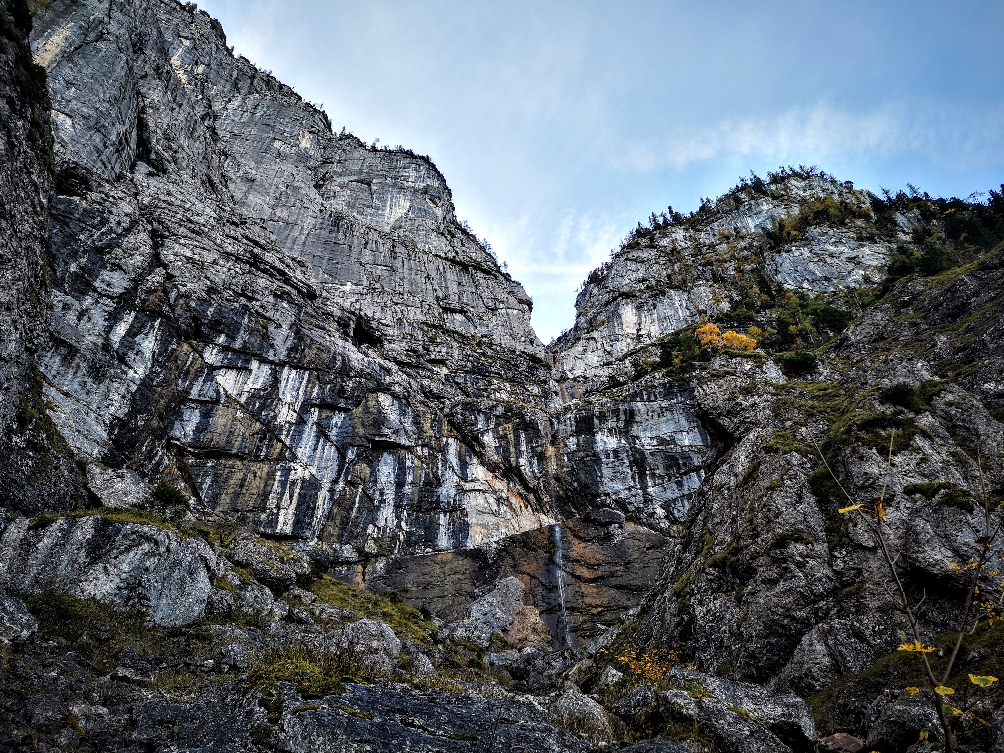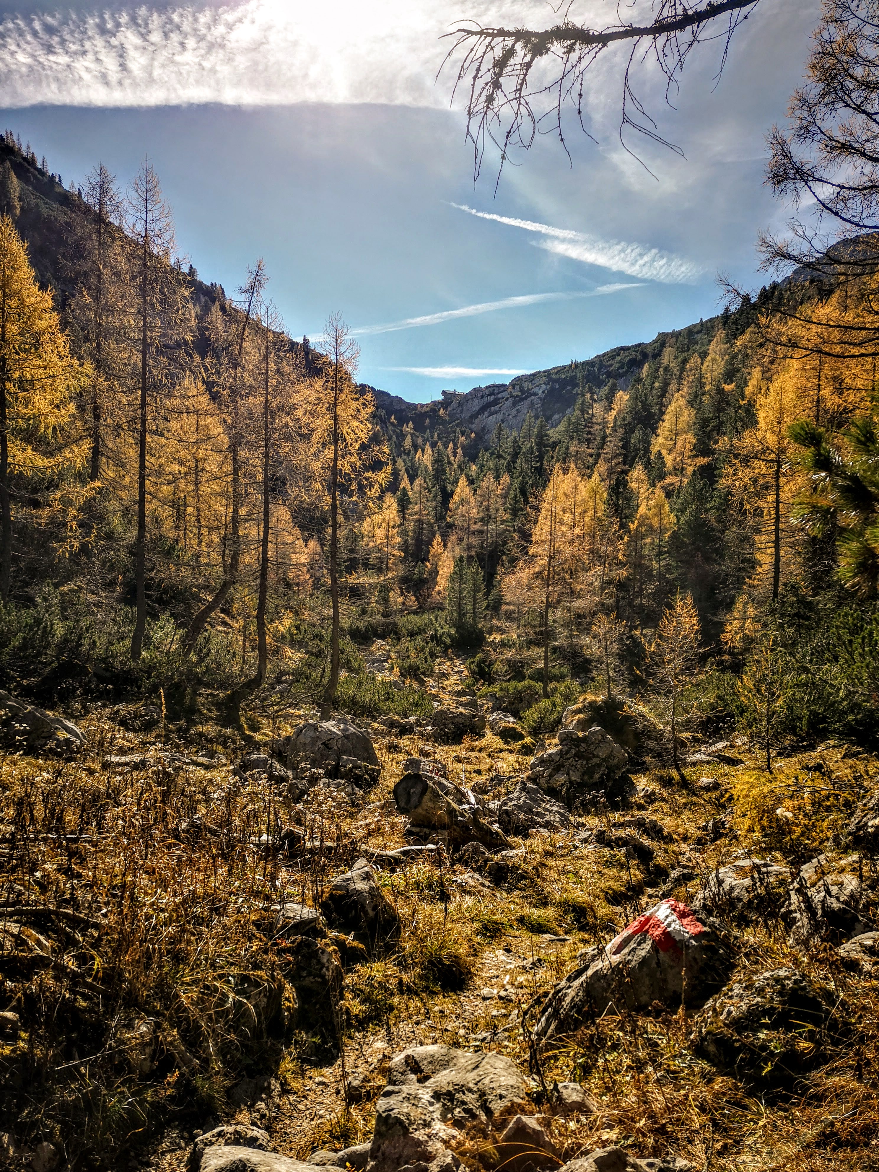 Eigentlich wollte ich ja via Haindlkar & Peternpfad zur Hesshütte aufsteigen. Da aber Mitte Oktober kaum mehr Sonne ins Kar kommt (zwei Einheimische haben abgeraten, ein anderer meinte geht scho nu), wars mir dann alleine einfach für die Herbst-Bedingungen zu heikel. Also Plan B – mit dem Wasserfallweg, einen 111 Jahre alten Steig, nicht minder schön und genauso steil. Und weitere Hochtor-Varianten hab ich dank ausführlicher Planungen so auch schon auf der Liste…