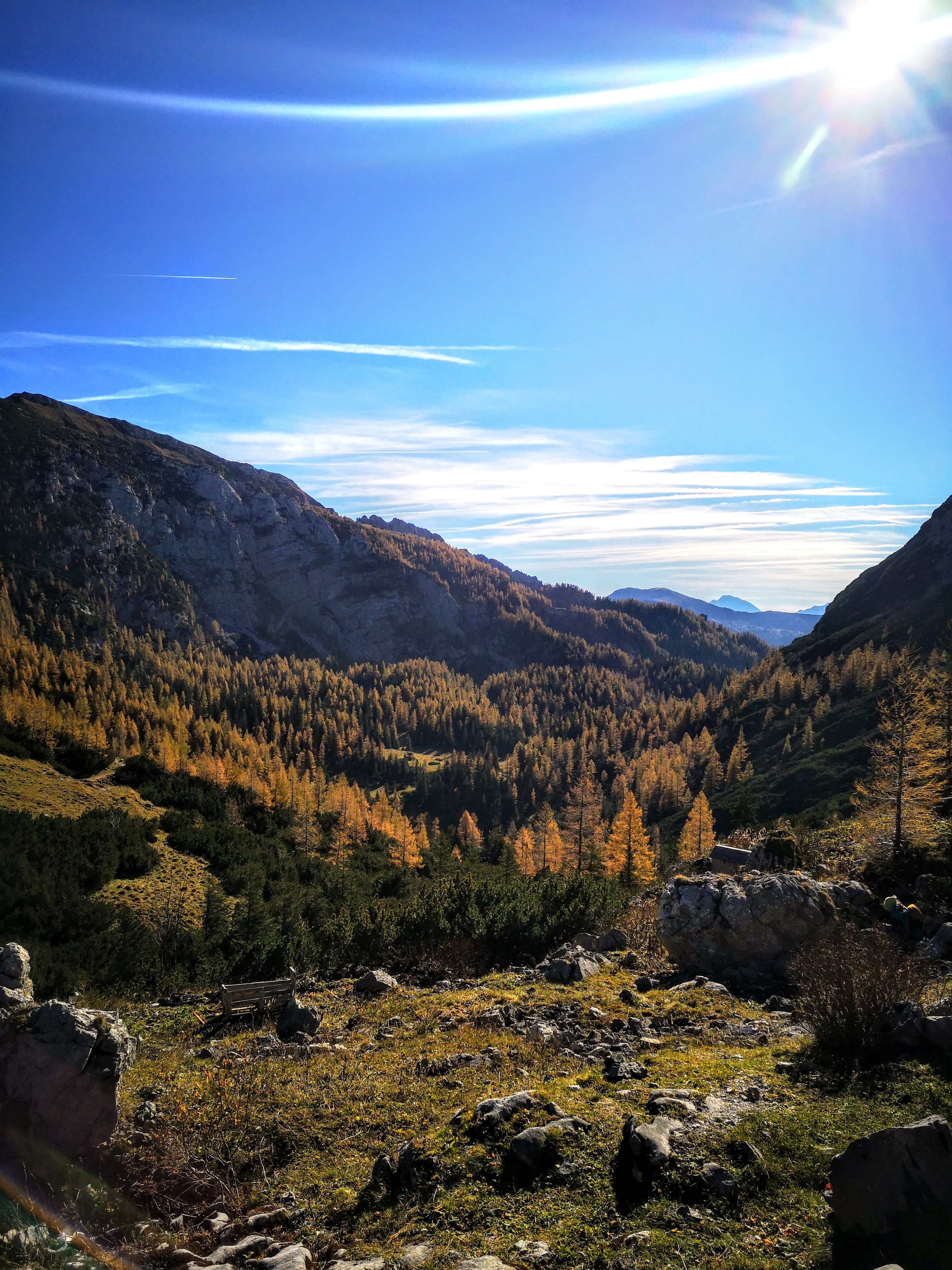 Start: direkt vom Zelt am Campingplatz Forstgarten – Halswiesn – Erlboden -Kummerbrücke – Wasserfallweg (schwarz markierter Steig, steil, ausgesetzt & tlws versichert) – Planspitze 2114 (Gipfeloption) – Hesshütte 1691 (Einkehrtipp, war bis 26.10 geöffnet – aktuell bereits in der Winterpause).