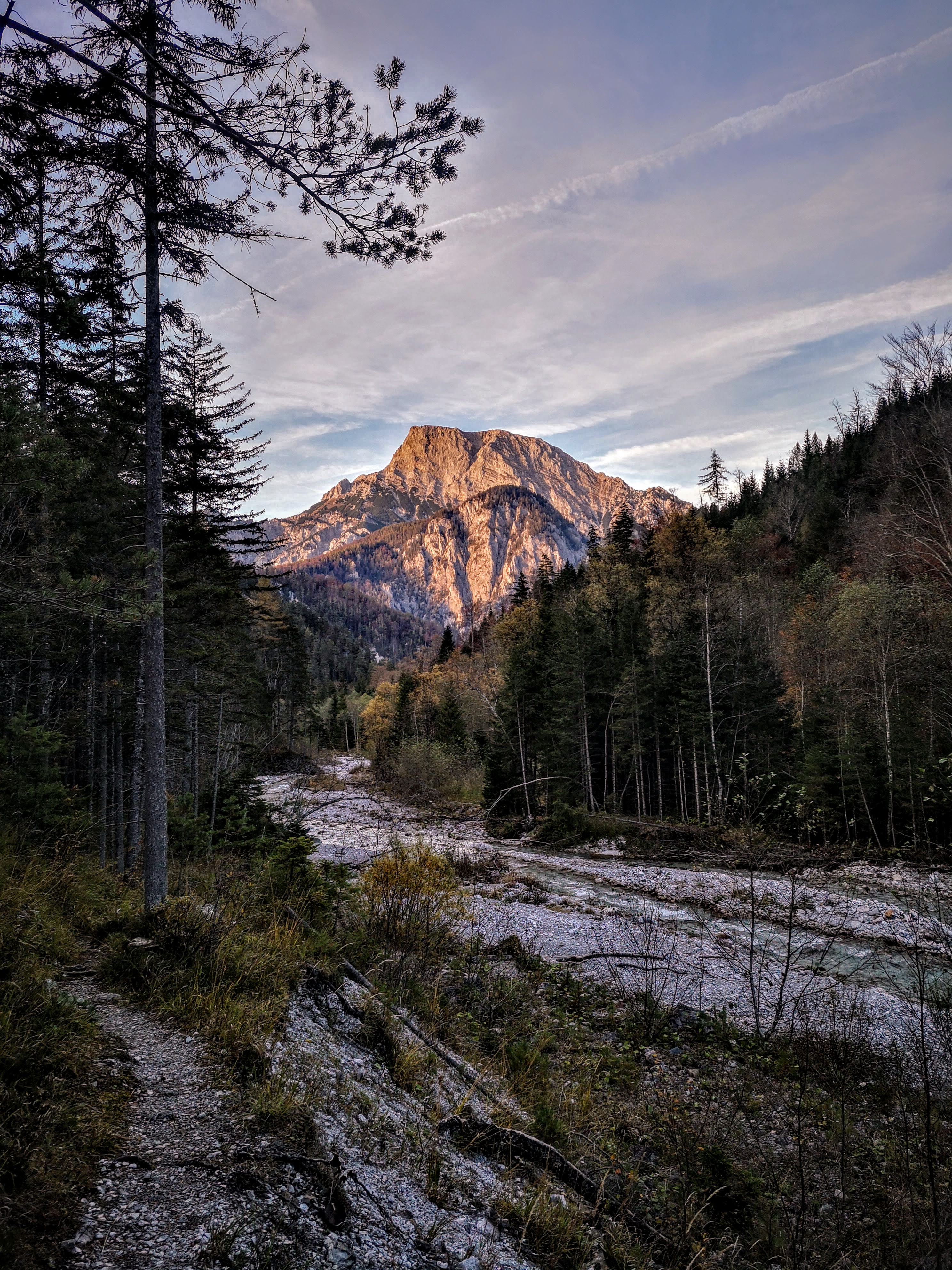 Ja, der Rückweg vom Kölblwirt durch das Johnsbachtal zu Fuß ist weit. Aber ehrlich. Und ja, es dauert lange. Hat aber auch seine schönen Momente. Den sich im Abendlicht einer Regenlacke spiegelnden Admonter Reichenstein, den illuminierten Buchstein, schroffe Felsnadeln und verwunschene Waldwege entlang des rauschenden Johnsbach. Zum Weidendom dauert es gefühlt Stunden, auch wenn es nur 7km sind. Aber bei solchen Momenten hat es sich doch gelohnt, oder?