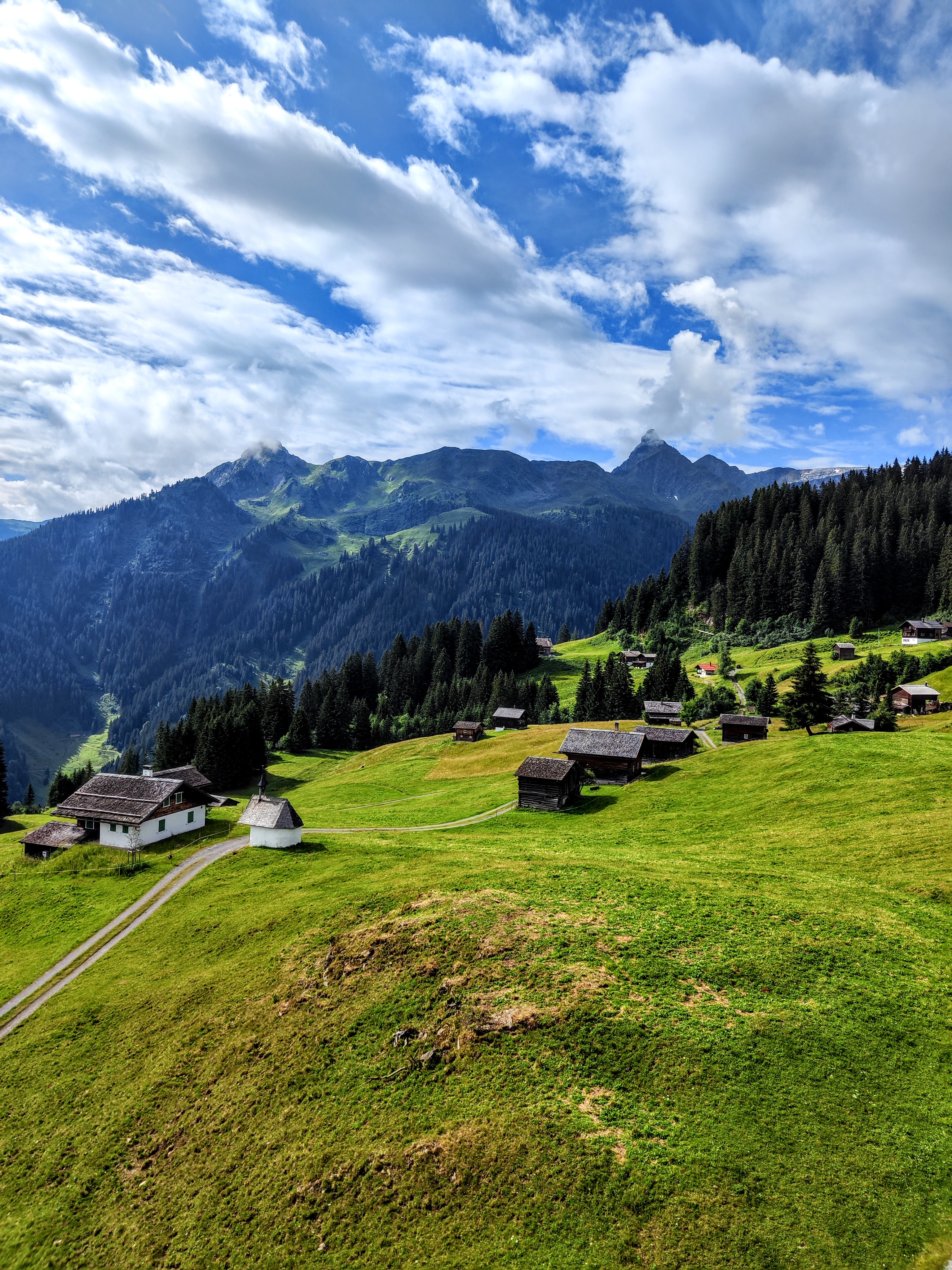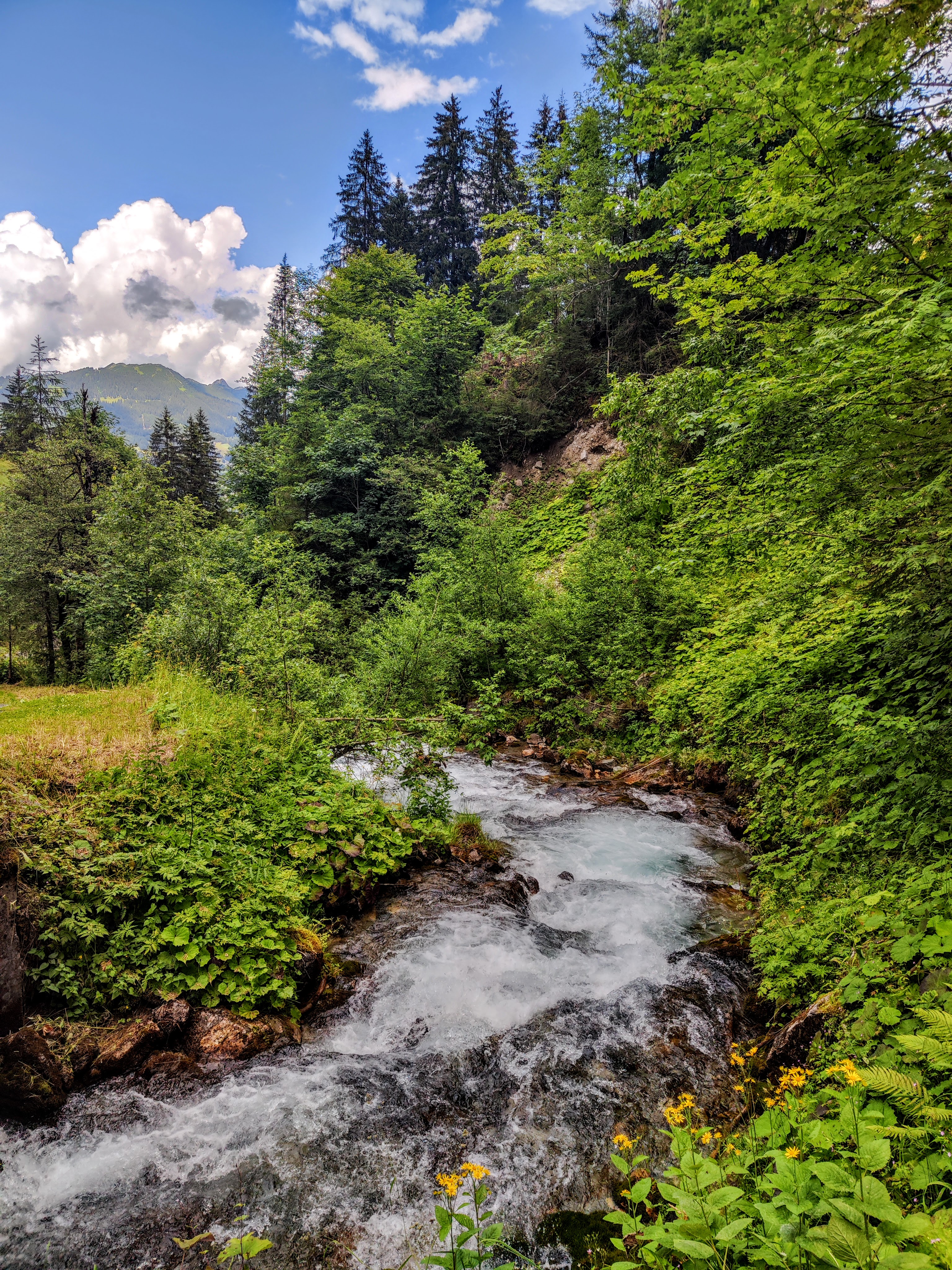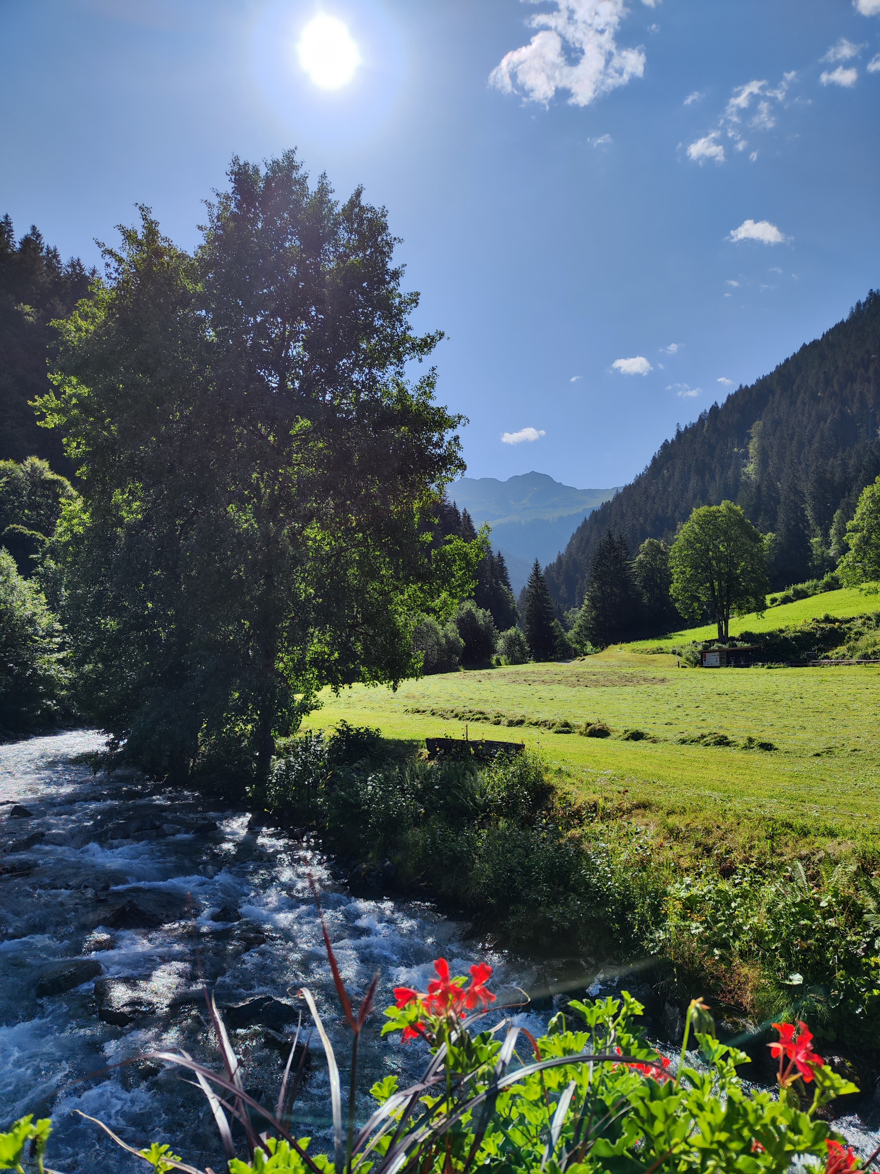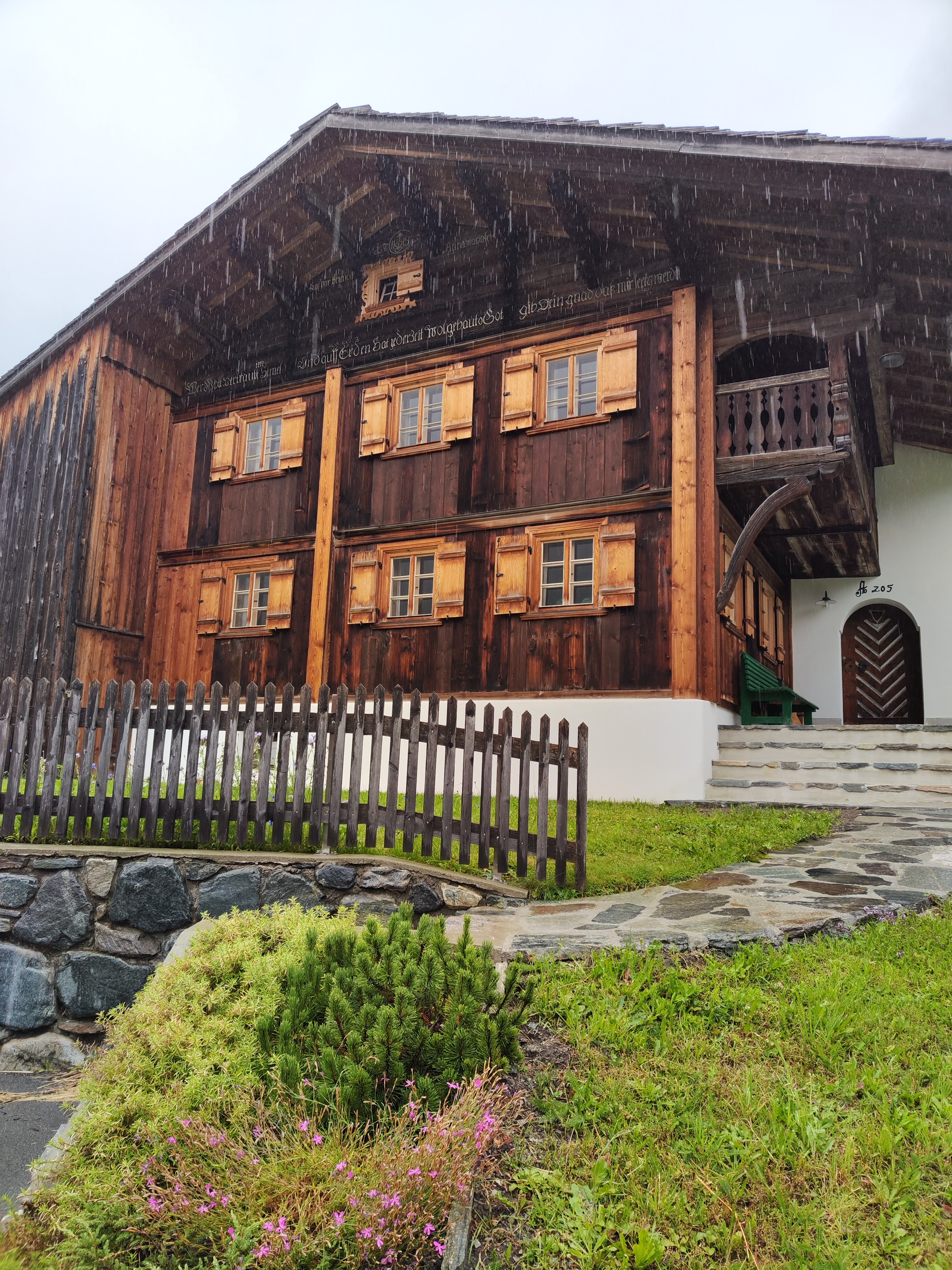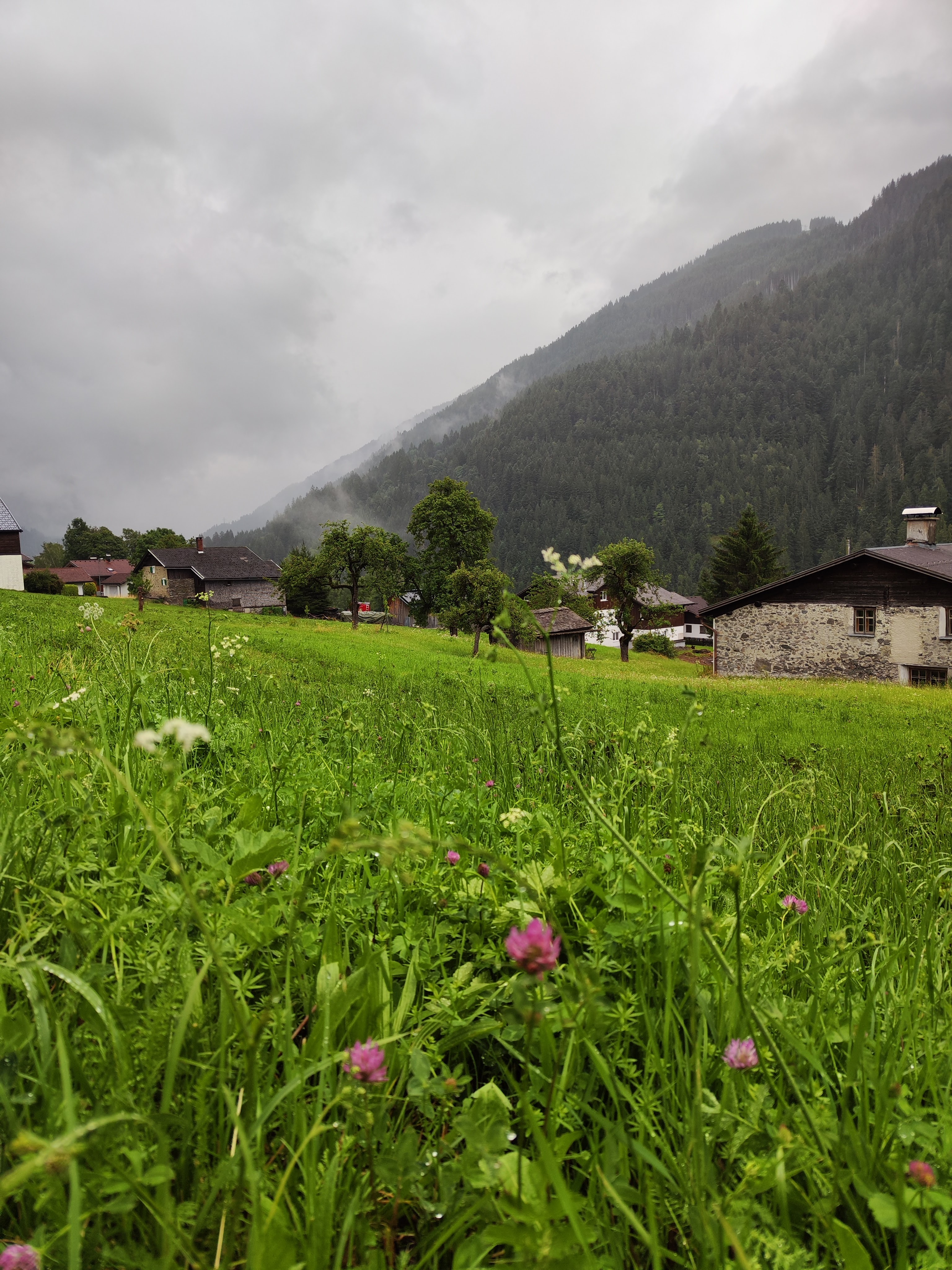 Das Montafon kenne ich nur vom Winter – und mein Aufenthalt im Bergdorf Gargellen ist bereits fast 10 Jahre her. Grund genug, mir diesen schönen Fleck im Ländle mit Spezial-Dialekt (immaterielles Unesco Weltkulturerbe) Anfang Juli genauer anzusehen. Ursprünglich, herzlich und an bestimmten Orten wie aus einer anderen Zeit, ohne das Moderne zu verbannen… Auf geht’s nach Schruns, wo 3 Minuten zu Fuß vom Bahnhof meine Base für 3 Nächte wartet – das ****Hotel Zimba. Die markante Bergspitze zum Namen zeigt sich allerdings erst am Folgetag. Erster Programmpunkt: Ortsspaziergang in St. Gallenkirch am Abend. Nass & kurz, die Heublumensuppe mit Willkommens-Keesknöpfli im GH Hotel Adler umso wärmender…