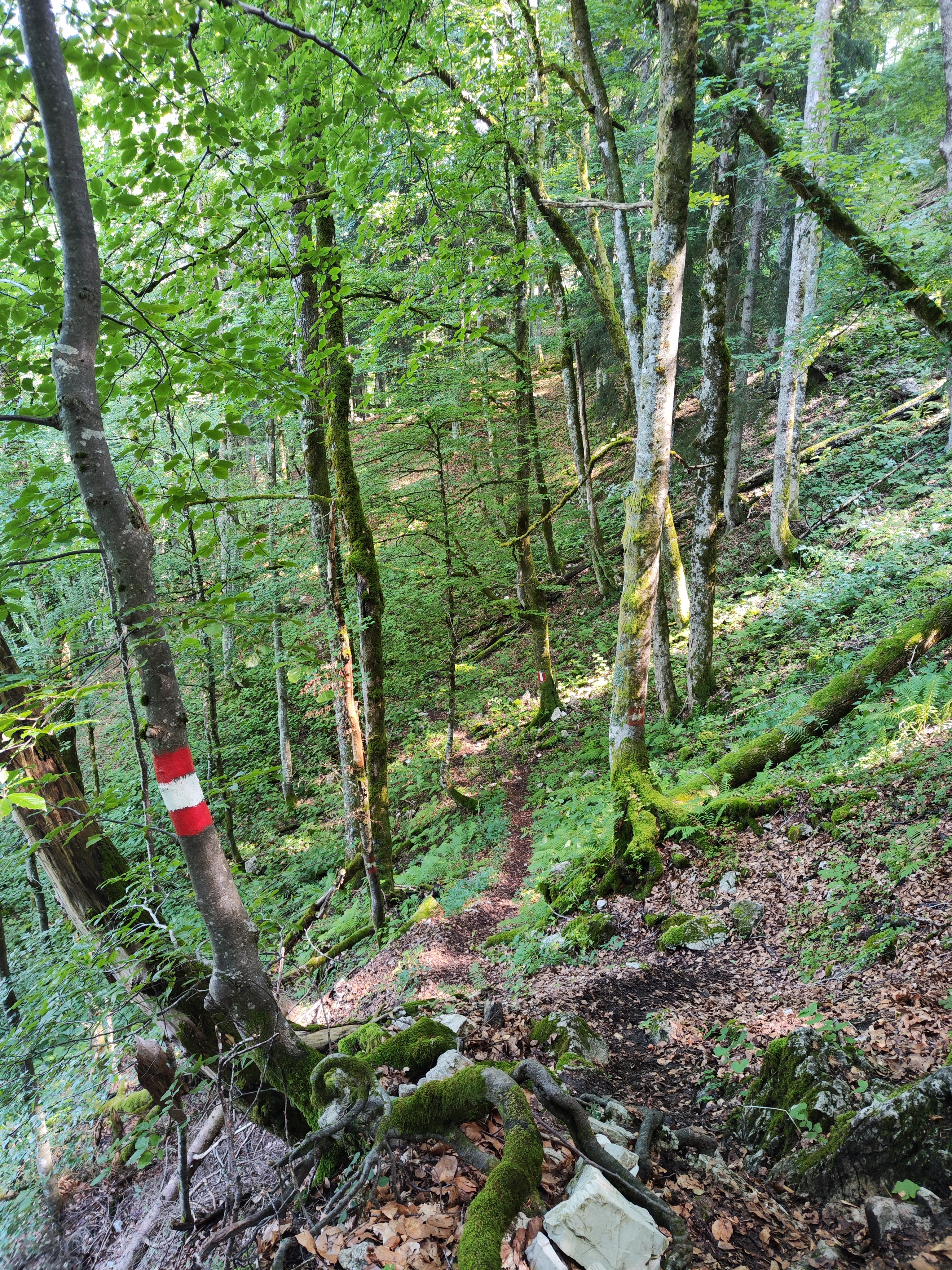 Nach einem Pauserl mit Schwalbenschwanz-Gesellschaft (auch hier nur max 6 Leute heute) überleg ich kurz, welche Abstieg ich nehme und entscheide mich für den Steig im Bleckwandwald, der zum GH Mahdhäusl führt. Dafür geht’s bis ca. 10 Minuten nach der Bleckwandhütte am Aufstiegsweg retour, um dann rechts bei einer markierten Gabelung wiederum auf einem steilen, ausgesetzten und sehr schmalen Waldsteigerl zu landen. Zum Teil verwachsen aber relativ frisch markiert. Nach erreichen einer Forststrasse kreuzt man weiter unten den Sparber-Rundweg, die Qual der Wahl erfolgt am Wildgehege – links am Aberseeweg im Wald zurück oder runter bis zum See... jo eh – Entscheidung klar! Also am Wildgehege des Mahdhäusls runter, der Strasse entlang zur B158 und unten durch (Bachbett), am Lipphaus (Aberseer Heimatmuseum) vorbei und über Wiesen Richtung Wolfgangsee. PS: fürs nächste Mal hab ich mir eine schwarz markierte Variante aufgehoben – als Bleckwand Überschreitung, via Schartenalm.
