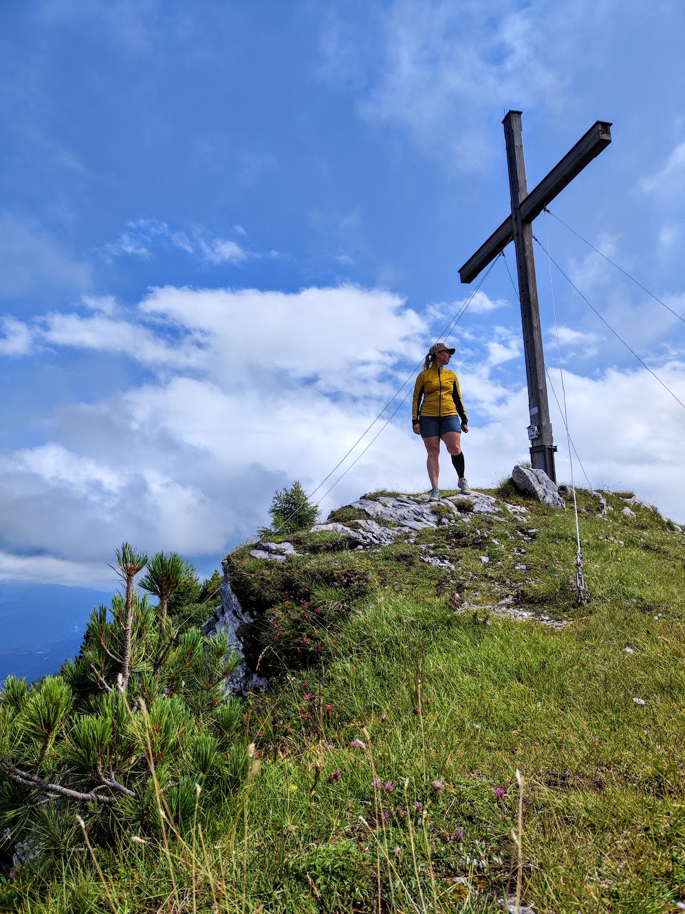 Endlich auf den Zinken geschafft! Der markante Ausseer Hausberg fordert Schweiss, Trittsicherheit und Schwindelfreiheit – belohnt aber dafür am Plateau oben auf dem Weg zum Gipfel. Erst im auf und ab zwischen Karst & satten Almwiesen, Almrausch, Lampö & Kiah. Der Ausblick vom 6m hohen Gipfelkreuz? Alle schönen im Ausseerland versammelt: Loser, Trisselwand, Backenstein, Totes Gebirge, Tauplitz Alm-Plateau, Grimming, Sarstein, Sandling, Dachstein (war bei mir leider gschamig im Nebel)…
