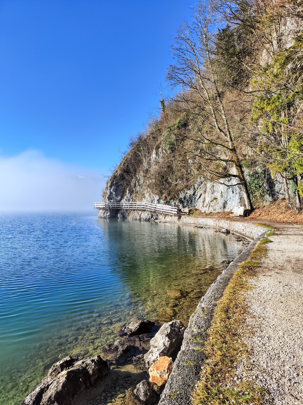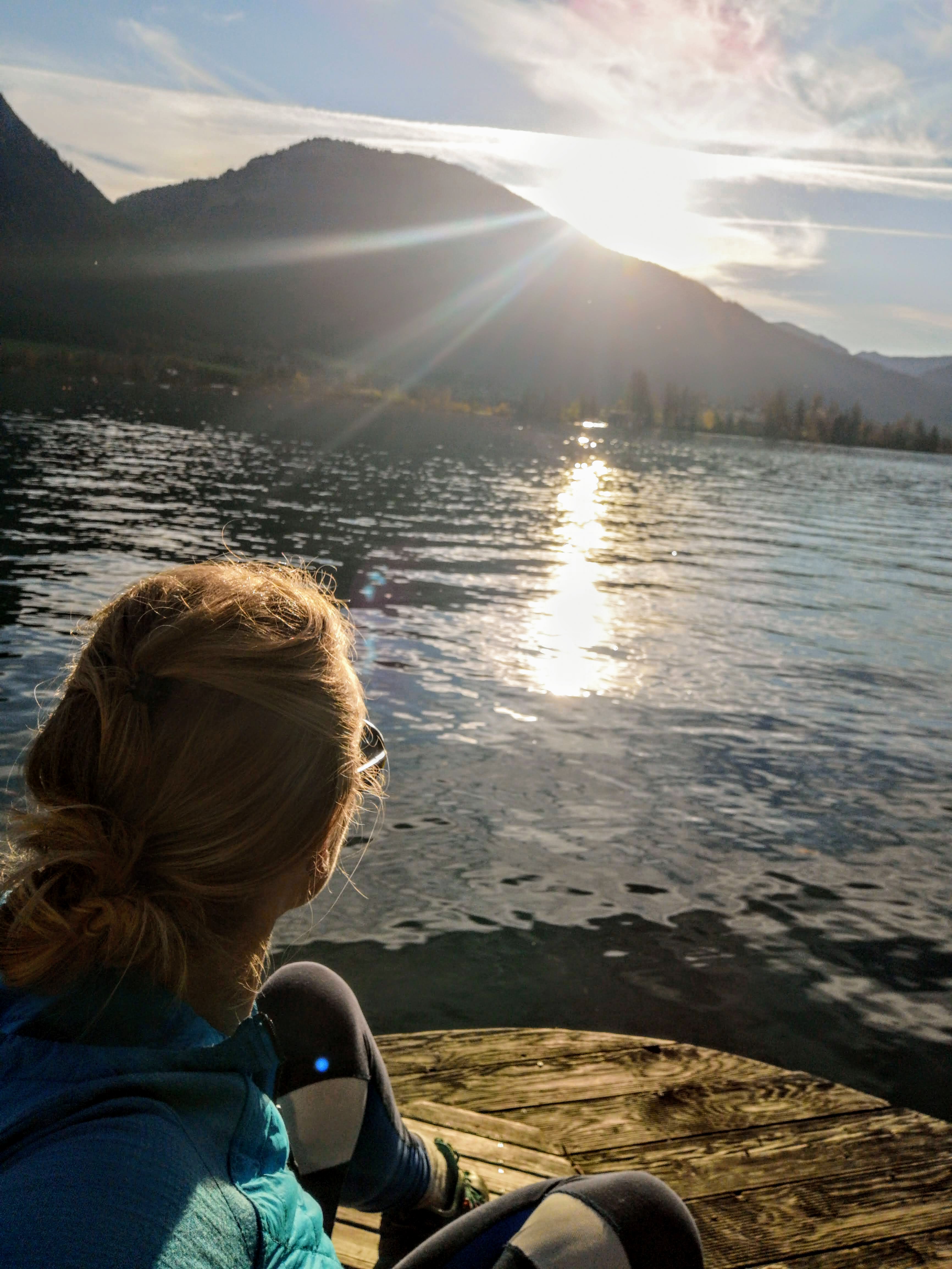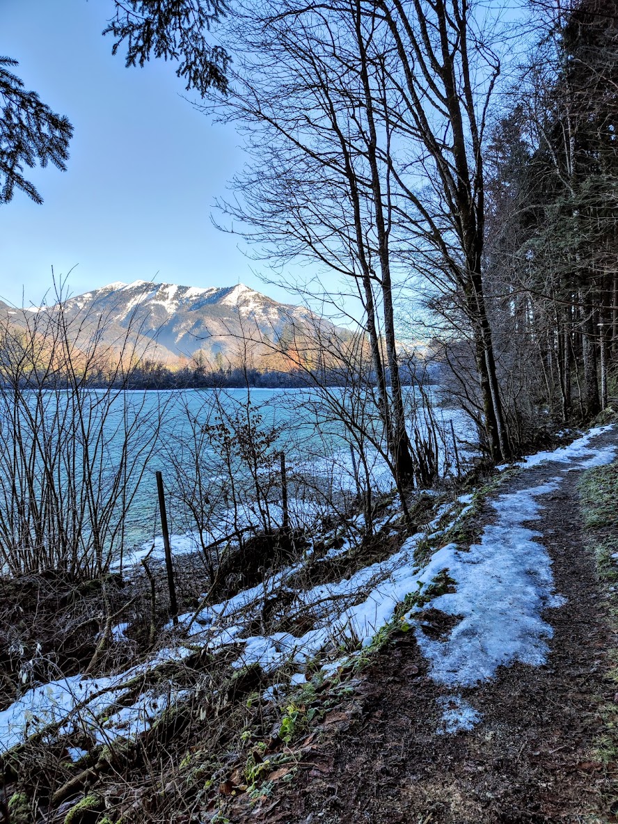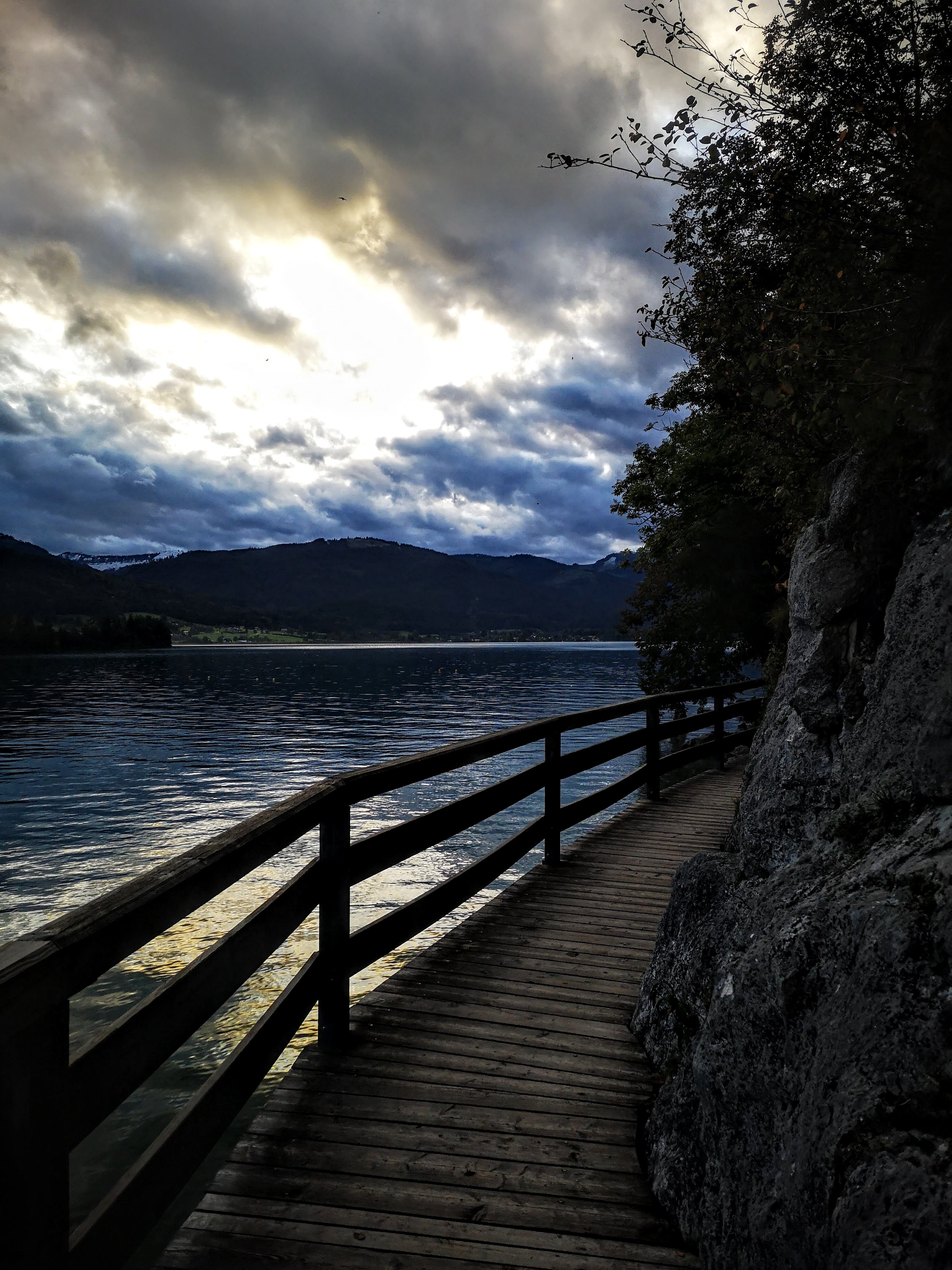 Die kurze Runde wird durch die „Gschmå-Platzln“ manchmal länger – in der Zeit, nicht Kilometermässig. Sonnige Bankerln, die im Wasser auf Plateaus stehenden Holzliegen in Seerosenform, der Uferbereich mit schattigen Bäumen… auch zum Baden wunderbar! Die Prominenz zur Linken und Rechten: Postalm, Sparber, Bleckwand… 12er Horn St. Gilgen, Schafberg, Vormauerstein… mit jedem Schritt Panorama satt. Im Winter sollte man allerdings darauf gefasst sein, dass manche Holzplanken / Steg-Abschnitte über dem Wasser bissi rutschig sein können – oder eisig.