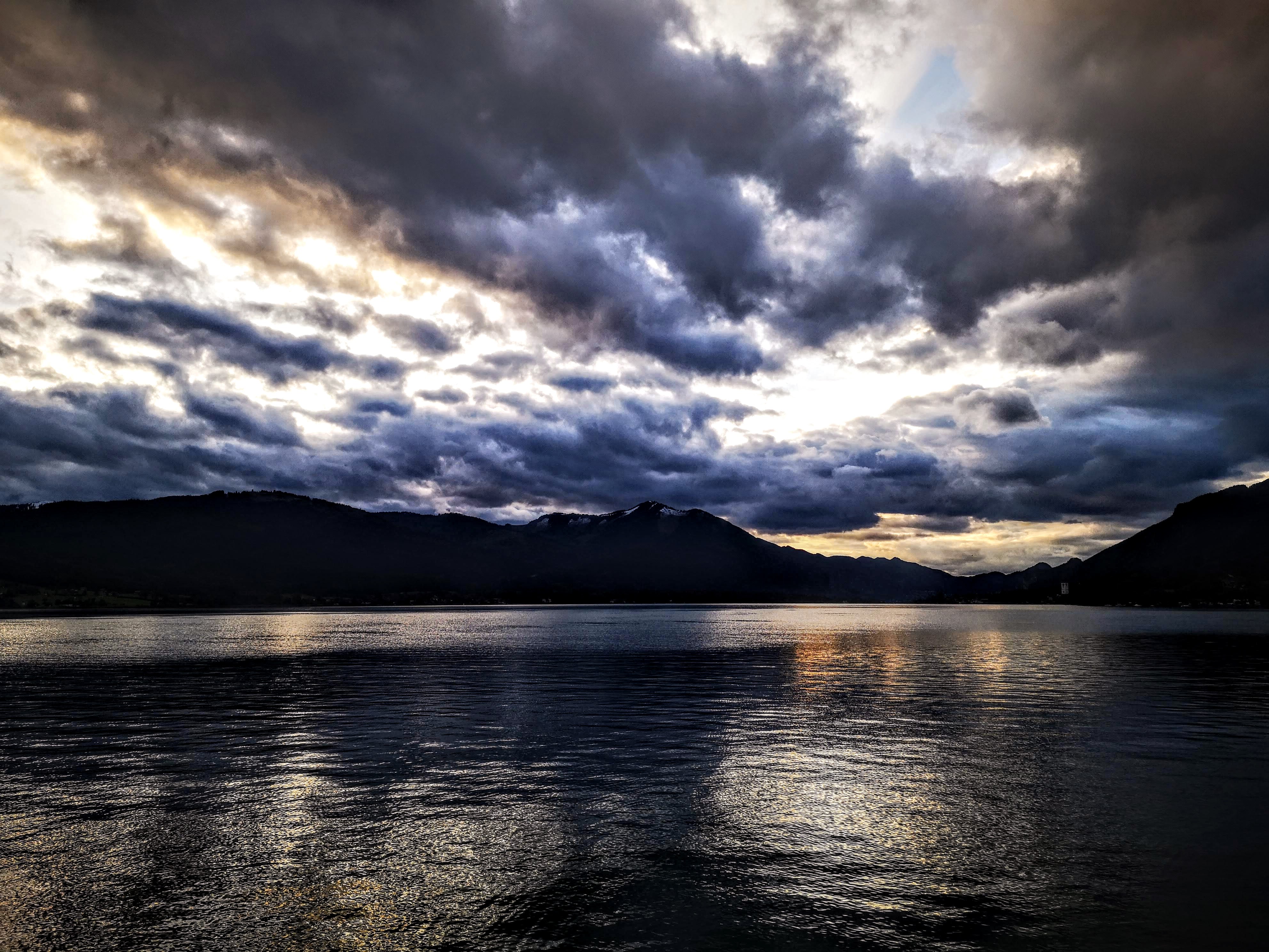 Herbststürme und der Sonnenuntergang am See