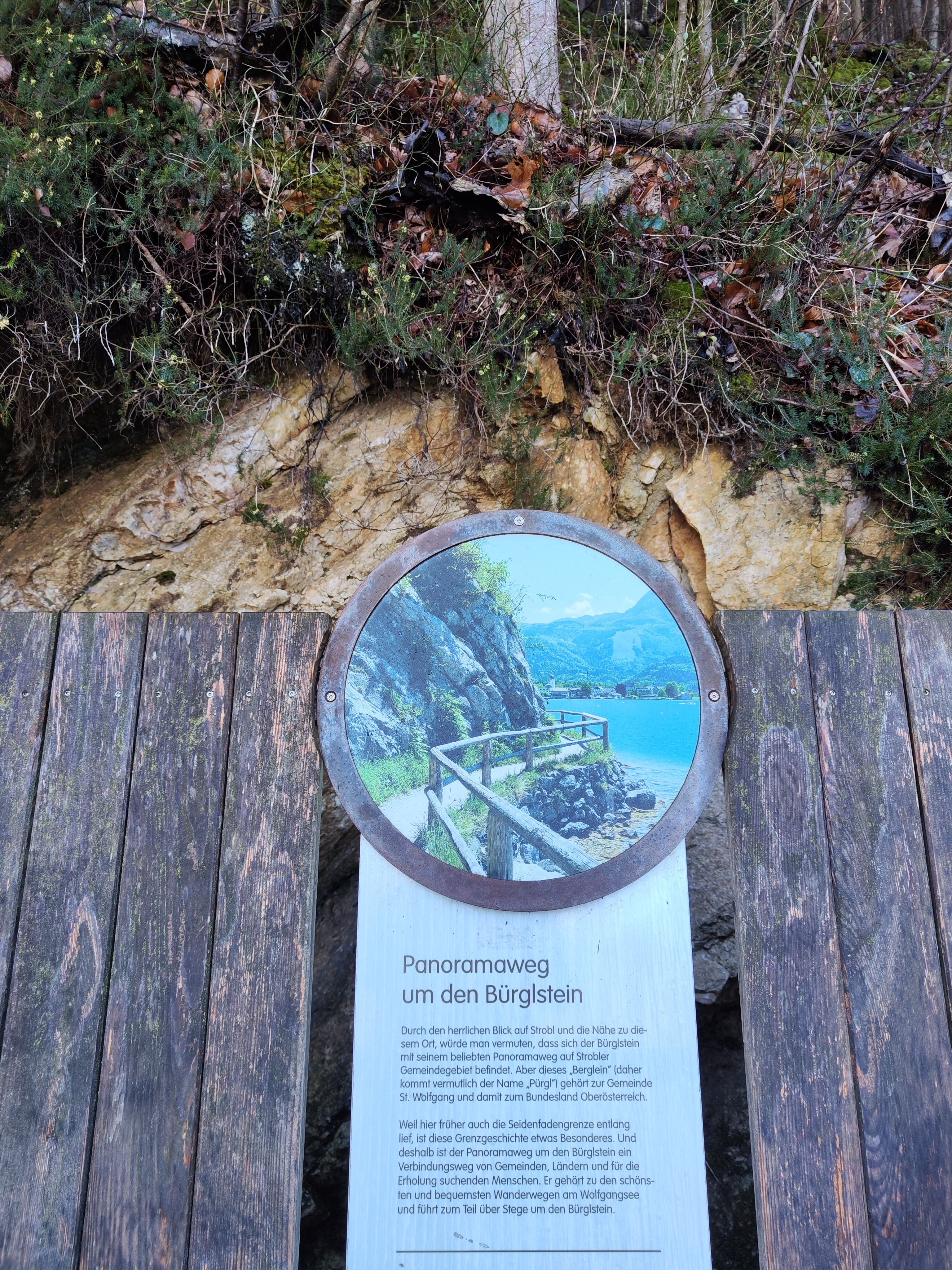 Am Bürglstein Rundweg warten einige interessante Fakten auf Info-Tafeln, die es sich durchaus zu lesen lohnt. War mir zB nicht bewusst, dass ich komplett in Oberösterreich unterwegs bin und nicht im Strobler Gemeindegebiet (ergo Salzburgerland). Die ganze Geschichte der (sich ständig etwas ändernden) Seidenfadengrenze (und der Seegrenzen) ist sowieso eine kurze Pause wert – dazu gibt es eine eigene Tafel. St. Wolfgang liegt in OÖ, der Schafberg zB gehört aber wieder zum Bundesland Salzburg (ab dem Dittlbach)…