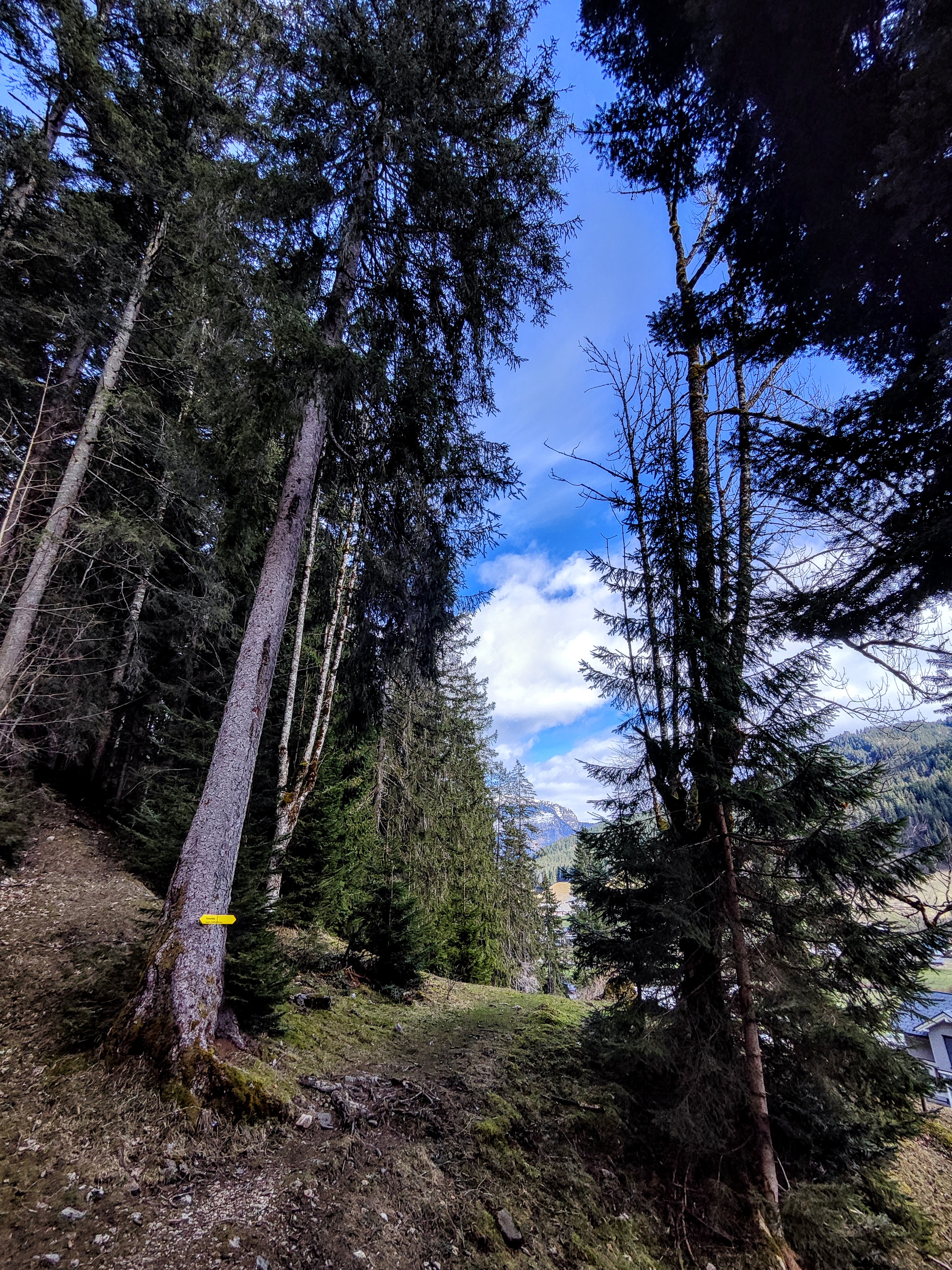 Runde Hintertal-Vordertal & retour: Markierung nahe Bushaltestelle Bäckerbrücke zum Einstieg folgen (Start auch zb. Bushaltestelle oder PP Hornspitz im Mittertal, Bushaltestelle Mittertal bei Tourismusinfo, kostenpflichtig am PP Sportplatz und dann via Gosaubach ins Hintertal) – Panoramaweg im Wald via Kalvarienbergkapelle bis ins Vordertal folgen (ich bin beim Hotel Koller bereits ri Sportplatz abgestiegen) und entlang des Gosaubachs retour (10km & 235hm). Achtung: aktuell Pistenquerung der Hornspitzabfahrt nötig (Betrieb bis 1.4), sonst alles aper