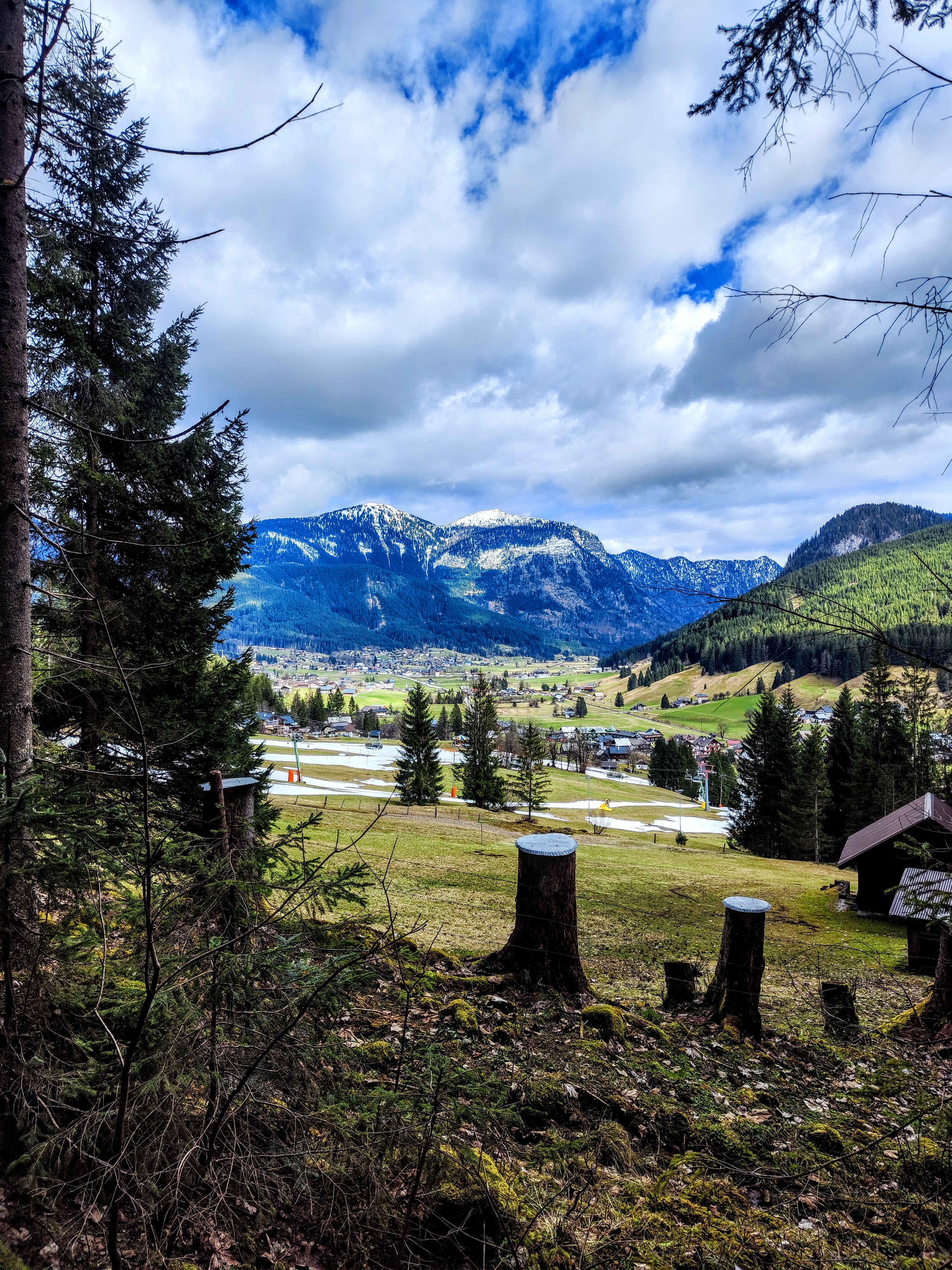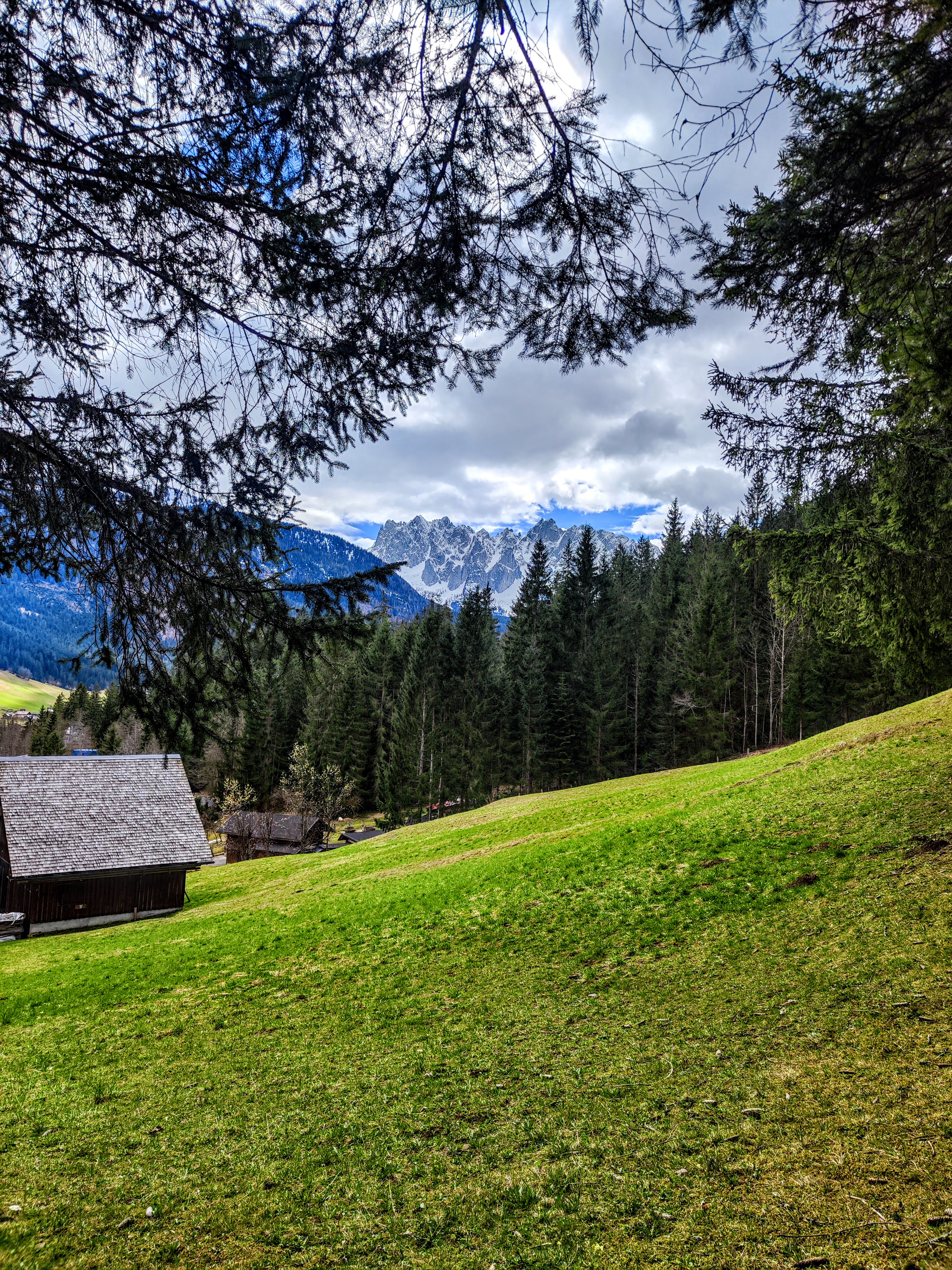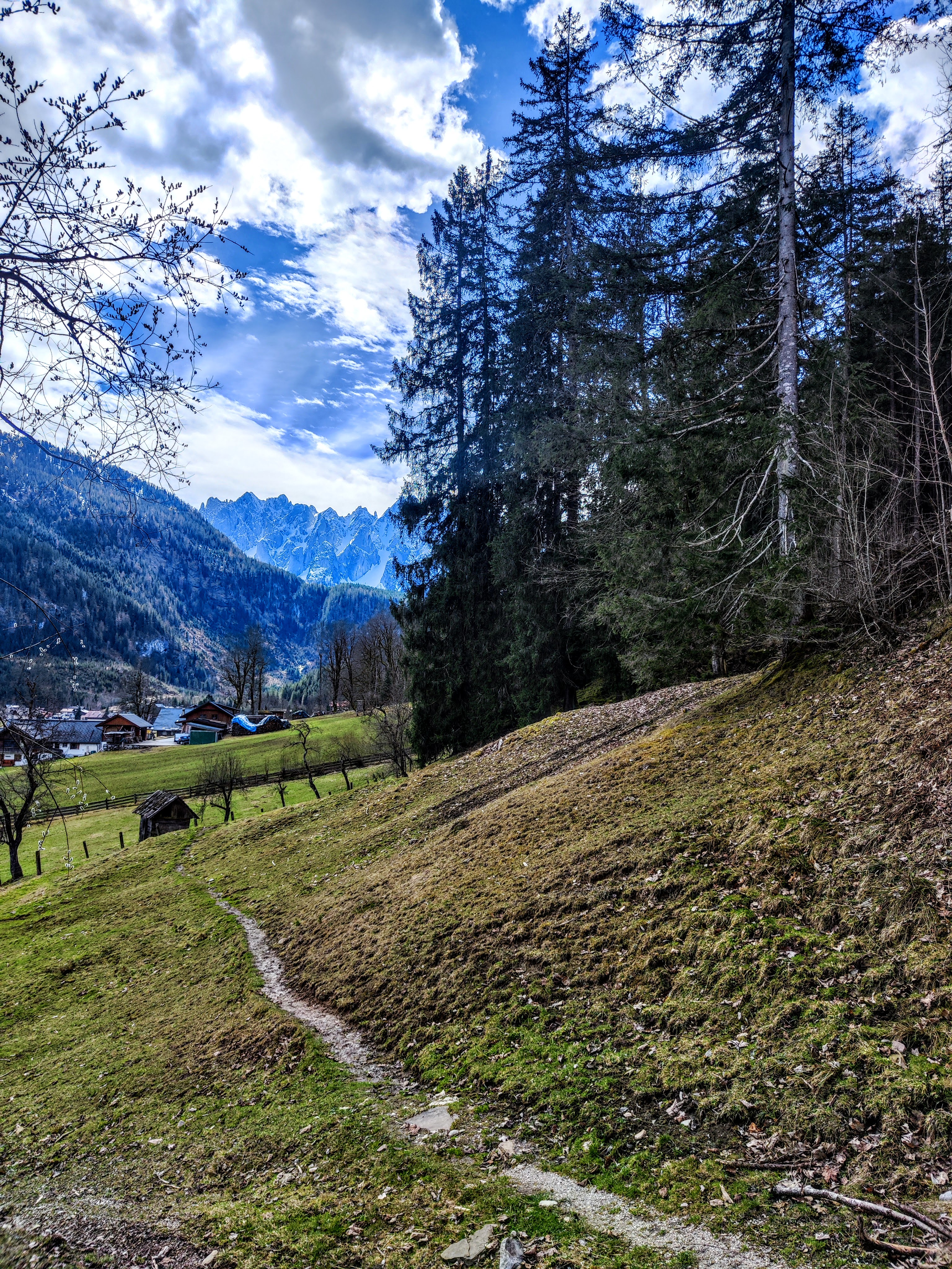 Frühling im Tal, noch immer Winter am Berg – so schaut’s in Gosau auch aus. Unten grün, oben weiss. Für alle, die schon gern a bissi Berg gehn wollen, denkt’s dran: Grödel tragen sich eh nie schwer oder eben talnahe Spazierer oder Wanderungen geniessen – wie zum Beispiel den Panoramaweg. Er ist super markiert und hat mehrere Einstiegsoptionen. Und immer wieder spitzlt der Gosaukamm durch… überall rauschts… und zwitscherts. Wunderschöne Waldwege mit kleinen Holzbrücken und kurze Forststrassenabschnitte wechseln sich ab. Von der kleinen Kapelle am Kalvarienberg geht der Blick Richtung Kalmberge, Sarstein & Plassen. I nimm enk oafach mit auf die Runde!