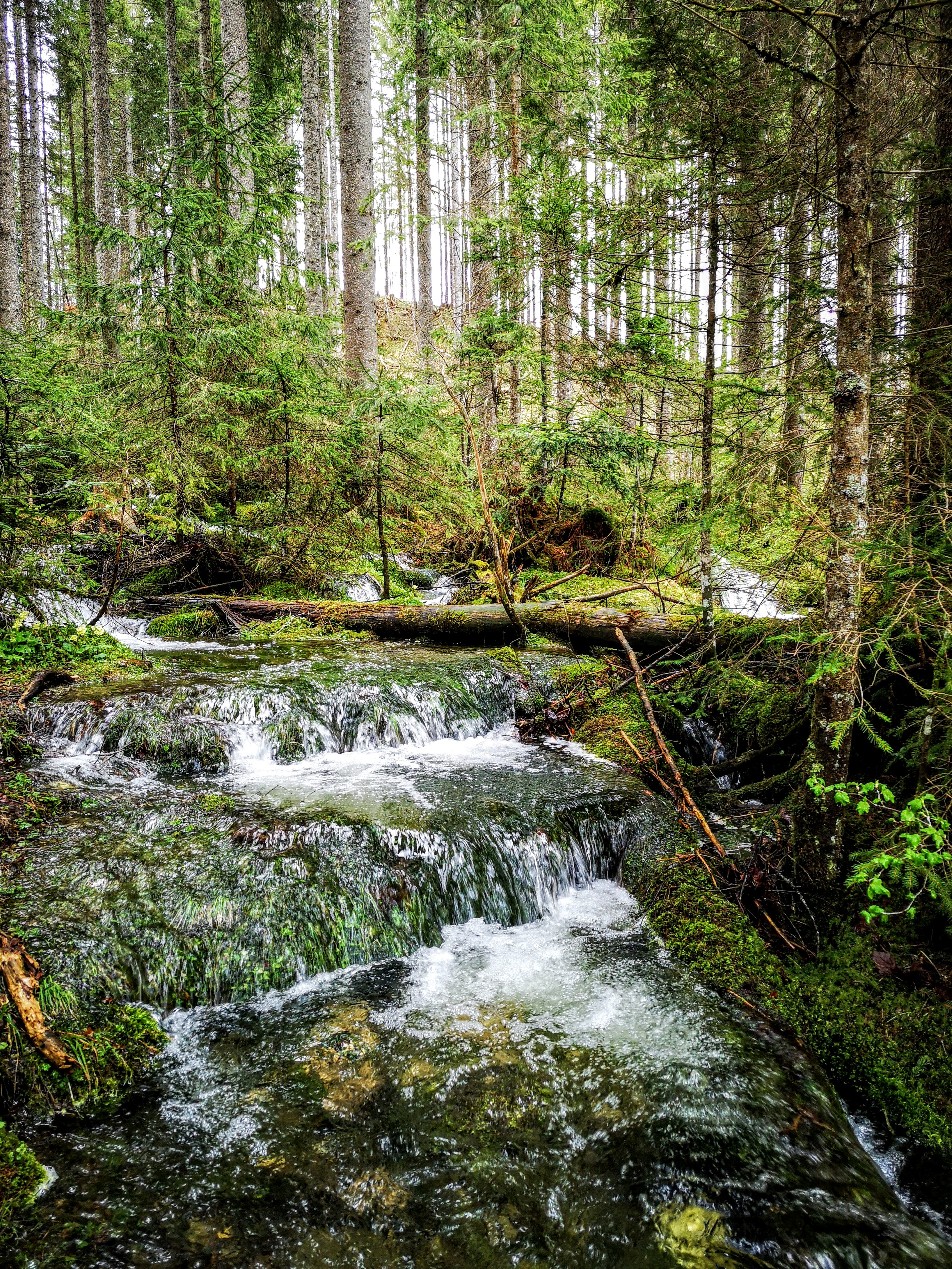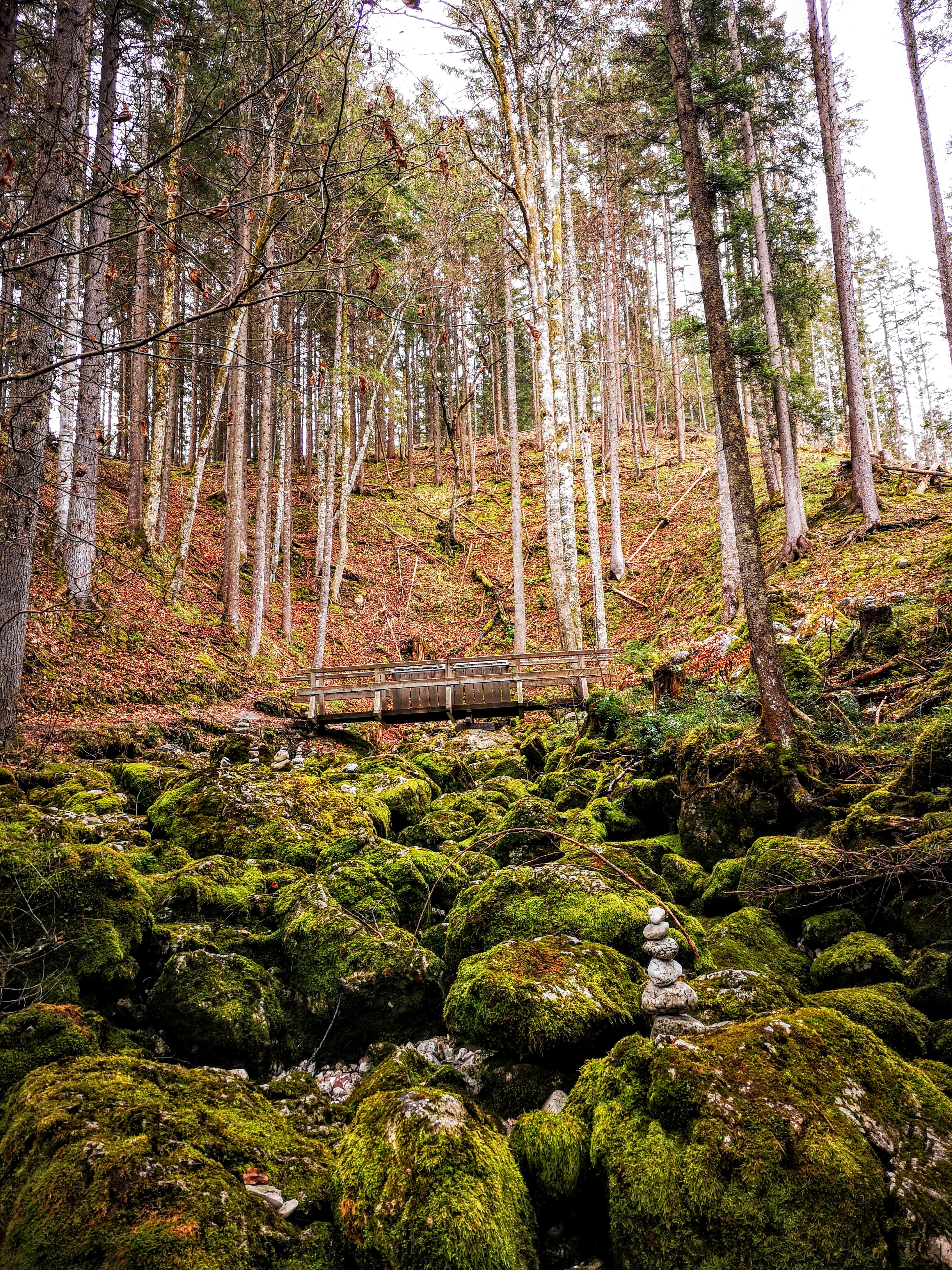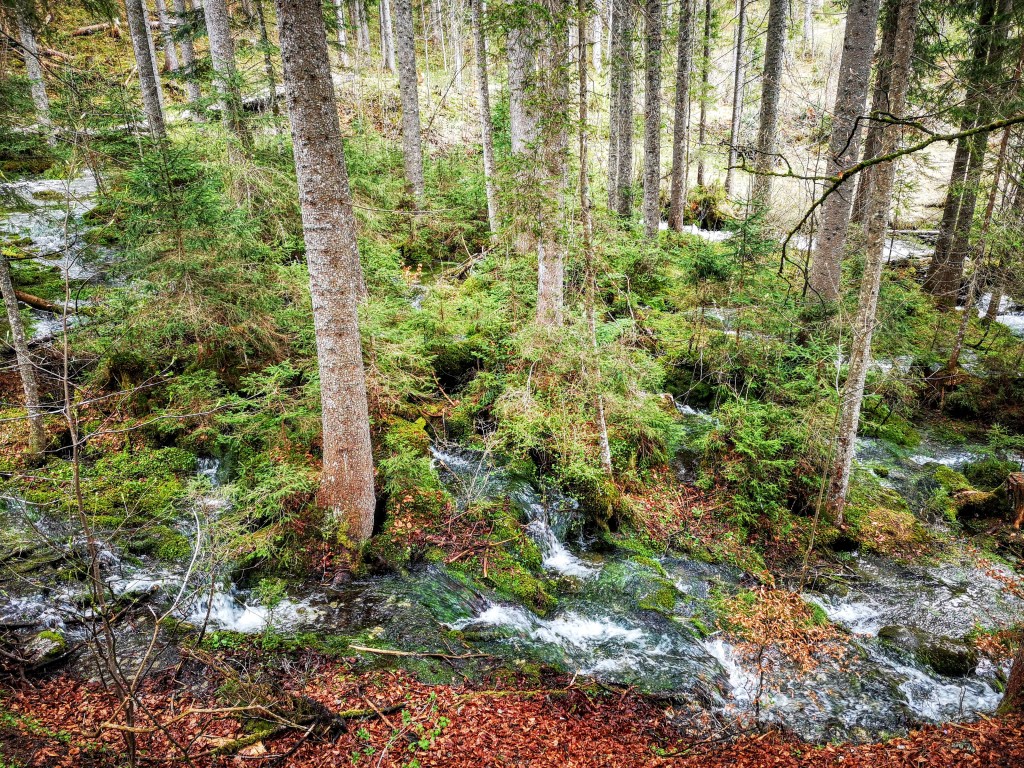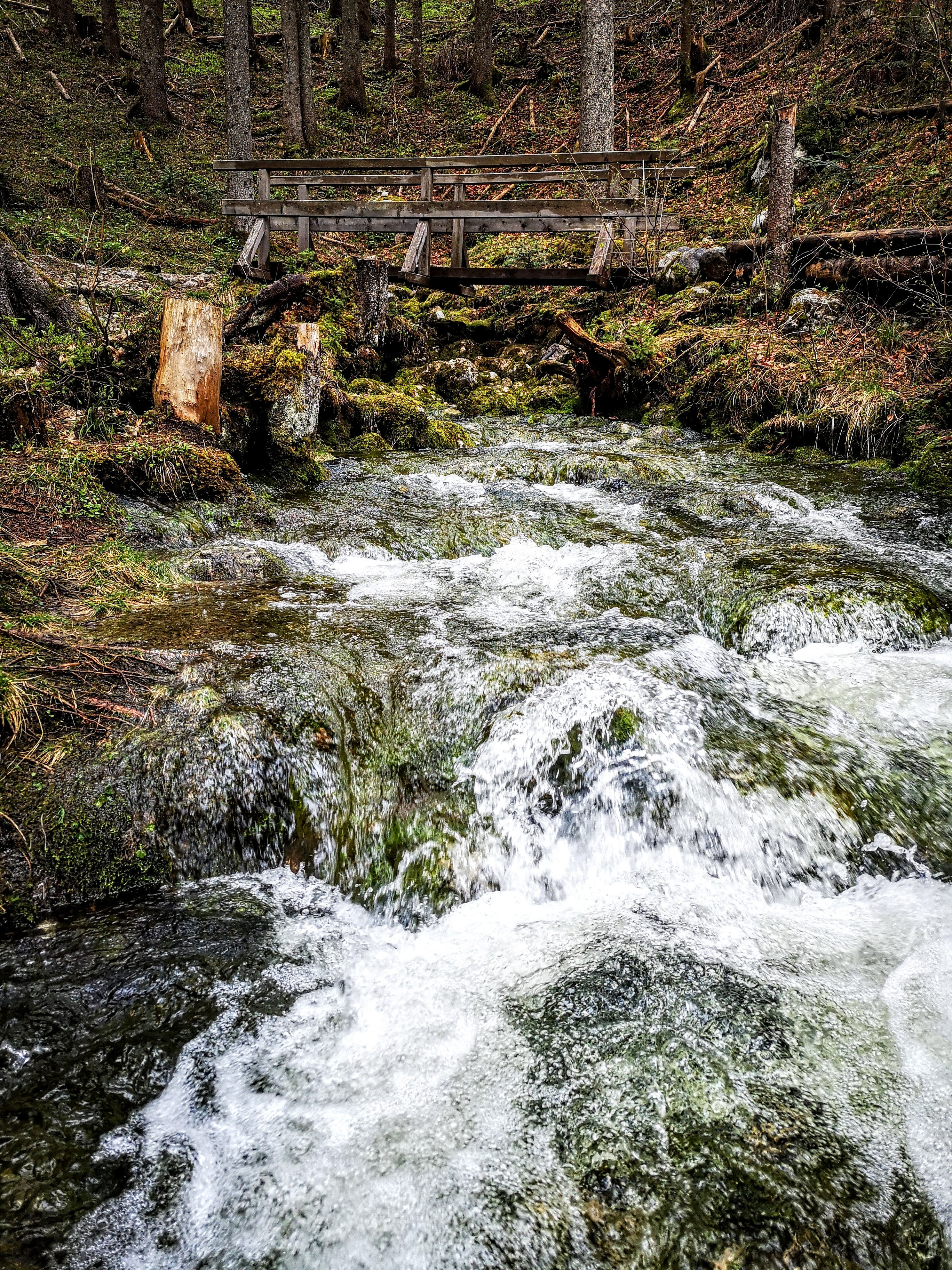 Bereits am Beginn des Natura 2000 Gebiets zeigt das Wasser, wer das sagen hat. Ohne Holz-Brücke, Schuhe aus zum überqueren… Durch den Wald – hören kann ich es bereits. Und dann: nicht nur aus dem Nichts bzw den Steinen beim Ursprung, auch aus dem Waldboden, Totholz & Baumstämmen „strumert“ es… aber immer nur im Frühling, wenn das Schmelzwasser vom Dachstein andrückt. Was gestern war, kann morgen schon nicht mehr aktiv sein. Dafür sprudelt woanders eine Quelle… Aus diesem Grund lasse ich hier einfach die Bilder sprechen – weil ein versprechen vor Ort nicht möglich ist.