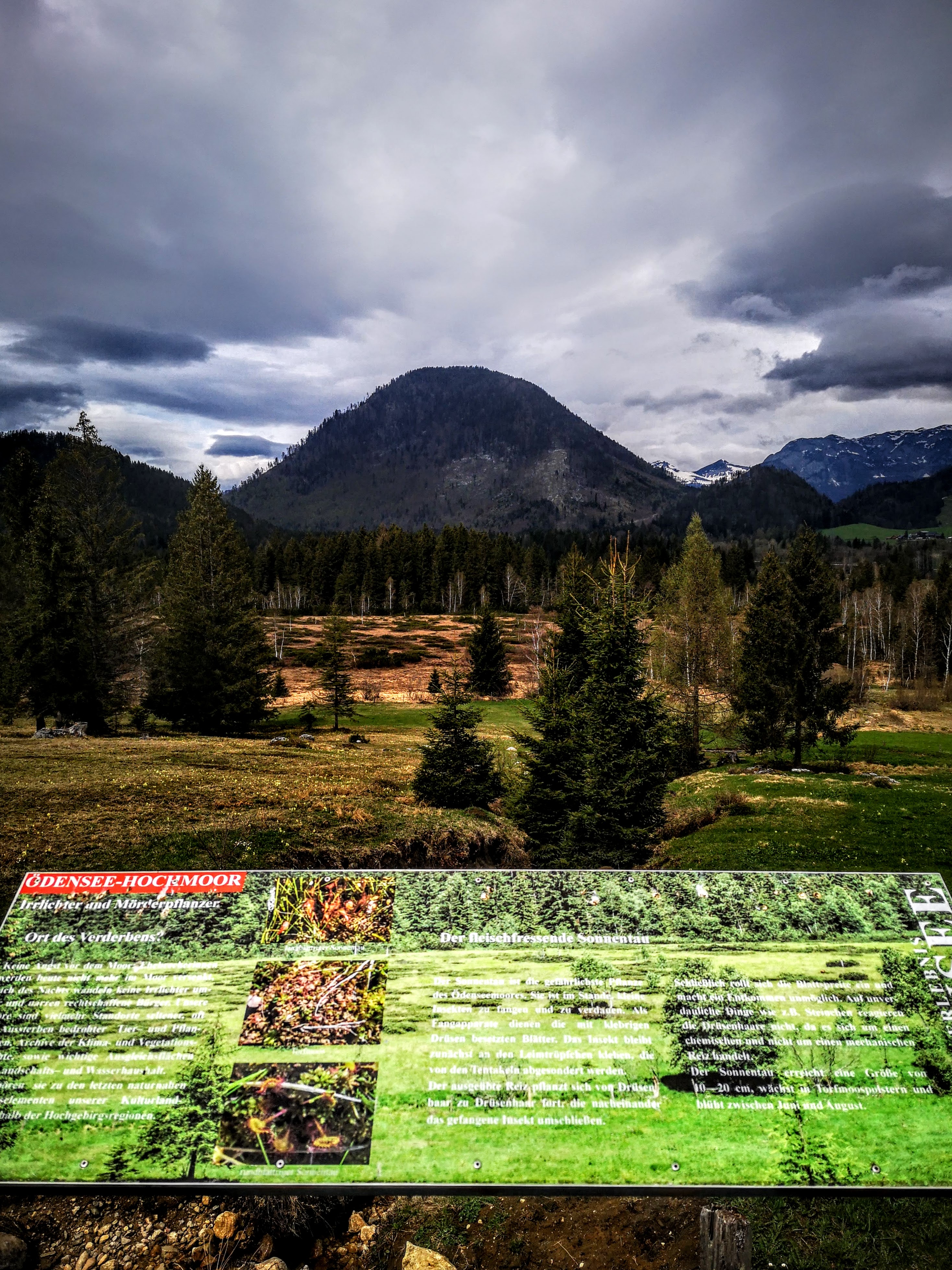 Drama-Wetterstimmung am Retourweg. Zwischendrin ein kleiner Forstrassenhatscha, dann durch gatschige Waldwegerln zurück zur Schotterstrasse mit Blick ins Ödensee Hochmoor. Abstecher zum Kainisch Torfstich und dann zum Auto am PP. Übrigens: von der Abzweigung zum Ödensee Hochmoor könnte man auch direkt zum Ödensee weitergehen – dazu spendier ich gerne einen Extra-Beitrag nach so vielen Besuchen zu jeder Jahreszeit!