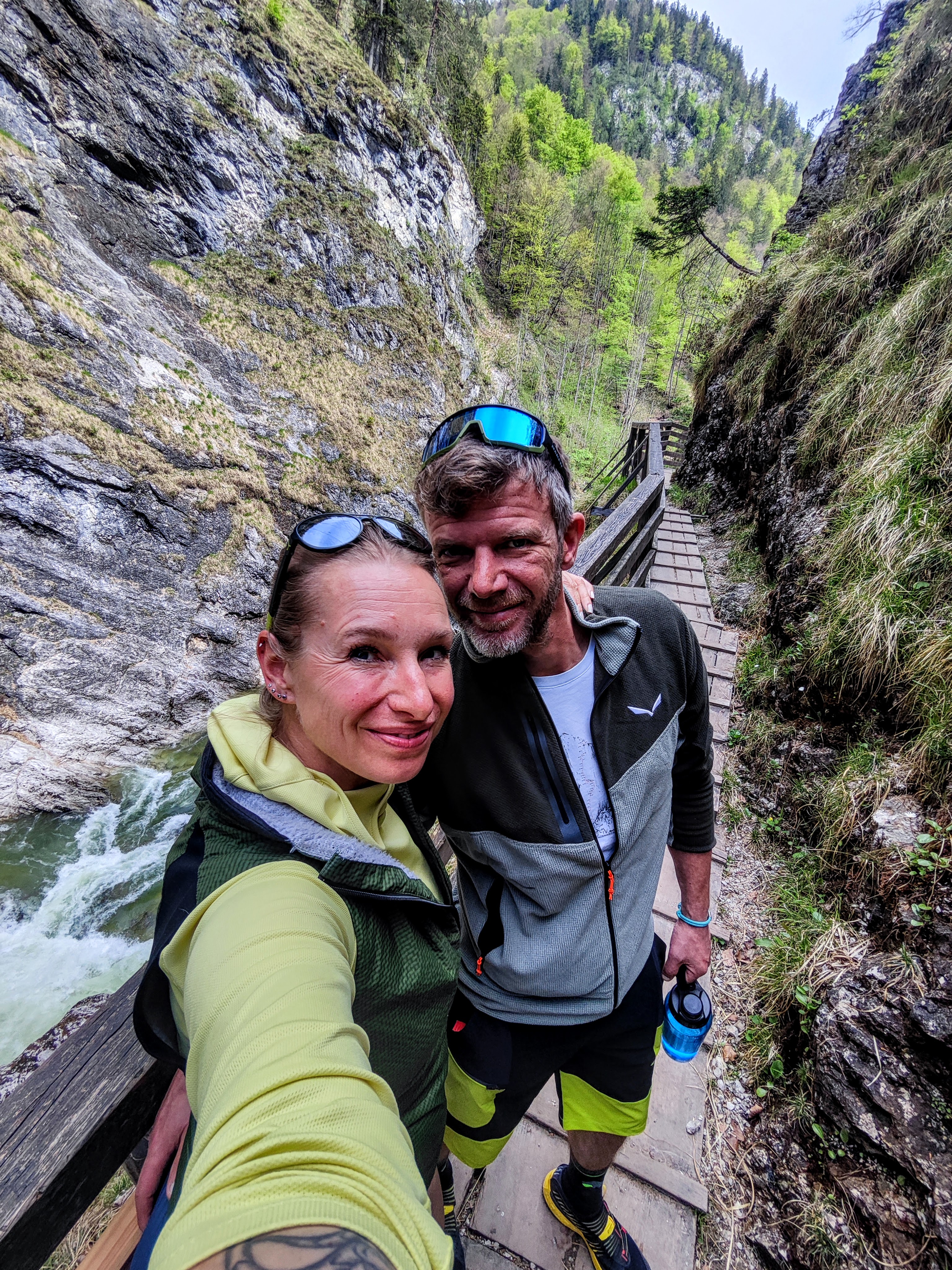 Erst die 125 Stufen tief in die dunkle Klamm, sie liegt direkt beim Eingang – Wassermarken weisen die Höchststände aus. Wahnsinn, wie der Pegel bis zu 30m ansteigen kann. Wirklich beeindruckend und zu recht als „der schönste Teil“ tituliert. Alle Stufen wieder bergauf und über einen feinen, gesicherten Steig auf Holzstegen entlang der Felswand zu einer Stahlbrücke am Ende der Klamm… Reissendes, tosendes Wildwasser – übrigens eine der schwierigsten Strecken, die immer wieder Opfer fordert. In frühen Zeiten wurden zur Holzbringung sogenannte Triftsteige errichtet, da die Klamm lange für den Holztransport genutzt wurde – 1884 wurde sie dann durch eine Steiganlage für den aufkommenden Tourismus erschlossen. Mehr zur Geschichte HIER. Der Ausstieg naht, das Landgasthaus Lammerklause auch (Einkehrtipp). Retour bin ich den gleichen Weg durch die Klamm weil so schön (Runde mit 5,5 km & 100 hm). Insgesamt sind es knapp 750 Stein- & Holzstufen – aber kaum Höhenmeter. Ja, hab gezählt! Unterwegs wird die Sage „Die Lammerklamm, ein Liebesschloss aus ferner Zeit“ erzählt.