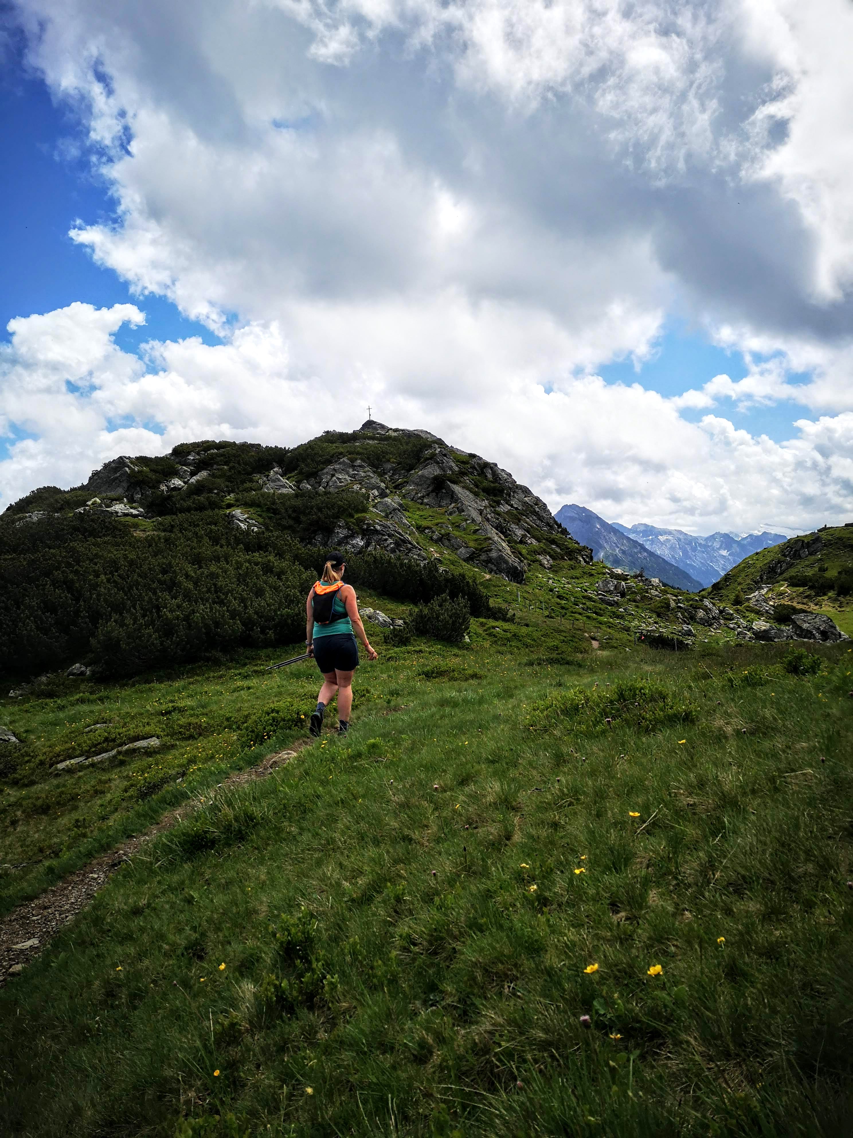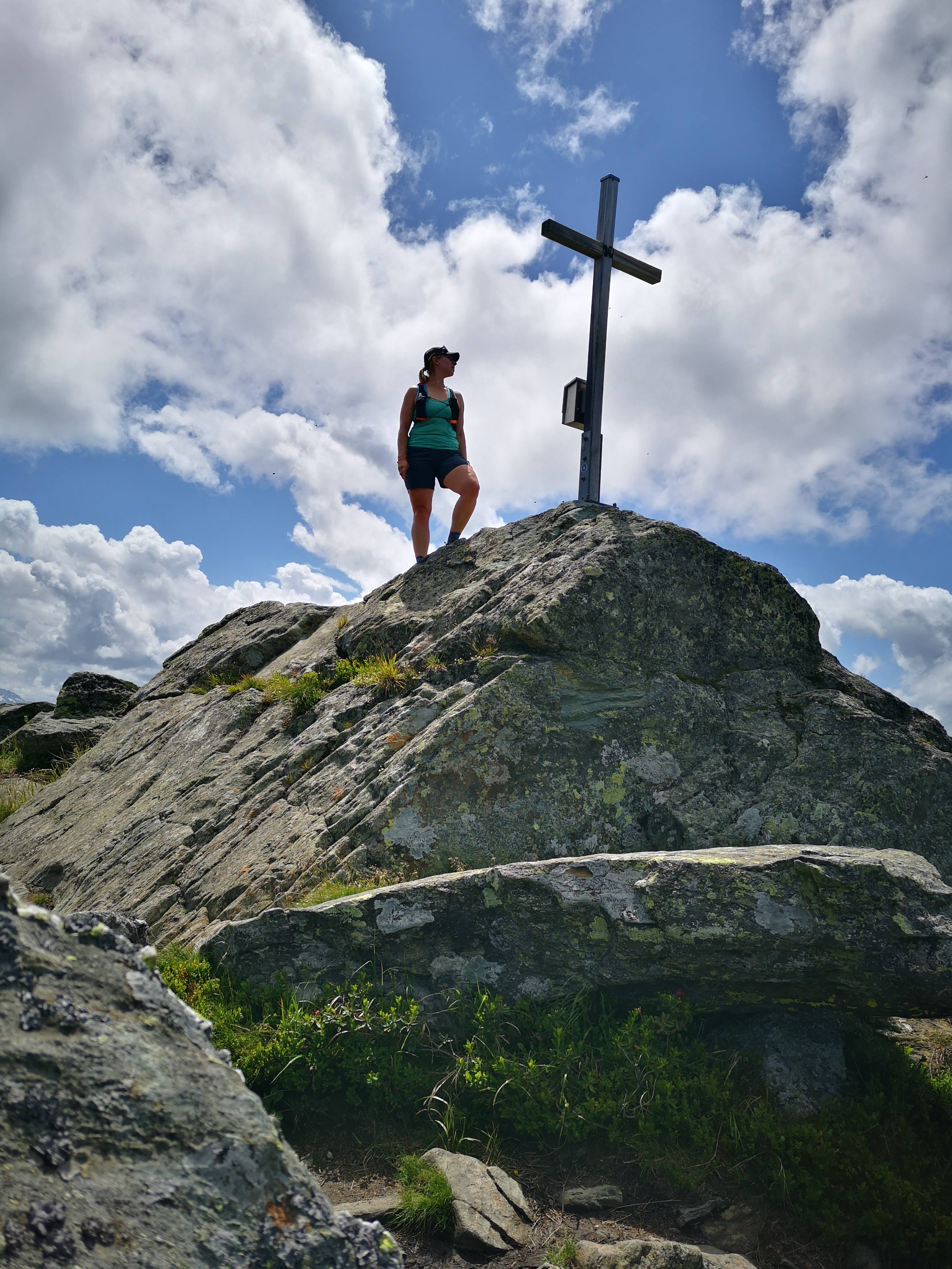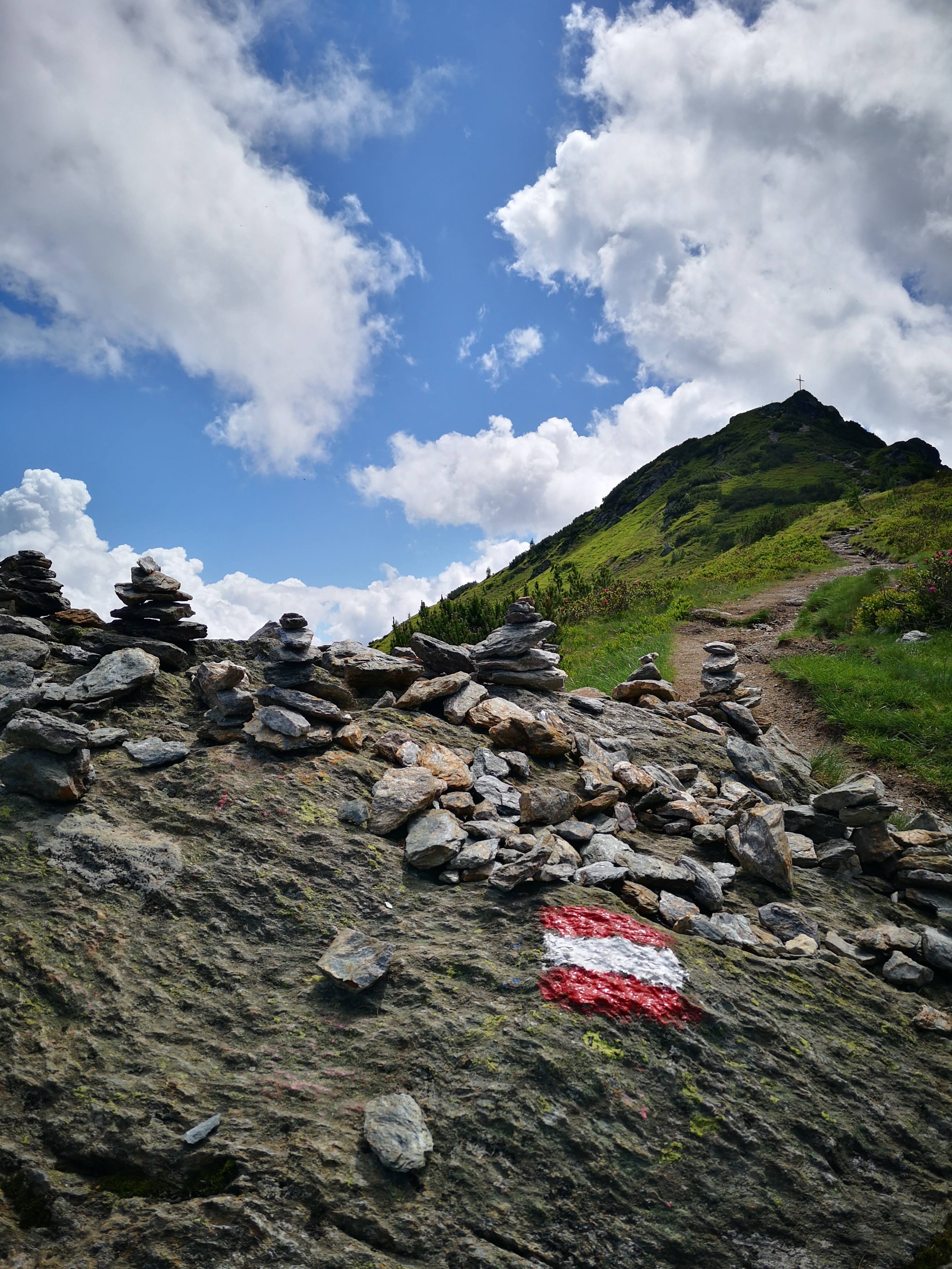 Am liebsten erkunde ich in neuen Regionen ja die Hausberge – auch in Flachau. Dort im war ich eigentlich zum eBiken eingeladen, konnte aber am Anreisetag nicht anders als eine Bergrunde drehen. Nachlesen? Unterwegs in Flachau – eBiken, Kulinarik & Fahrtechniktipps Zurück zur Tour! Nach der Bergstation geht’s ganz schnell in rauheres Gelände. Unverhofft werden aus einer 2 Gipfel Tour 3… ein Gedenkkreuz steht beim Beginn des Wanderwegs ri Grießenkareck (sichtbar im Hintergrund). Letzteres ist klarerweise kein ruhiger Gipfel durch die Nähe zur Bergbahn, aber ein schöner und relativ leicht erreichbarer Aussichtspunkt! Das letzte Stück zum Grießenkareck-Gipfel ist steiler, schmäler & zt mit losem Gestein od abgespeckten Felsplatten. Nach Regenfällen sollte man a bissl vorsichtig sein. Damals direkt einen Sturz erlebt – alles Gute an den älteren Herren, hoffe die blauen Flecken sind weg, die Schürfwunden verheilt und die Freude über den Gipfelblick zurück… (deswegen hab i a im kleinsten Rucksack immer a Erste Hilfe Set mit!)