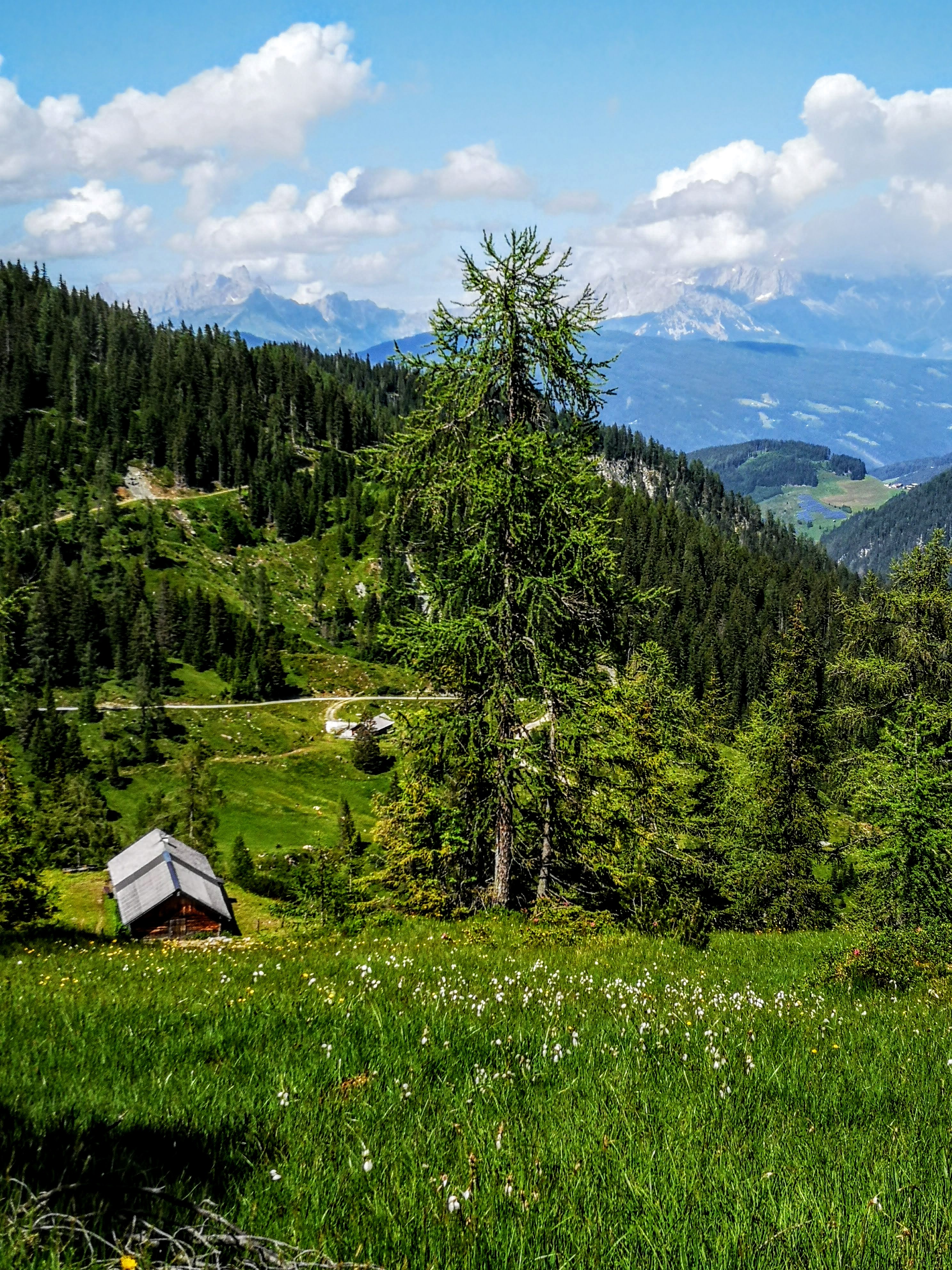 Ein Anblick zum niederknien – die Ennskraxn hätte mich schon direkt noch angelacht, wenn es sich zeitlich ausgegangen wäre. Sie hat mir aber versprochen, dass auf mi wartet… Im Abstieg dann noch auf der Frauenalm für einen kurzen Dischgu mit de Flachauer Damen stehengeblieben. Nach der Frauenalm führt ein schmaler, schöner Steig im ständigen Auf- und Ab durch den Wald zu den Grießenkaralmen. Fette & sumpfige Wiesen mit Wollkraut und Orchideen – erst im letzten Abschnitt sprudeln wieder Bachaln (perfekt zum auffüllen der Trinkflasche). Und dann entdeck i eine Bekannte – die Bischofsmütze! Die steirische Seite vom Dachstein (rechts) ist an dem Tag bissi gschamig. Das letzte Stückl retour bis zur Hofalm ist schnell geschafft und dann freuen sich meine Knie über’s ins Tal gondeln. Voi die scheene Runde, echte Empfehlung meinerseits – danke Flachau, es woa ma a Festl!