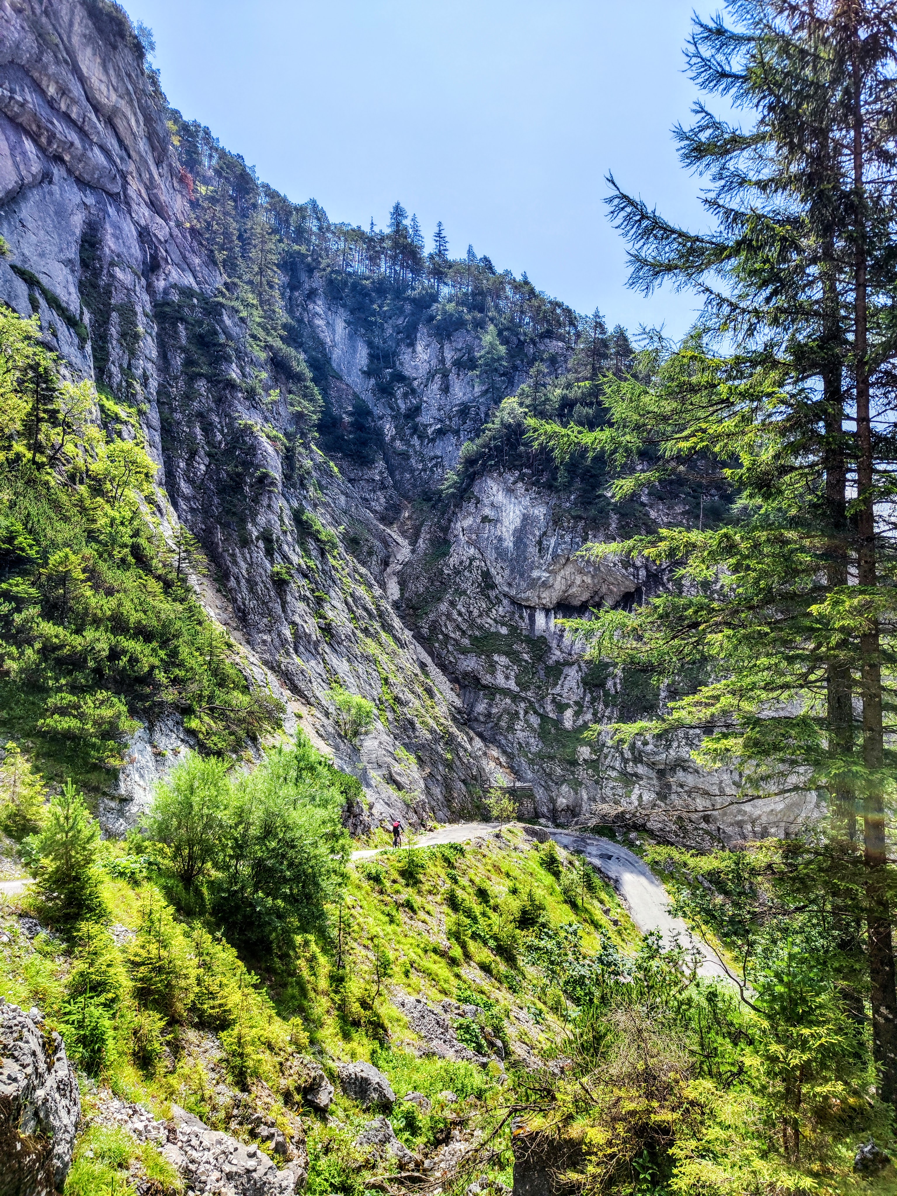 Achtung: es gilt eine offizielle Wegsperre wg Steinschlag (berechtigt) für die alte Salza Stausee Strasse ab der Talsperre bis Bartleck (befahren & begehen auf eigene Gefahr).Zurück nach Mitterndorf am Ennstalradweg – rund um den Grimming: +20kmTlws kein Empfang!