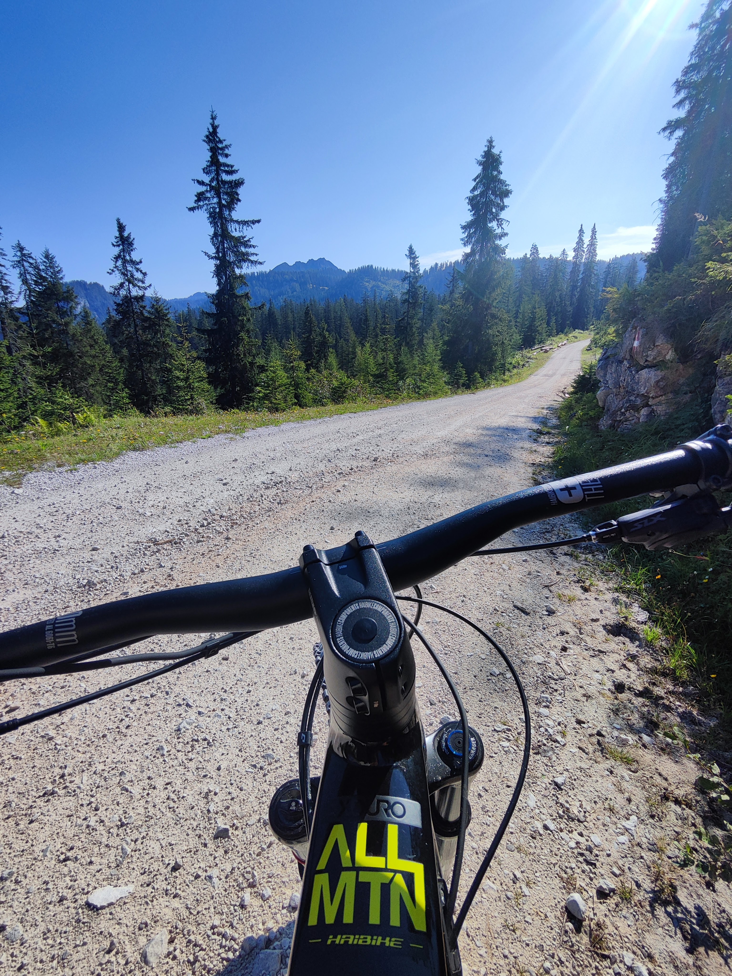 Start: Gosau Hintertal – Auffahrt via Rodelbahn (Bikestrecke) – Grubalm – Rossalm – Schreieralm – zu Fuß weiter auf den Schiechlingsattel – Weg 643 (1x seilversichert, tls steil) zum Plassen Gipfel. Abstieg wie Aufstieg (gewitterprognosenbedingt)