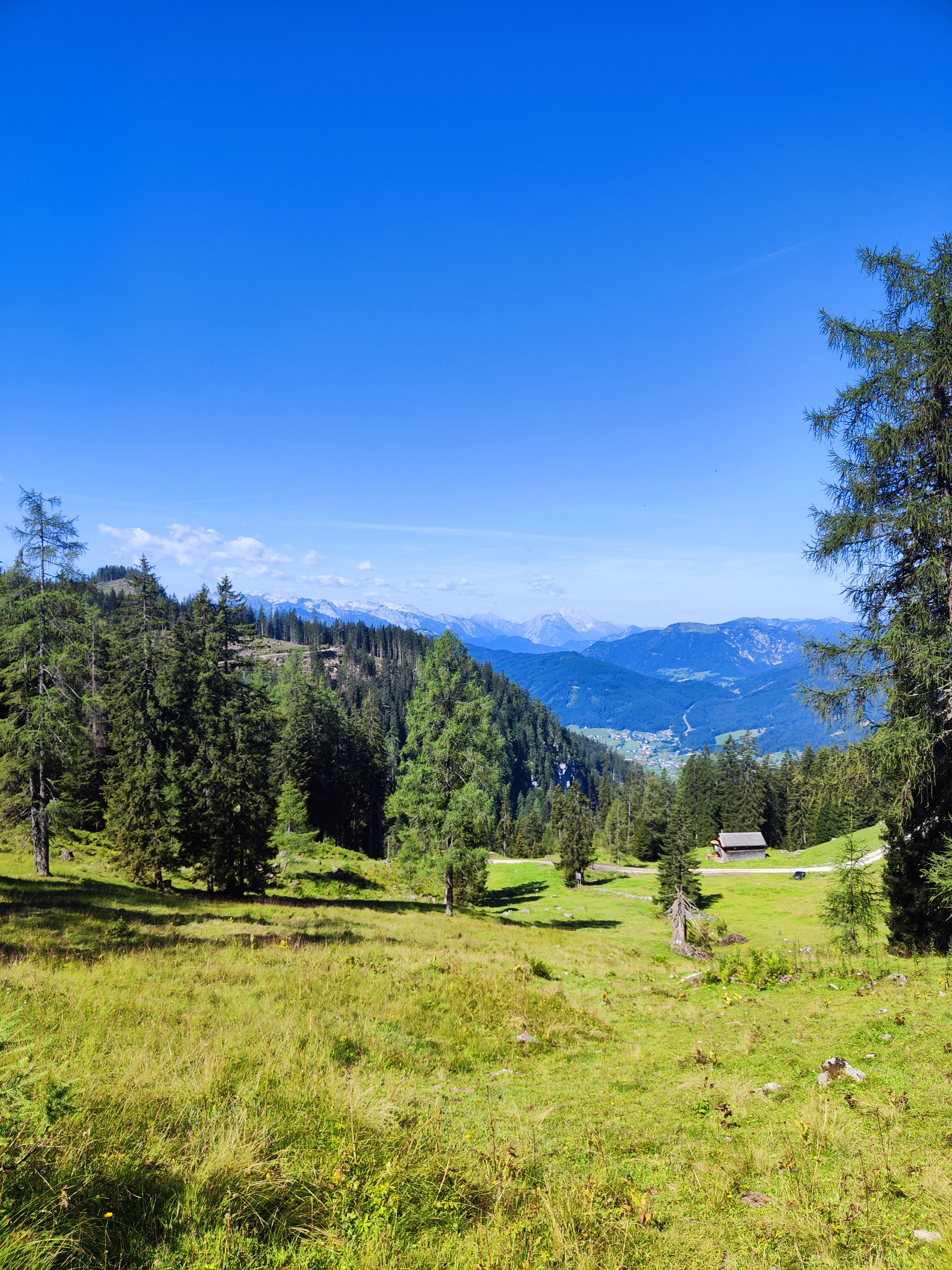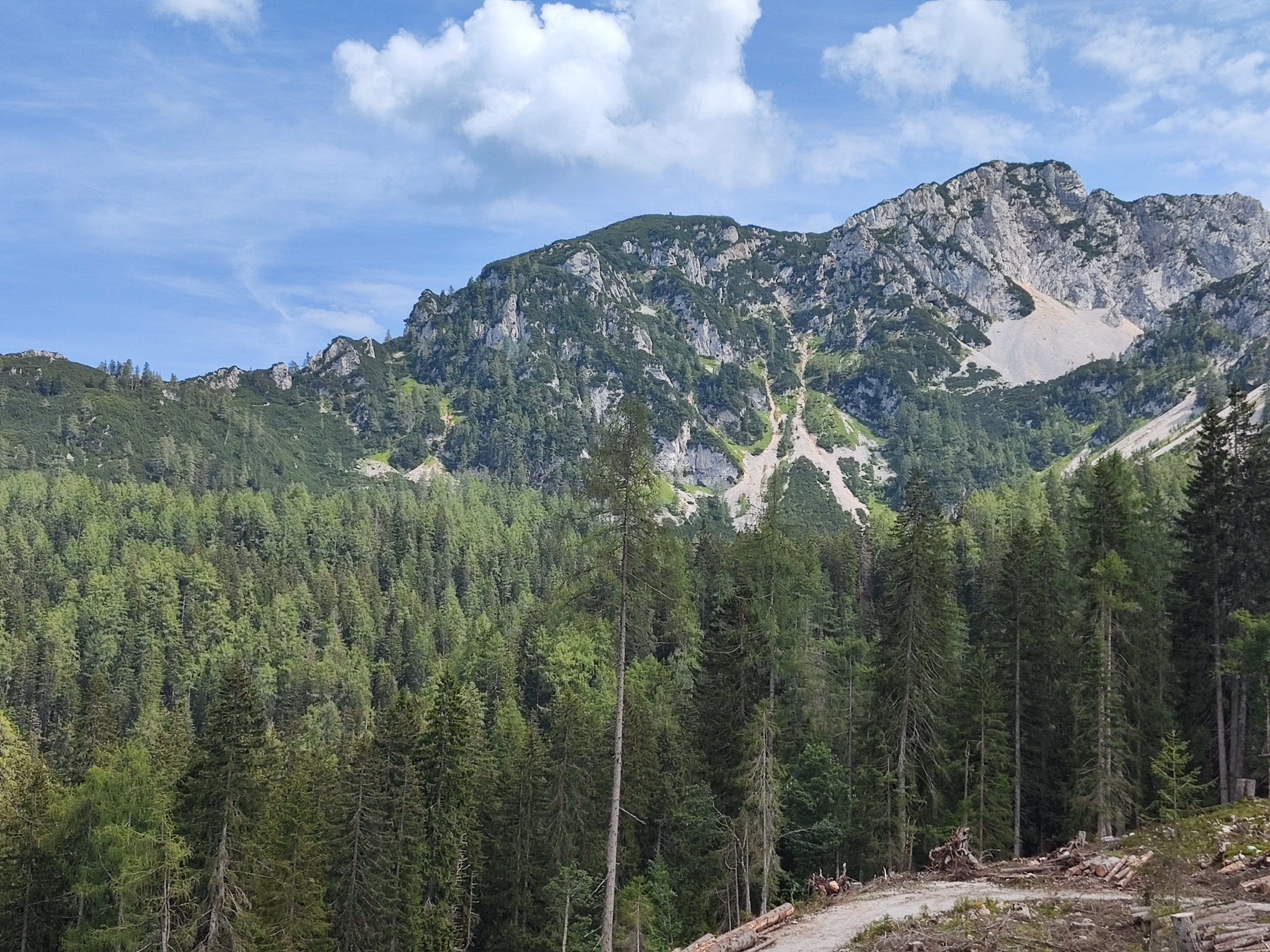 Manche Touren sind für Bike & Hike prädestiniert, diese ist so eine. 16km am Radl oder in den Füßen – da fällt die Entscheidung leicht. Ob man jetzt eine Bio- oder eBike wählt, ist ja jeden selbst überlassen. Auf jedenfall geht’s geschwind vom Tal über die Bikestrecke auf breiten Forstwegen vom Tal ins Almgebiet hoch über Gosau. Vorbei an der Grubalm (hier zeigt sich der Plassen das erste Mal in der Ferne) und Rossalm bis ins wirklich letzte Eck – der Schreieralm auf 1370m. Von dort geht’s nur mehr zu Fuß weiter…