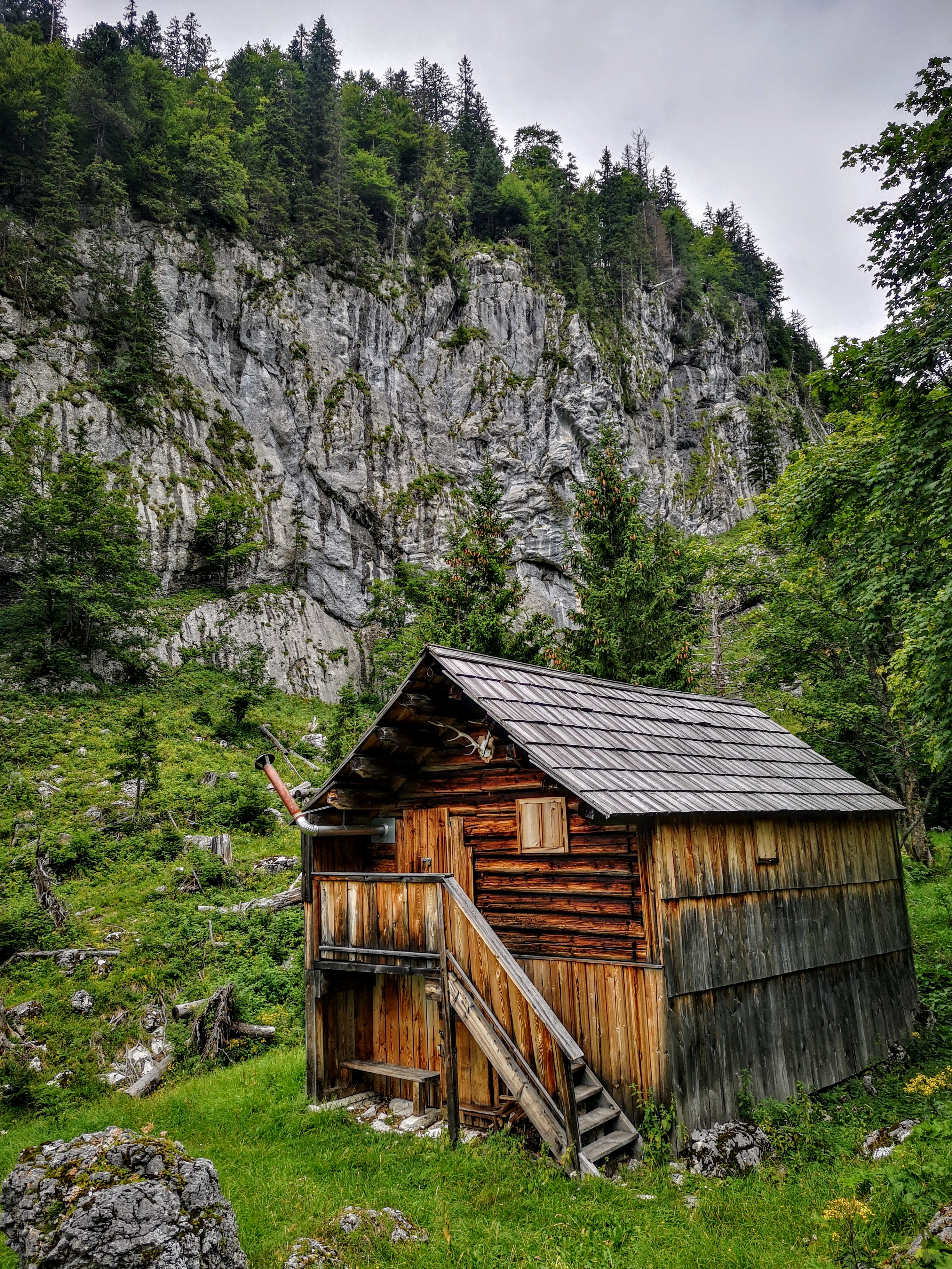 Vom Altausseersee folgt man der Beschilderung in Richtung Appelhaus, hinterm Jagdhaus auf der Schotterstrasse bleiben und dann lässt man den See auch schon hinter sich. Zum Gaisknechtstein (Goasknechtstoa) weisen nur beiläufig zwei alte Schilder – falls man sie entdeckt. I geh trotzdem immer lieber den Weg statt der langen Forststrasse, auch wenn ma manchmal a Sense bräuchte (hohes Gras, dicht verwachsen). Kurzer Halt – mit etwas Glück glitzert der See. Dann immer weiter, stetig bergauf – der erste Seeblick von oben wird später spendiert. Bei der Oberwasseralm 1182m wirds dann deutlich alpiner…