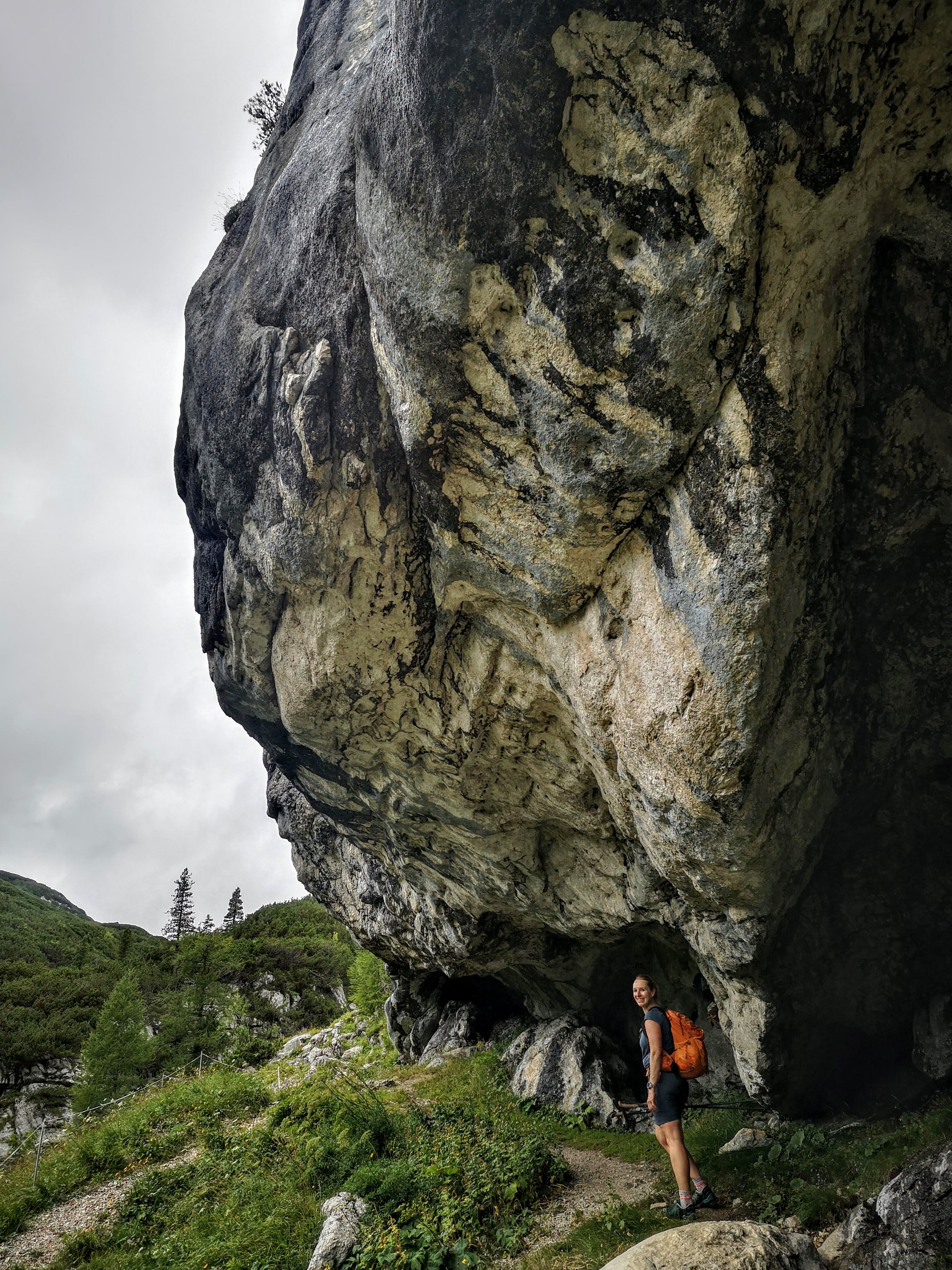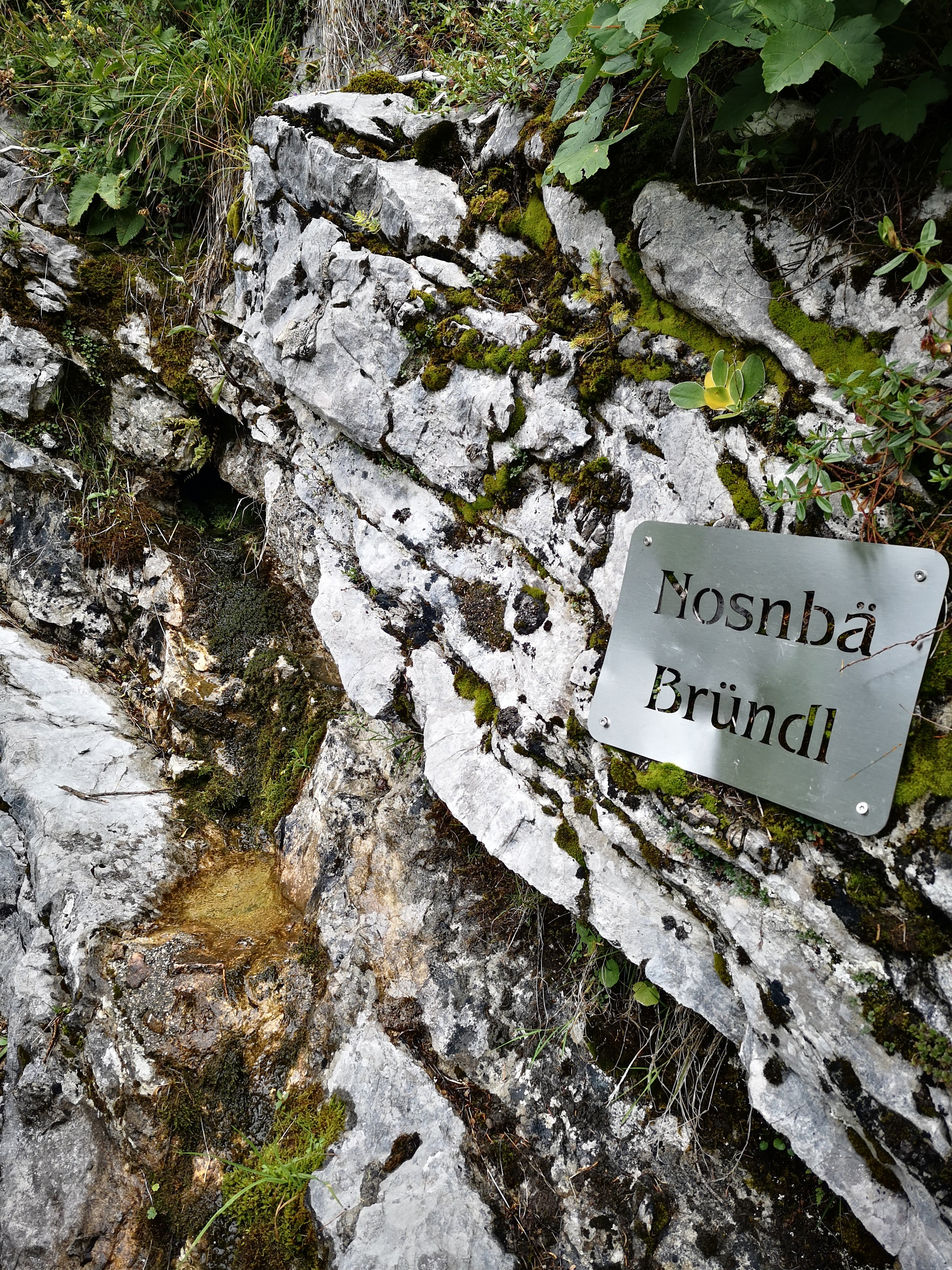 Vorbei am legendären „Nosnbä Bründl“ (dt. Nasenbär Quelle) – mehr tropfend als rinnend. Kurz vom Hochklapfsattel wird der Blick abgelenkt von einem massiv überhängenden Felswandl. Jedes Mal oafach Gewaltig! Überhaupt ist dieser Wegabschnitt nach der Oberwasseralm wunderschön. Am Hochklapfsattel angekommen, folgt man den Wegweisern nach links. Rechts geht’s zum Appelhaus weiter.