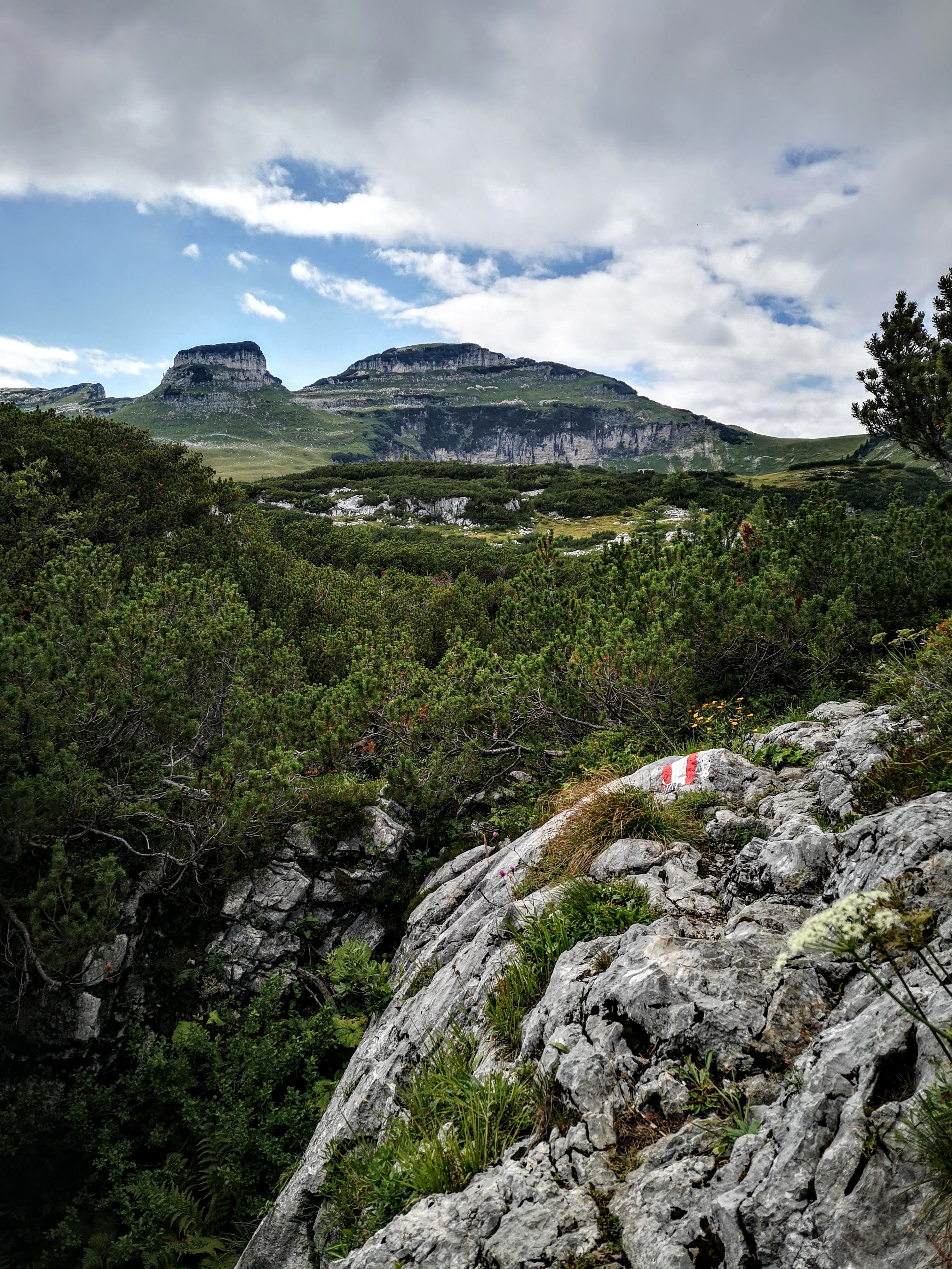 Und dann spuckt uns der Karl Stöger Steig nahe der Bräuningalm wieder am Loser aus… Im Blick: Atterkogel & Greimuth. Aus der Stille in das Wandergebiet-Wuseln. Sonne satt. Am Weg zum Einkehrschwung auf der Loserhütte noch zur Trisslwand rüber winken und dann wartet erstmal a verdientes, eiskoids Erfrischungsweizerl auf einer der schönsten Terassen! Der Loser im Abendlicht… auf zum Abstieg, der Kielerweg beginnt eine Kehre unterhalb der Hütte und bringt einen im Wald direkt zurück zum Altausseersee. Ein wirklich unerwartet schöner Abstieg!