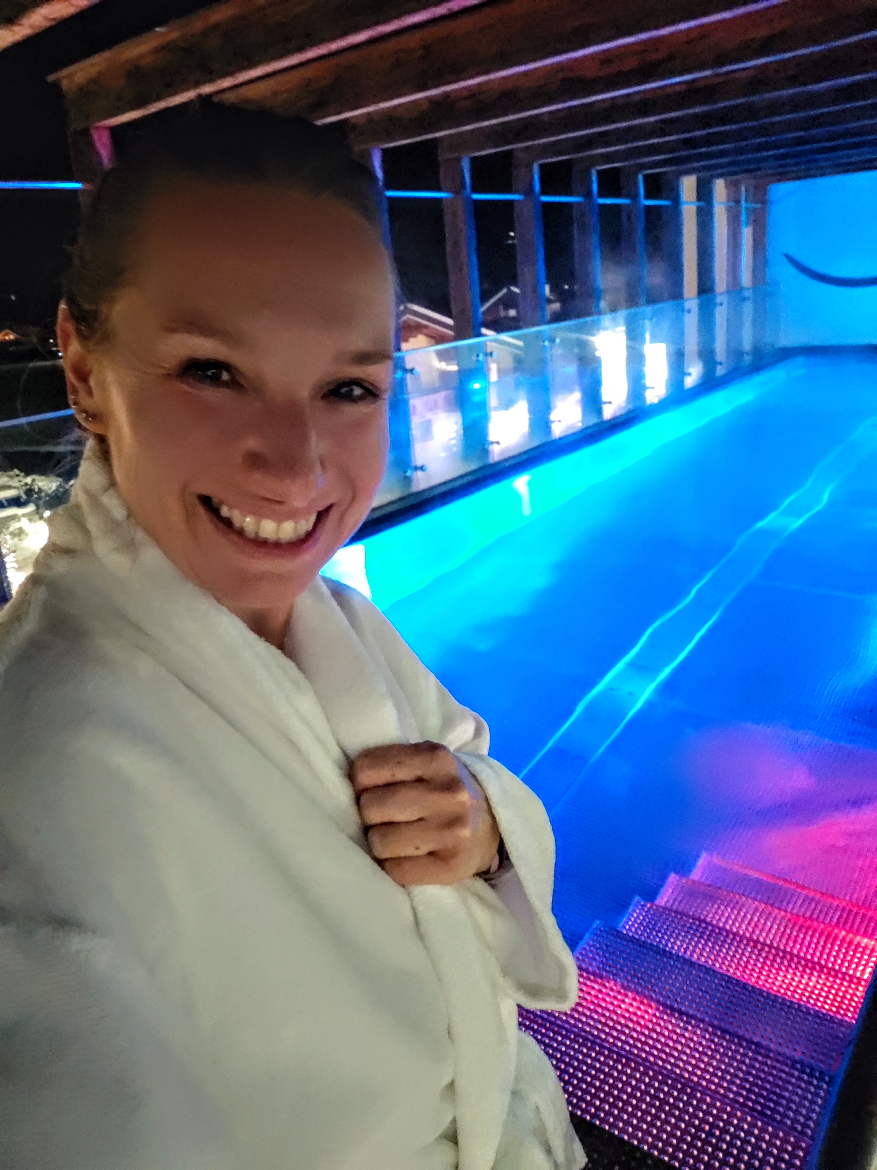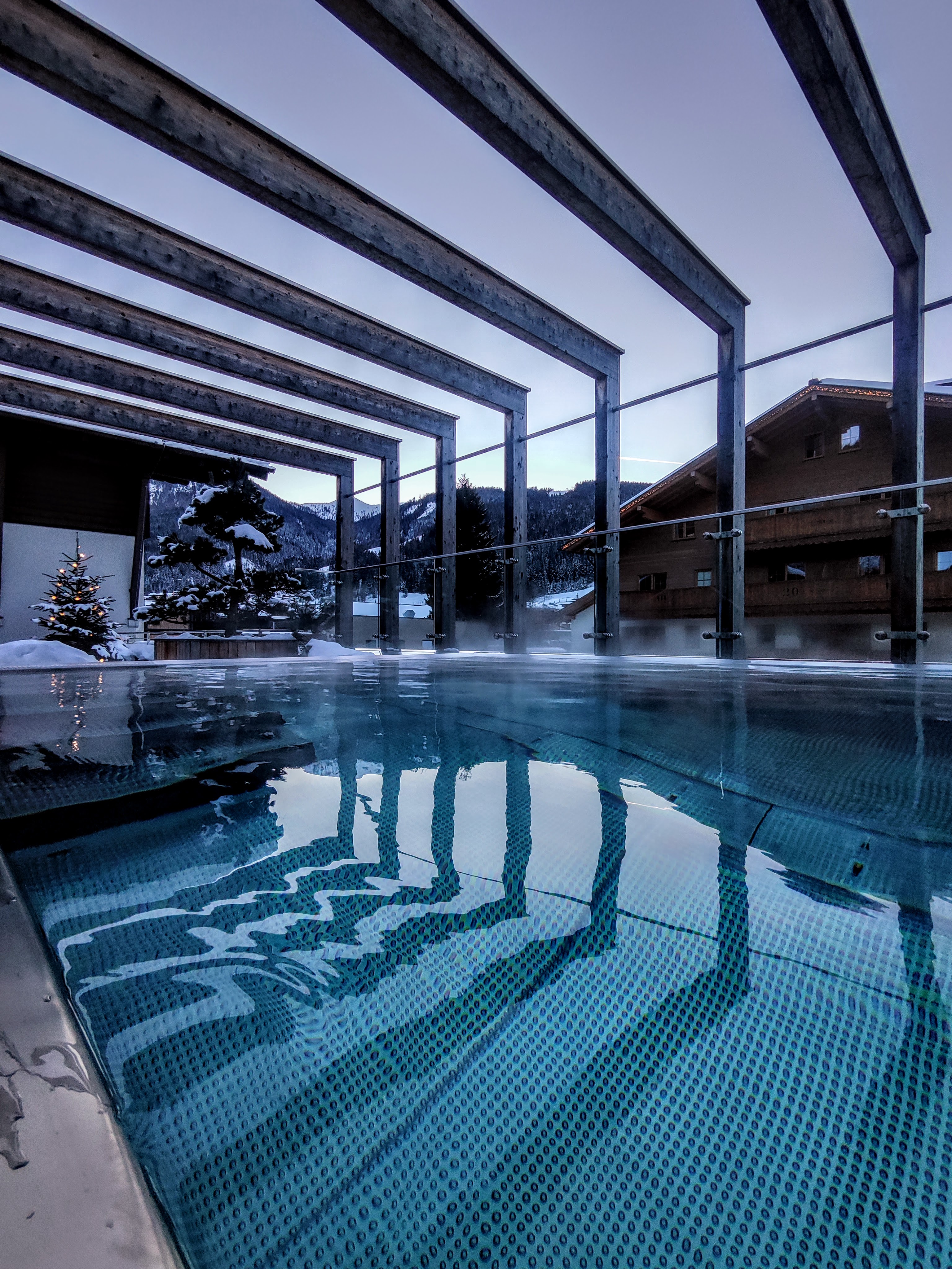Erst auf der Piste auspowern, vor der Hütte Sonne tanken und dann im Tal in der Sauna regenerieren – eiskaltes Finale inklusive. Mog i – meist lieber als das klassische Aprés Ski Programm. Dampfbad, Infrarot, Bio- oder Finnische Sauna und nach dem Ruhen noch eine Runde im Outdoorpool unter freiem Himmel ziehen. Normal sollte er 30 Grad im Winter haben, aber die kalten Nächte haben ganze Arbeit geleistet. Wem draussen sowieso zu kalt ist, der nutzt einfach den Indoor-Pool. Das großzügige, 160qm große Loft-Gym, ausgestattet von Life Fitness, spielt alle Stückerl – dafür war aber dieses mal keine Zeit mehr. Nicht mal um die Yogamatte am Zimmer auszurollen oder bei einer Massage zu entspannen…