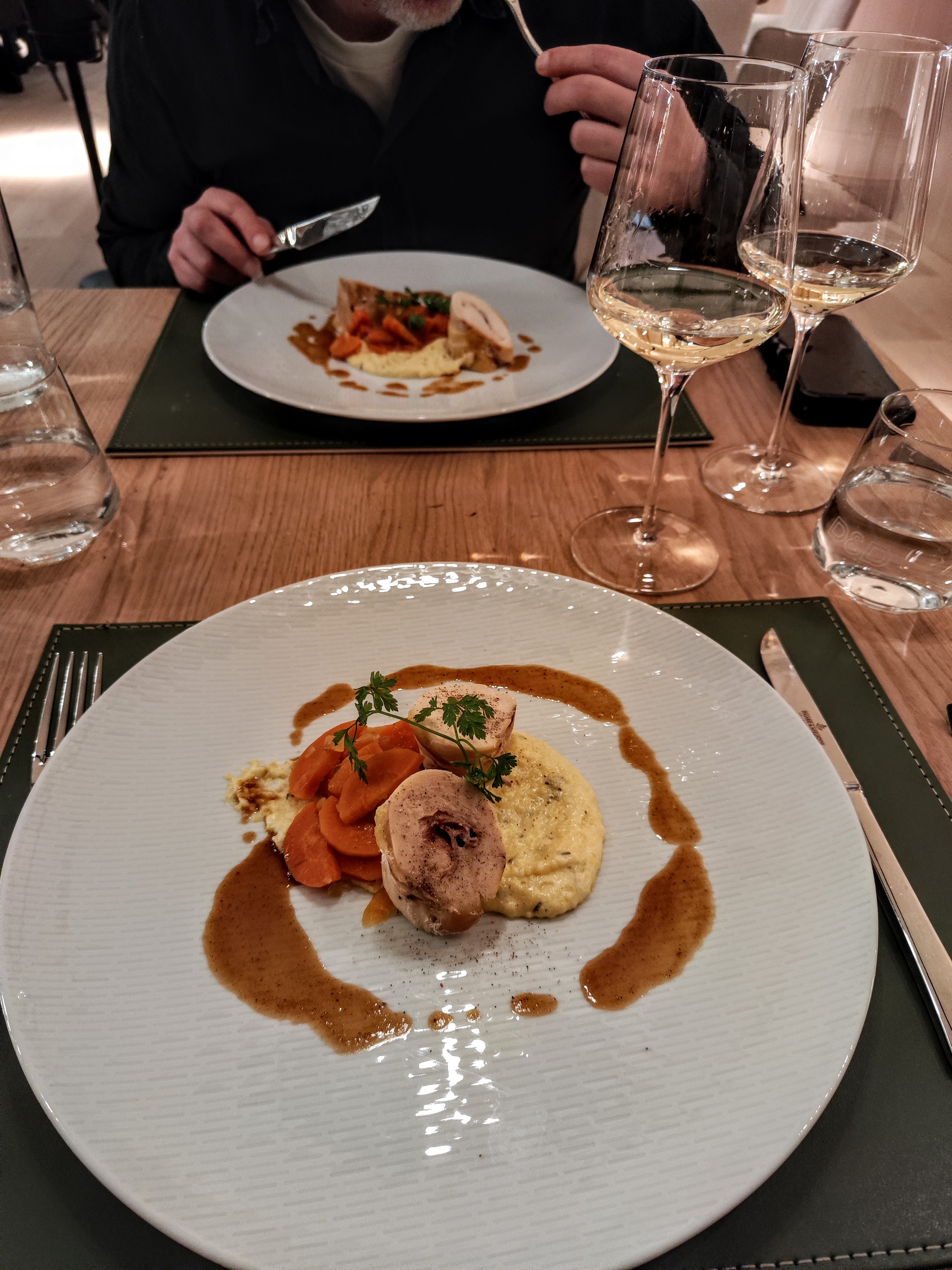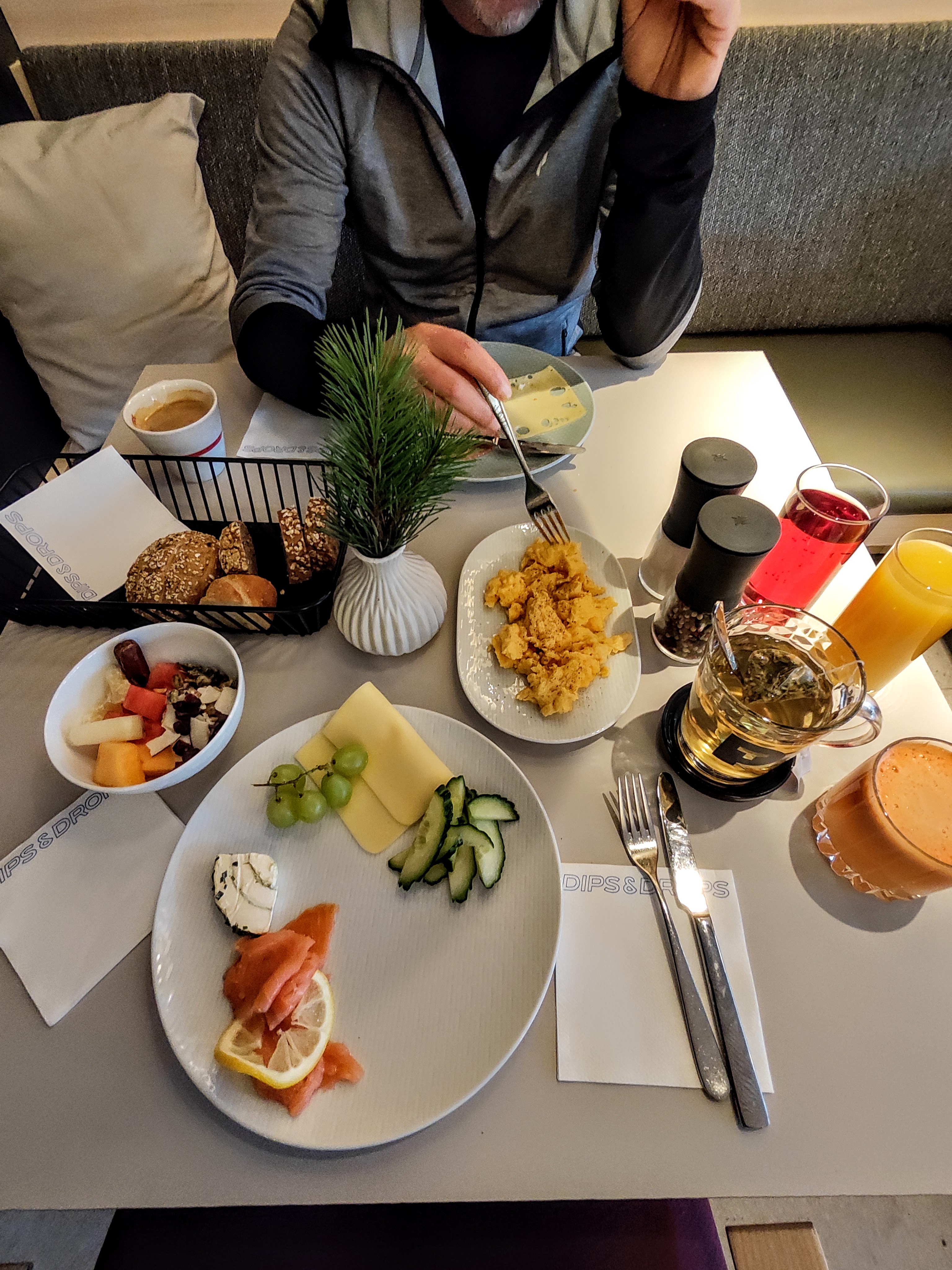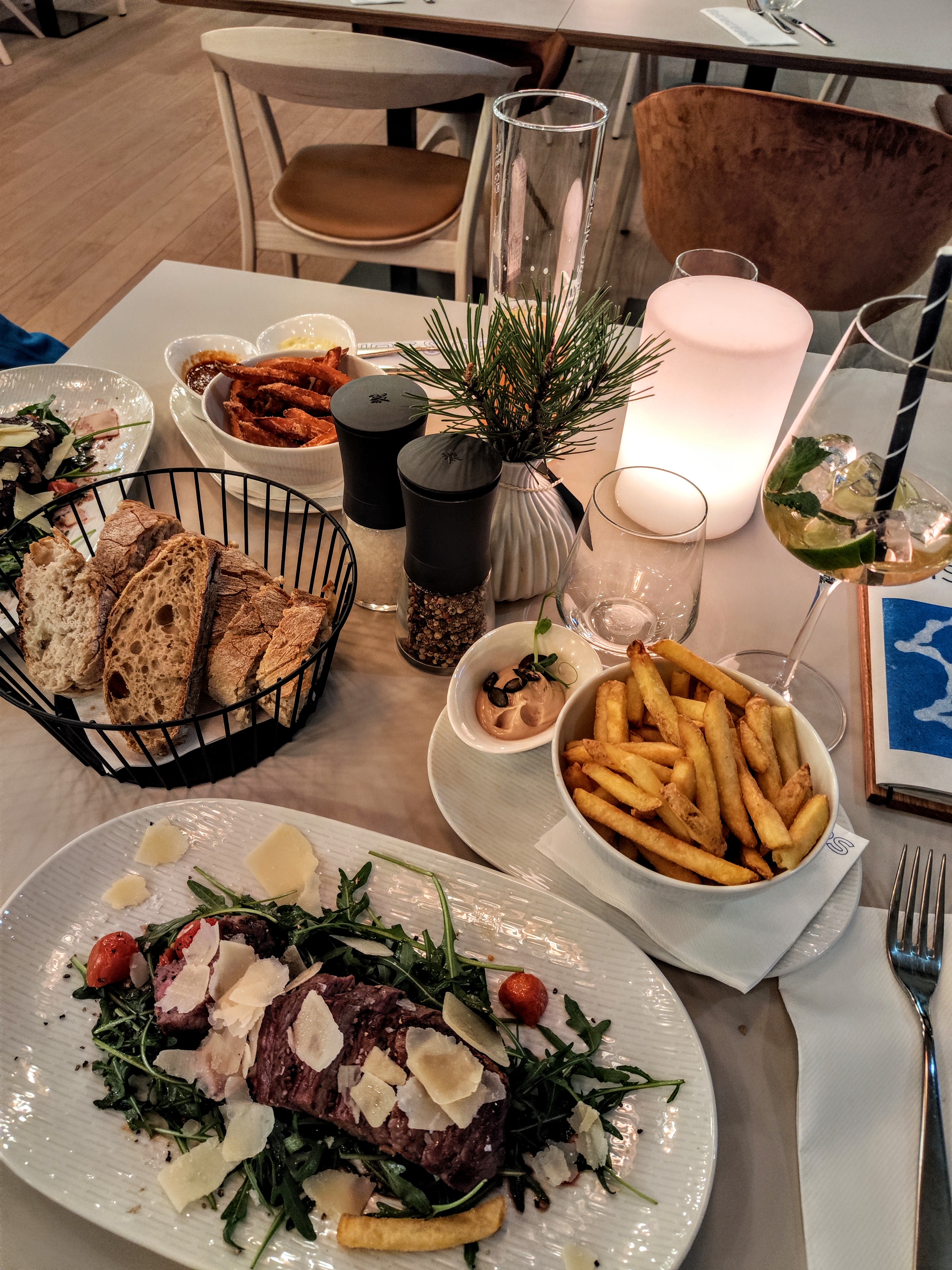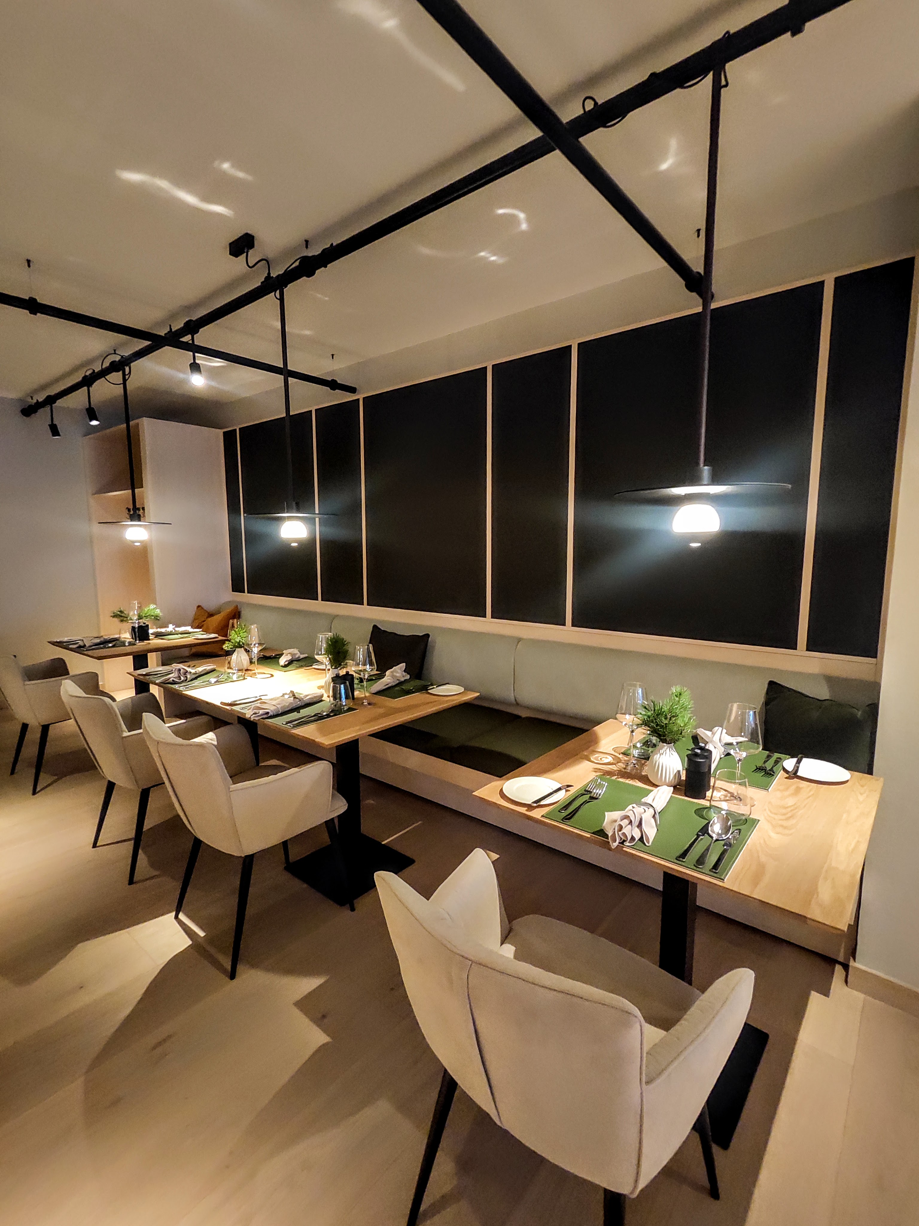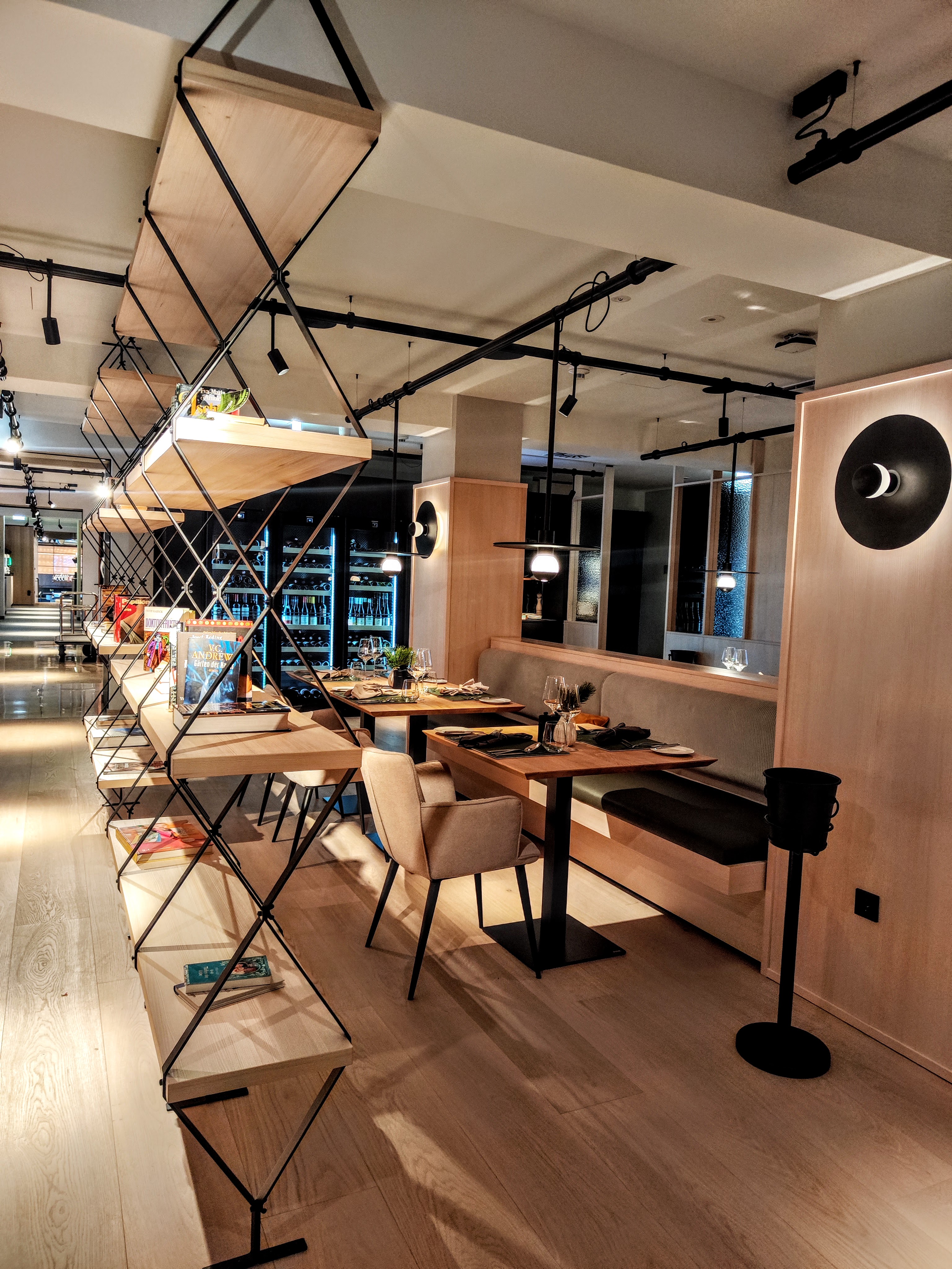 Offen, lichtdurchflutet, modernes Design – aussen wie innen. Die neue Lobby mit cooler HandleBar im Zentrum. Willkommens-Drink gegönnt. Natürliche Materialien wie Holz und Naturstein so weit das Auge reicht. Im ersten Stock wartet (m)ein Wohlfühl-Zimmer – das 163 – das 30qm Double Dips East mit Blick und kleinem Balkon zur Enns. Glasklar, eiskalt. Die spielt auch noch eine ganz besondere Rolle… Insgesamt sind 23 neue Doppelzimmer und 2 Premium-Suiten im Hotel dazu gekommen. Der erste Streifzug nach dem Check-In führt mich zurück zur Bar und weiter durch das D&D Bistro, vorbei an Saft-, Wein- & Bier Selberzapfanlagen in das Forks&Friends Restaurant. Flexible Essens-Optionen sind genau mein Geschmack und als Hausgast kann man sein Paket selbst wählen – egal ob nur Frühstück oder Halbpension. Deswegen für den ersten Abend einen gemütlichen Tisch in letzterem reserviert und ein hervorragendes 4 Gänge-Menü geschlemmt. Samstags dann im Bistro á la Carte gewaltige Beef Slices mit Fries bestellt und so individuell verwöhnt worden. Dort kann durchgehend von 11-22 Uhr geordert werden. Die Küche: klassisch österreichisch, immer saisonal und durchaus international-mediterran. Die Mehlspeisen & Desserts ein Traum! Nachmittags Aprés-Langlauf zum Rocketride Kaffeetschi einen Schoko-Beerentraum inhaliert und seit Ewigkeiten wieder mal eine Crepe Suzette abbrennen lassen. Beim Frühstück gibt’s wirklich nix, was es nicht gibt und manches sieht man erst am Abreisetag – Veganer haben einen eigenen Kühlschrank mit Optionen! Und noch etwas besonderes wartet auf’s entdeckt werden: der Living Room, ein supergemütliches Wohnzimmer mit Honesty Bar im Dachgeschoss.